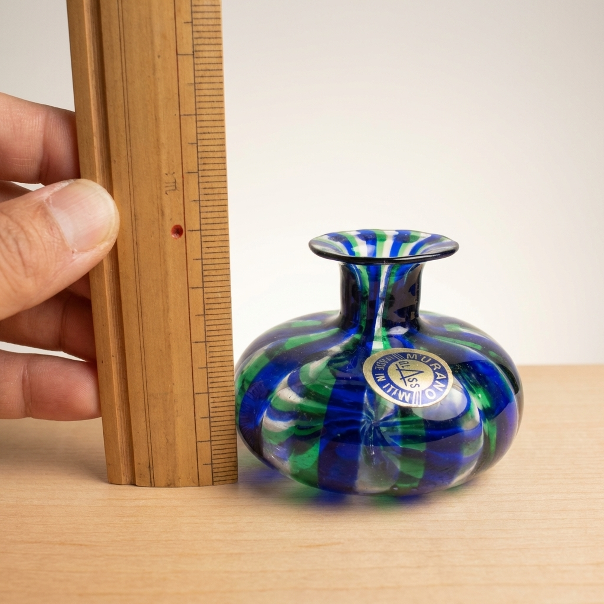 <p>STRUCTURE Maker / Brand: Murano Glass Title of Work: Italy Murano Glass Small Perfume Bottle</p> <p>This charming Murano glass vessel, originally a small perfume bottle, now serves beautifully as a delicate single-stem vase or a striking decorative accent. Hand-blown with exquisite artistry, it showcases the vibrant color and dynamic patterns for which Murano glass is renowned. Please note, the original stopper is not present, and a faint residual scent from its previous use remains. Its compact size (approximately 5cm tall with a 6cm base diameter) and striking design make it a delightful addition.</p> <p>Artistic & Cultural Background Murano glass, from the Venetian island of Murano in Italy, boasts a rich history spanning over a thousand years. Renowned globally for its exceptional craftsmanship, Murano glassmakers have perfected techniques passed down through generations, creating works of art celebrated for their brilliance and vibrant hues. This piece, though Italian, exemplifies a universal dedication to beauty and skilled artistry.</p> <p>Design & Technique This piece exemplifies masterful Murano glassblowing, featuring a mesmerizing swirl of rich blues, verdant greens, and clear glass. This dynamic, almost striped pattern dances with light, with colors deeply embedded within the glass, a example to skilled manipulation for a permanent, lustrous finish.</p> <p>Form & Aesthetic Qualities * <strong>Shape:</strong> A gracefully rounded, squat body transitions into a slender neck and a gently flared rim, offering an inviting silhouette. * <strong>Texture:</strong> The surface is impeccably smooth and glossy, reflecting light beautifully and inviting touch. * <strong>Visual Appeal:</strong> The vibrant interplay of blue and green, combined with glass transparency, creates a lively and refreshing aesthetic.</p> <p>Collector & Decorative Appeal * <strong>Versatile Decor:</strong> Perfect for adding a pop of color to a bookshelf, desk, or windowsill, complementing various interior styles. * <strong>Artistic Value:</strong> A genuine piece of Murano glass, representing centuries of glassblowing tradition and artistic innovation. * <strong>Unique Charm:</strong> Its small stature and distinctive design make it an endearing collectible, ideal for displaying a single bloom or simply admired for its inherent beauty.</p> <p>This delightful Murano glass piece is perfect for the knowledgeable collector who appreciates hand-crafted vessels and seeks to infuse their space with vibrant artistry.</p> <h3>Details</h3> <table style="border-collapse:collapse;width:100%"><tr><td style="padding:4px 12px 4px 0;font-weight:bold;white-space:nowrap">Condition</td><td style="padding:4px 0">Fair</td></tr><tr><td style="padding:4px 12px 4px 0;font-weight:bold;white-space:nowrap">Material</td><td style="padding:4px 0">Glass</td></tr><tr><td style="padding:4px 12px 4px 0;font-weight:bold;white-space:nowrap">Era</td><td style="padding:4px 0">Unknown</td></tr><tr><td style="padding:4px 12px 4px 0;font-weight:bold;white-space:nowrap">Dimensions</td><td style="padding:4px 0">高さ5㎝ / サイズは高さ5㎝ちょっと</td></tr></table>