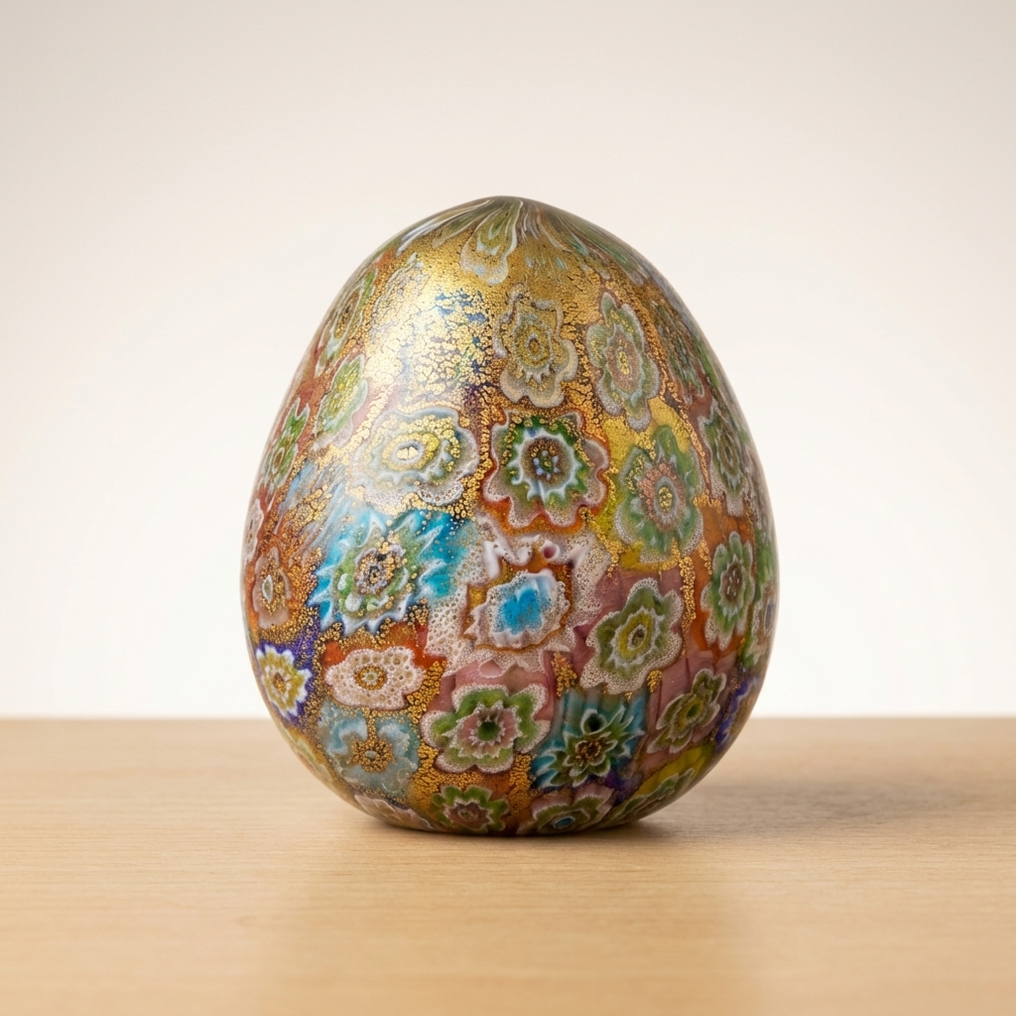 Murano Glass Paperweight Featuring a Gold-Gilded Floral Design