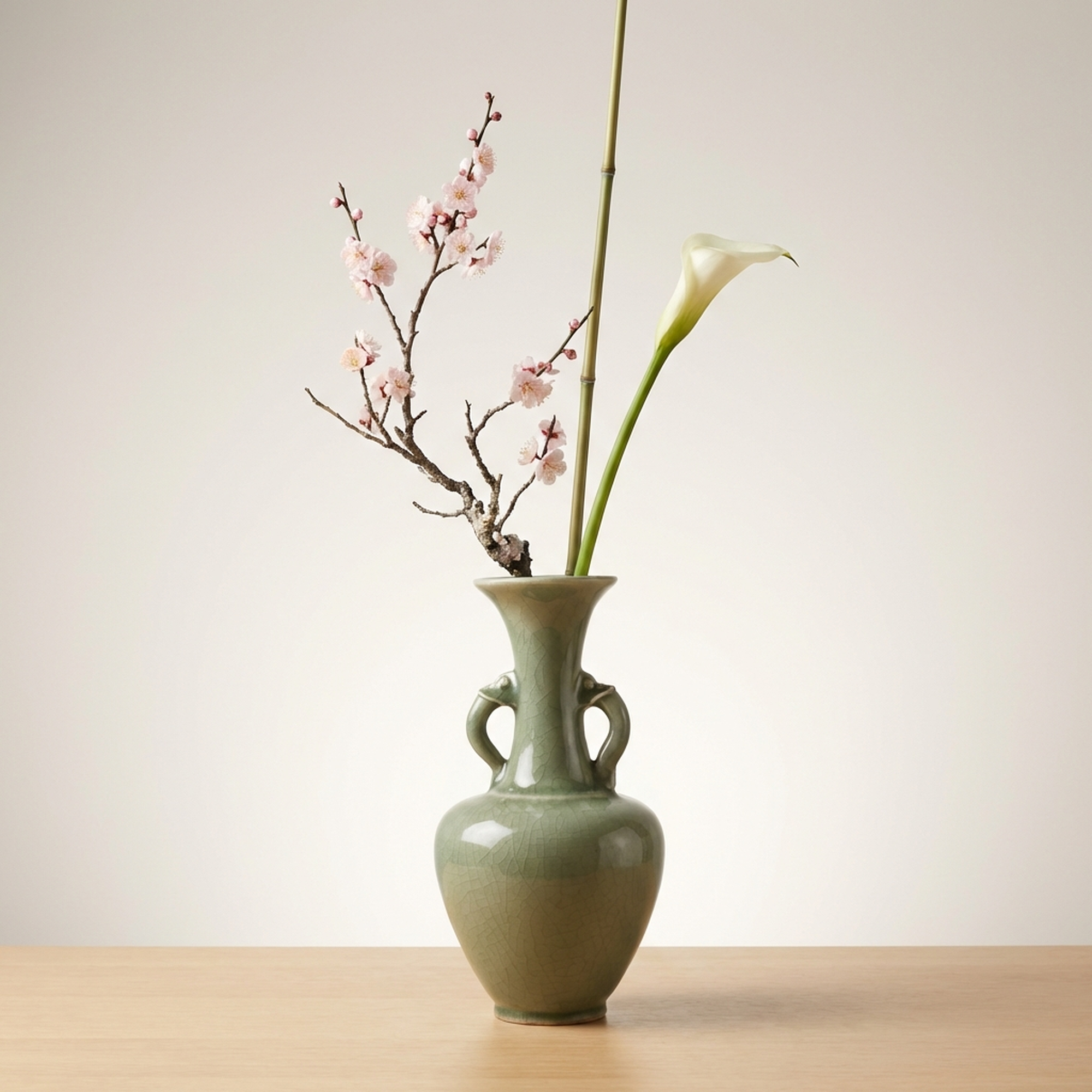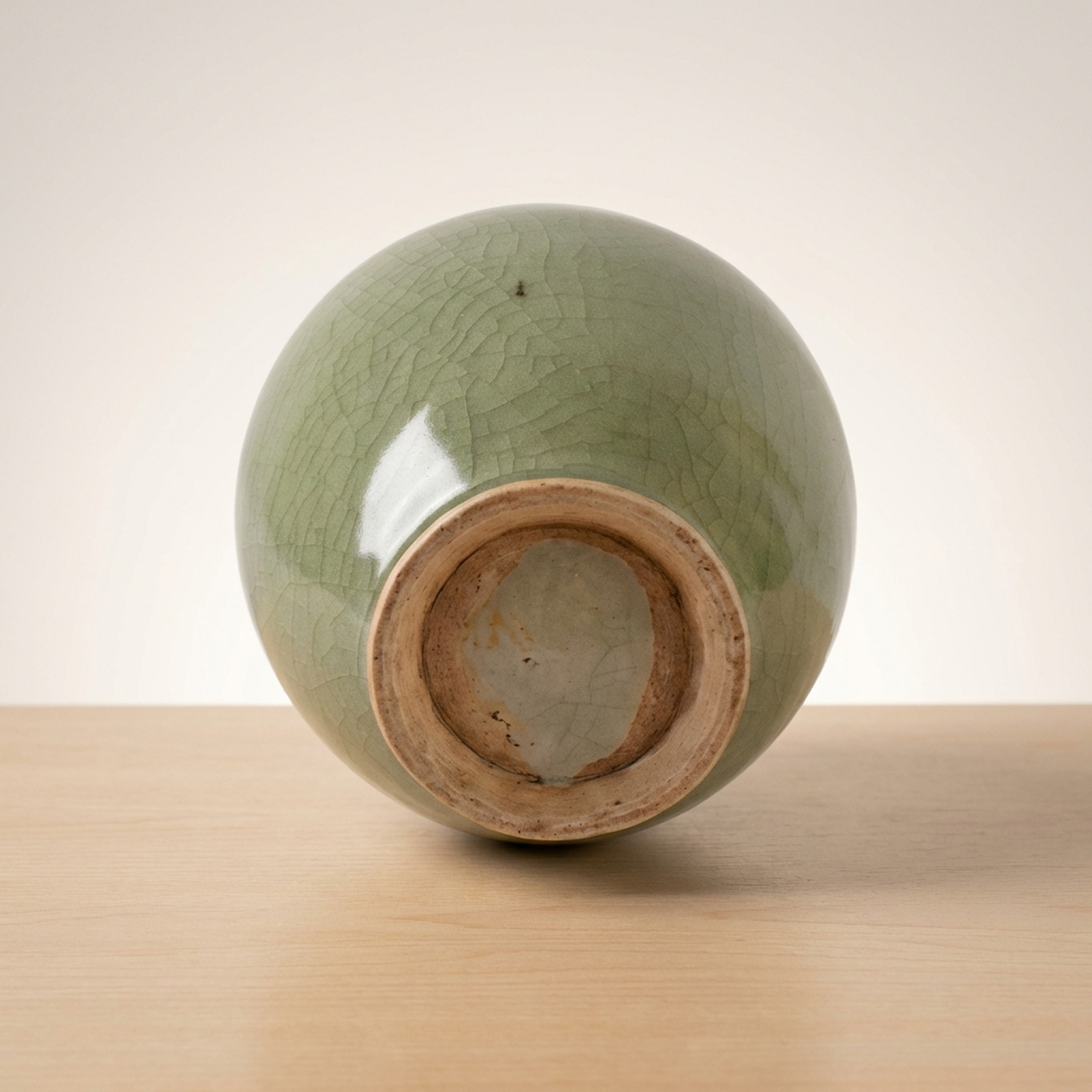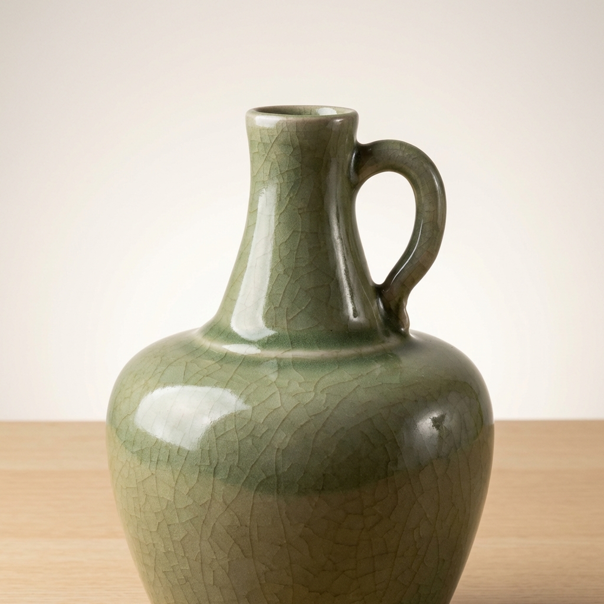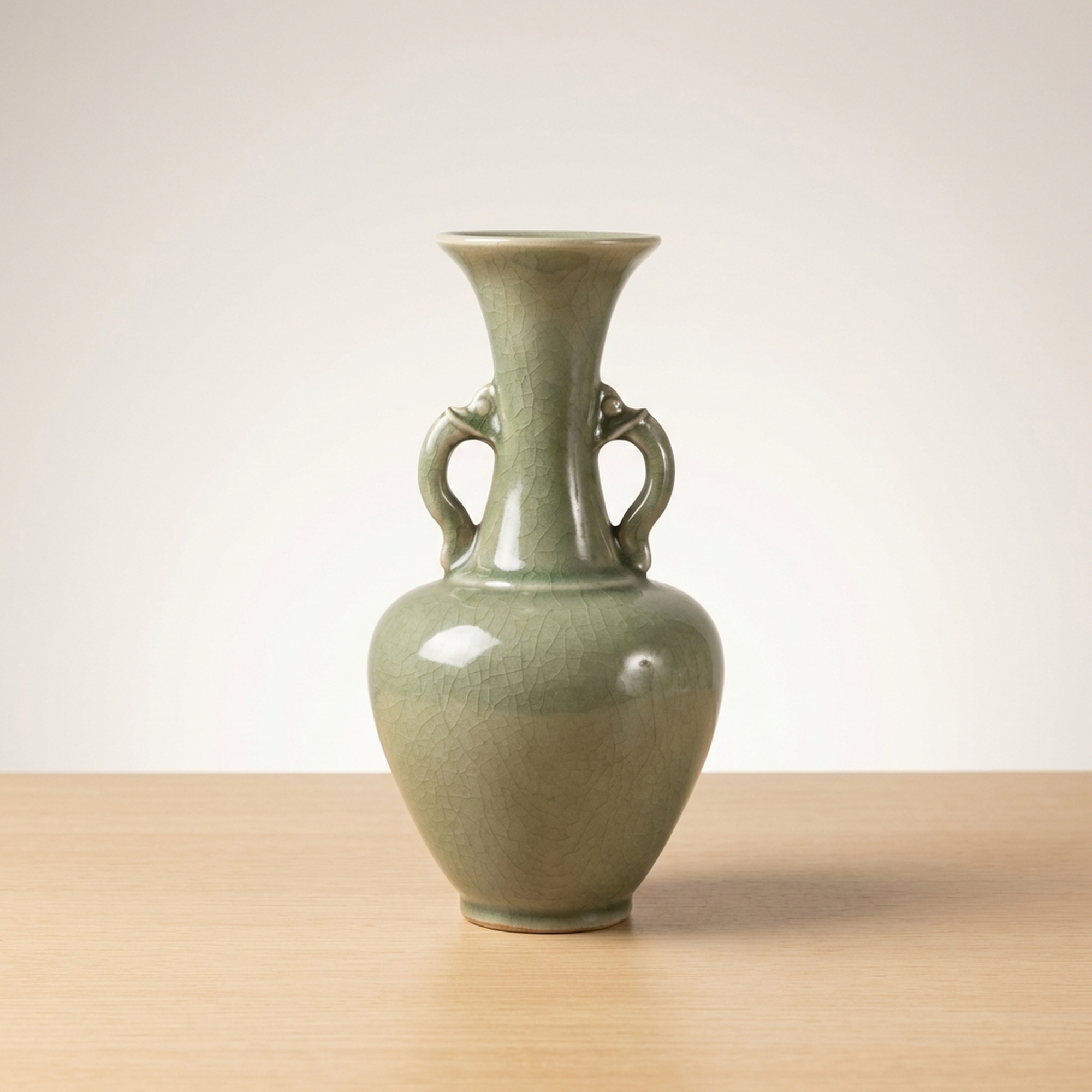 <p>Maker / Brand: Longquan Kiln (Ryusen-yo), China Title of Work: Chinese Longquan Celadon Twin Beast-Handle Vase with Period Box</p> <p>This exquisite Chinese Longquan celadon vase, featuring distinctive twin beast-head handles, embodies the refined aesthetics of classical East Asian ceramics. Presented in a traditional wooden period box (jidai bako), it offers a glimpse into a cherished artistic tradition. Its serene green glaze and elegant form make it a striking piece for any knowledgeable collector or decorator.</p> <p>Artistic & Cultural Background Longquan celadon, known as Ryusen-yo seiji in Japan, originated in Zhejiang province, China, and flourished from the Southern Song to the Ming dynasties. Renowned for its jade-like glaze and sophisticated forms, Longquan ware was highly prized across Asia, particularly in Japan, where it was deeply admired and collected for centuries. These pieces were often considered treasures, influencing local ceramic traditions and serving as symbols of refined taste.</p> <p>Design & Technique This vase showcases the iconic celadon glaze, characterized by its luminous, pale green hue reminiscent of jade. The glaze is applied thickly, creating a rich, unctuous surface that often develops a subtle, detailed crackle pattern, adding depth and character. The elegant form is complemented by two finely sculpted beast-head handles, which serve as both decorative elements and a nod to ancient ritual bronzes, imbuing the piece with a sense of historical grandeur.</p> <p>Form & Aesthetic Qualities * <strong>Graceful Silhouette:</strong> The vase features a flared mouth, a slender neck, a full, globular body, and a stable foot, creating a harmonious and balanced profile. * <strong>Luminous Glaze:</strong> The smooth, unctuous celadon glaze exhibits a striking pale green color, with a delicate crackle visible across its surface, enhancing its organic beauty. * <strong>Mythical Embellishments:</strong> The twin beast-head handles are subtly integrated into the neck, adding a touch of ancient mystique and sculptural interest to the classic form.</p> <p>Collector & Decorative Appeal * <strong>Historical Authenticity:</strong> This piece represents a significant tradition in Chinese ceramic art, offering a tangible connection to a rich cultural past. * <strong>Timeless Elegance:</strong> The vase's understated beauty and classic design allow it to seamlessly complement both traditional and contemporary interiors. * <strong>Preserved Presentation:</strong> Accompanied by its traditional wooden period box (jidai bako), which, though its string is cut, adds to the provenance and historical integrity of the piece.</p> <p>An ideal acquisition for those who appreciate the enduring beauty and historical depth of East Asian ceramics.</p> <h3>Details</h3> <table style="border-collapse:collapse;width:100%"><tr><td style="padding:4px 12px 4px 0;font-weight:bold;white-space:nowrap">Condition</td><td style="padding:4px 0">Good</td></tr><tr><td style="padding:4px 12px 4px 0;font-weight:bold;white-space:nowrap">Material</td><td style="padding:4px 0">Ceramic</td></tr><tr><td style="padding:4px 12px 4px 0;font-weight:bold;white-space:nowrap">Era</td><td style="padding:4px 0">Unknown</td></tr><tr><td style="padding:4px 12px 4px 0;font-weight:bold;white-space:nowrap">Dimensions</td><td style="padding:4px 0">大きさ 高さ約20.5cm 幅約11cm 口内経 約2cm</td></tr></table>