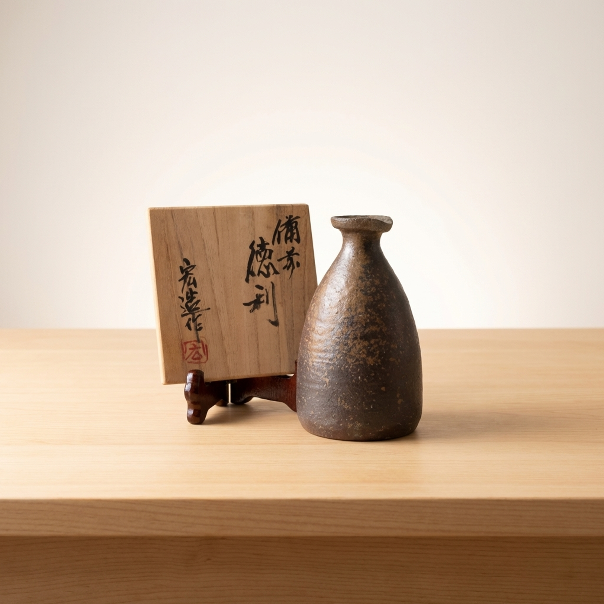 Kimura Hiroshi Bizen Ware Tokkuri Bud Vase, 14cm Tall, Original Wooden Box