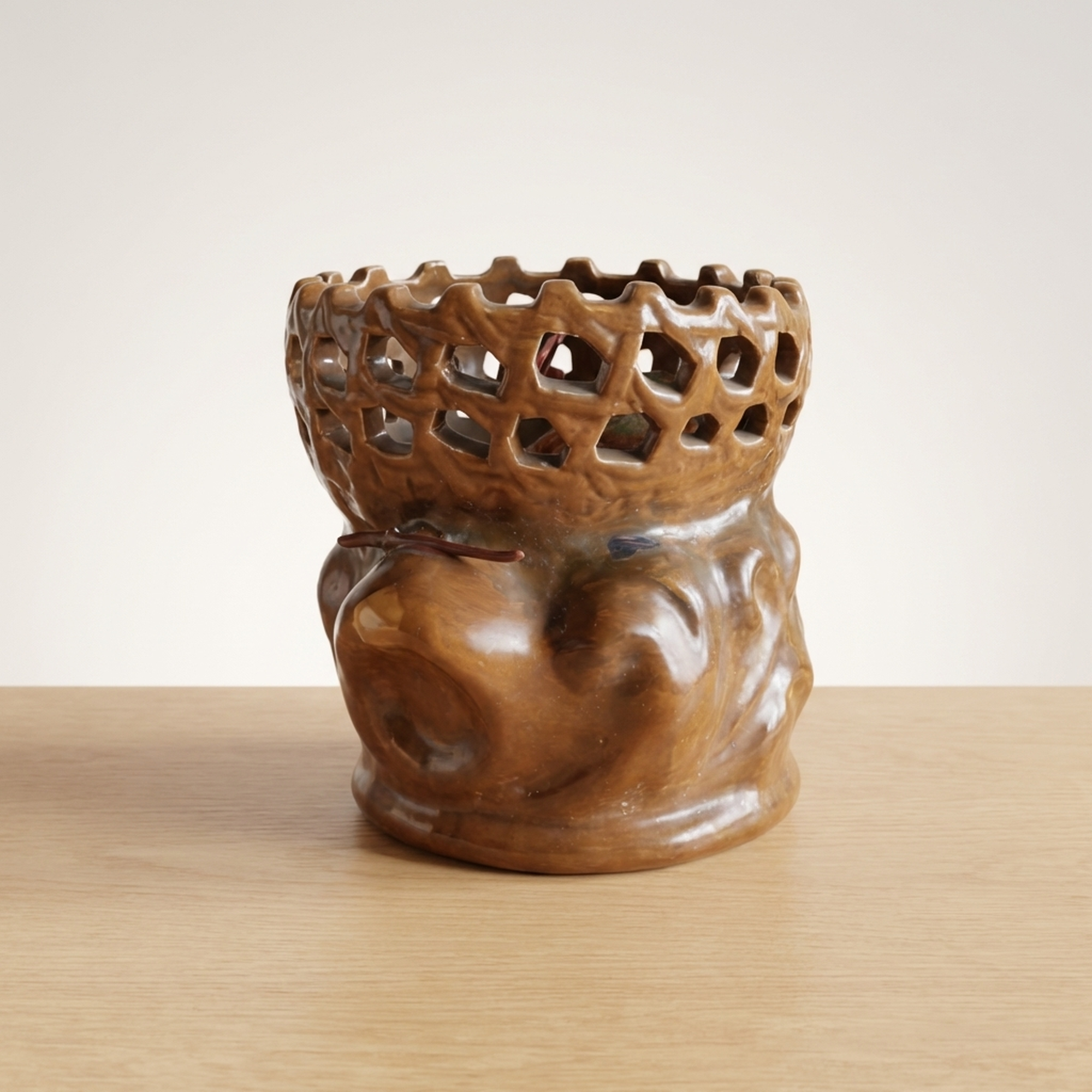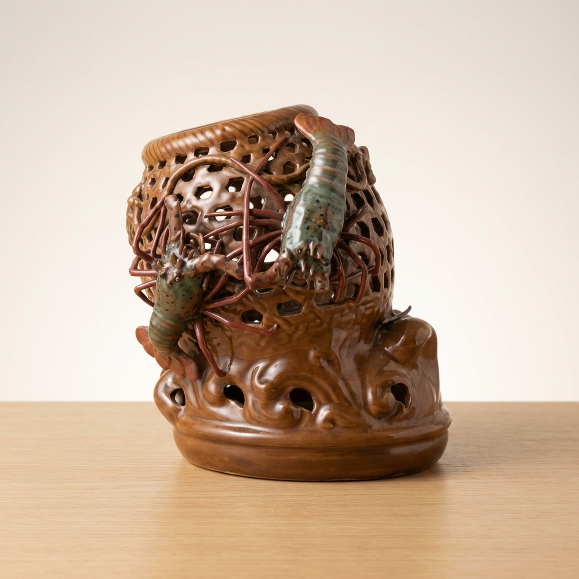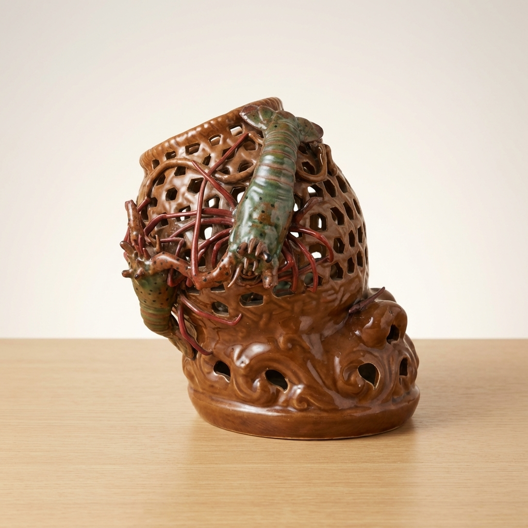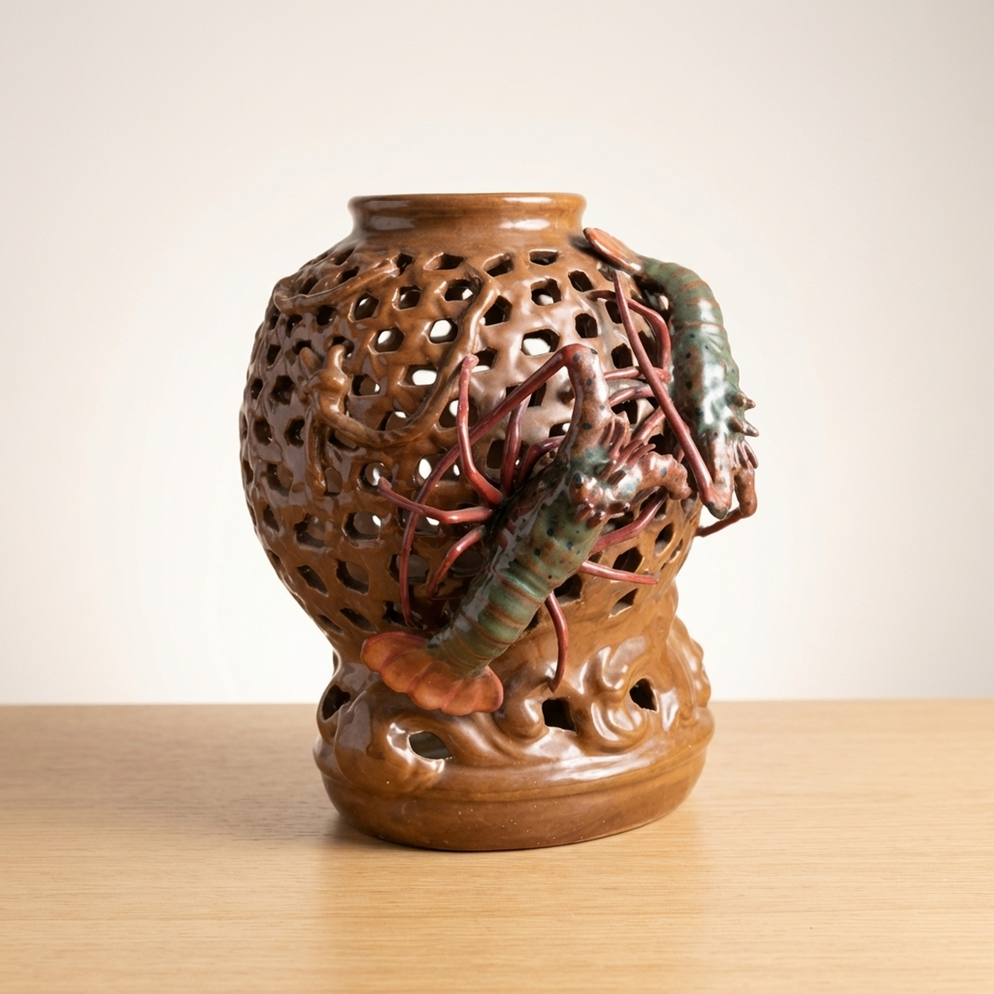 Seiichi Openwork Ceramic Vase with Shrimp Motif, 26cm