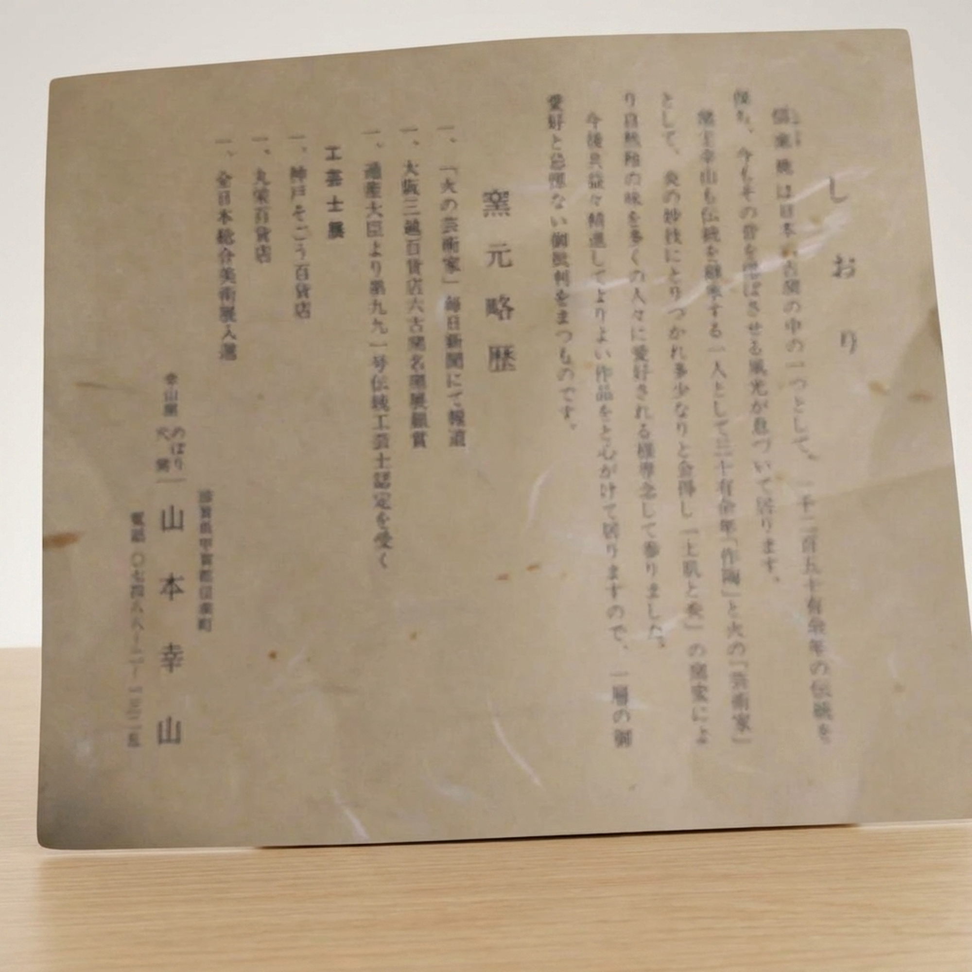 <p>Maker / Brand: Yamamoto Kōzan Title of Work: Unused Stored Item Shigaraki Ware Yamamoto Kōzan Superb Work with Tomobako Vase Flower Vessel</p> <p>This exquisite Shigaraki ware vase, a superb work by the esteemed artist Yamamoto Kōzan, is presented in pristine, unused condition. Carefully preserved, this flower vessel comes complete with its original tomobako, ensuring authenticity and provenance. It embodies the enduring beauty and rustic charm of one of Japan's most celebrated ceramic traditions.</p> <p>Artistic & Cultural Background Shigaraki ware, one of Japan's Six Ancient Kilns, boasts a history over 1200 years. Originating in Shigaraki, Shiga Prefecture, its pottery is characterized by distinctive earthy texture, natural ash glazes (shizen-yu), and a profound connection to wabi-sabi aesthetics. Shigaraki pieces are highly prized for their unpretentious beauty, enhancing ikebana arrangements.</p> <p>Design & Technique Crafted from the rich, iron-rich clay unique to the Shigaraki region, this vase showcases the raw, unadorned beauty for which the ware is famous. Traditional anagama kiln firing has imparted a natural ash glaze, creating a mottled surface with subtle variations in tone and texture, from warm browns to soft greys, speckled with feldspar inclusions. A small, dark metal ring is thoughtfully integrated, adding rustic elegance and an intriguing visual accent.</p> <p>Form & Aesthetic Qualities * <strong>Organic Form:</strong> The vase features a charmingly squat, rounded body that tapers gently to a narrow, slightly flared neck, creating an inviting and stable silhouette. * <strong>Earthy Texture:</strong> Its surface is wonderfully tactile, exhibiting the characteristic rough, unglazed or naturally glazed texture of Shigaraki clay, inviting touch and close inspection. * <strong>Natural Palette:</strong> The subtle, earthy color palette, born from the interaction of clay and ash during firing, evokes a sense of tranquility and connection to nature.</p> <p>Collector & Decorative Appeal * <strong>Artist's Provenance:</strong> This "superb work" by Yamamoto Kōzan, accompanied by its original tomobako, is a desirable acquisition for collectors. * <strong>Pristine Condition:</strong> Described as an "unused stored item" with "no scratches or damage," its excellent state of preservation enhances value and appeal. * <strong>Versatile Elegance:</strong> Perfect for displaying a single bloom or minimalist ikebana, this vase also stands beautifully as a sculptural object, enriching any interior with its authentic Japanese aesthetic.</p> <p>This rare and perfectly preserved piece offers an exceptional opportunity for those who appreciate the profound beauty and historical depth of traditional Japanese ceramics.</p> <h3>Details</h3> <table style="border-collapse:collapse;width:100%"><tr><td style="padding:4px 12px 4px 0;font-weight:bold;white-space:nowrap">Condition</td><td style="padding:4px 0">Excellent</td></tr><tr><td style="padding:4px 12px 4px 0;font-weight:bold;white-space:nowrap">Origin</td><td style="padding:4px 0">Shigaraki, Shiga</td></tr><tr><td style="padding:4px 12px 4px 0;font-weight:bold;white-space:nowrap">Material</td><td style="padding:4px 0">Stoneware</td></tr><tr><td style="padding:4px 12px 4px 0;font-weight:bold;white-space:nowrap">Era</td><td style="padding:4px 0">Unknown</td></tr><tr><td style="padding:4px 12px 4px 0;font-weight:bold;white-space:nowrap">Dimensions</td><td style="padding:4px 0">サイズ】</td></tr></table>