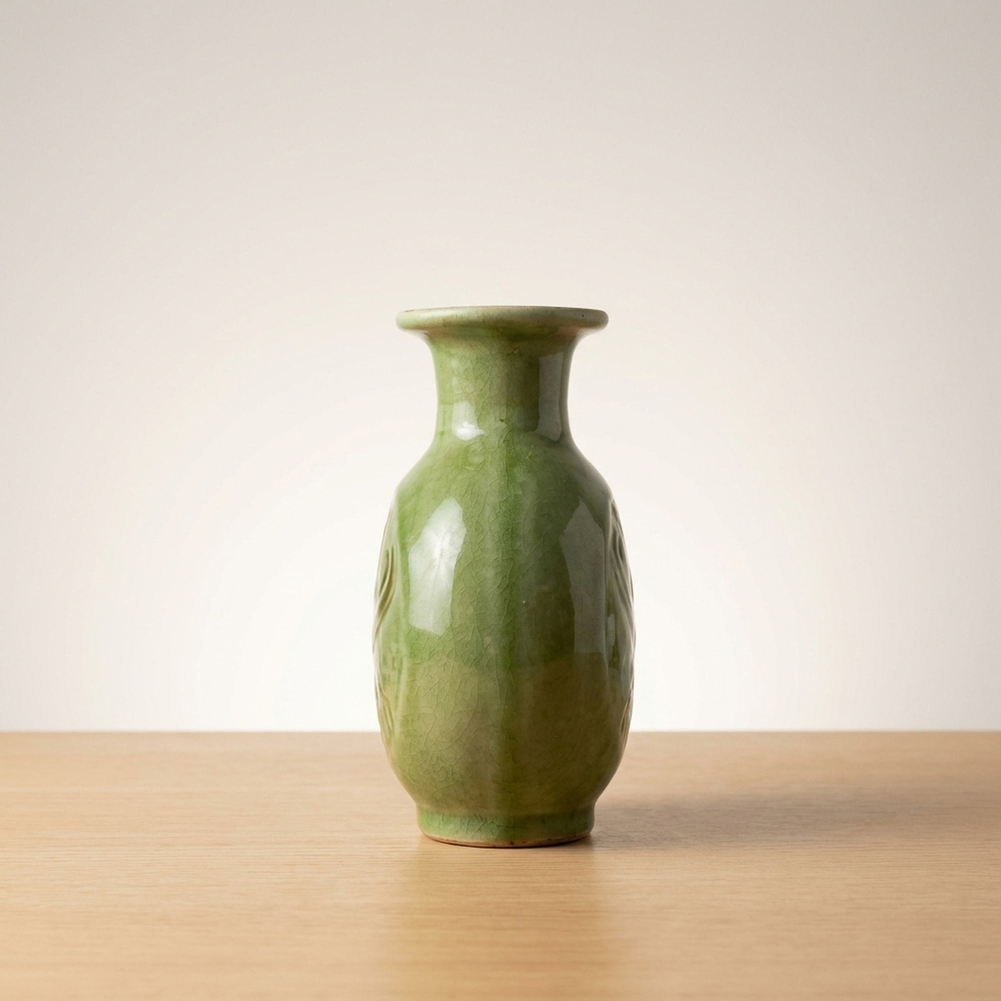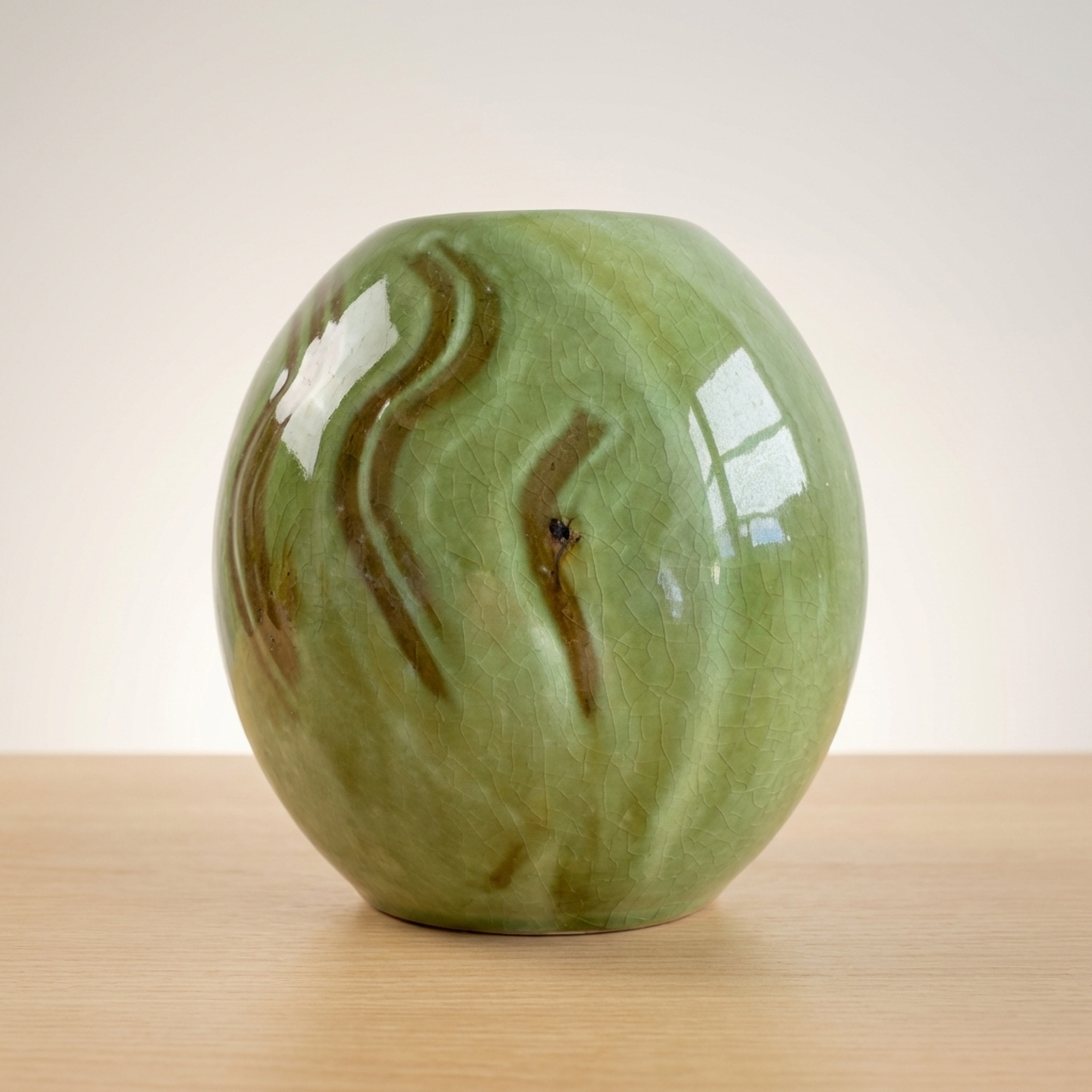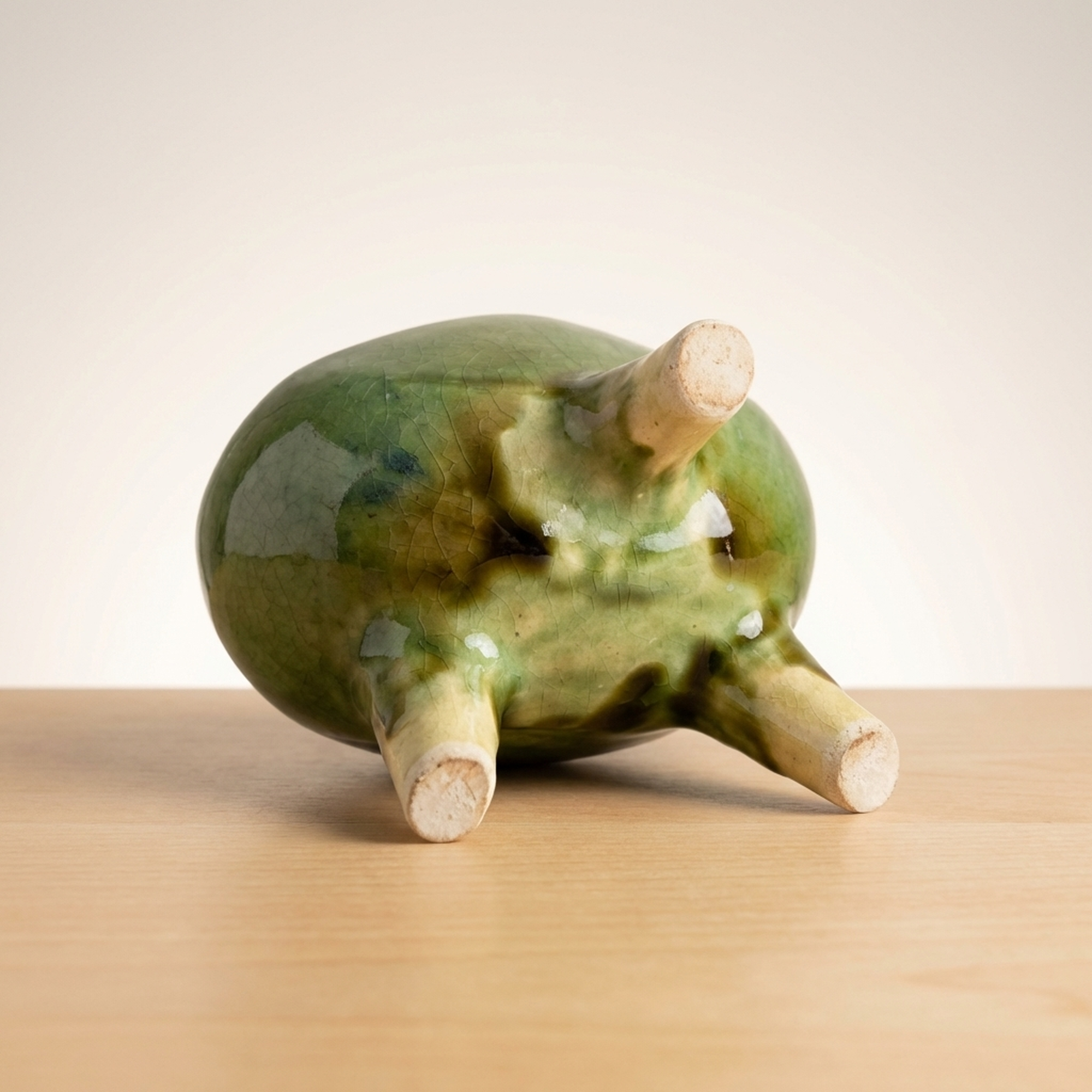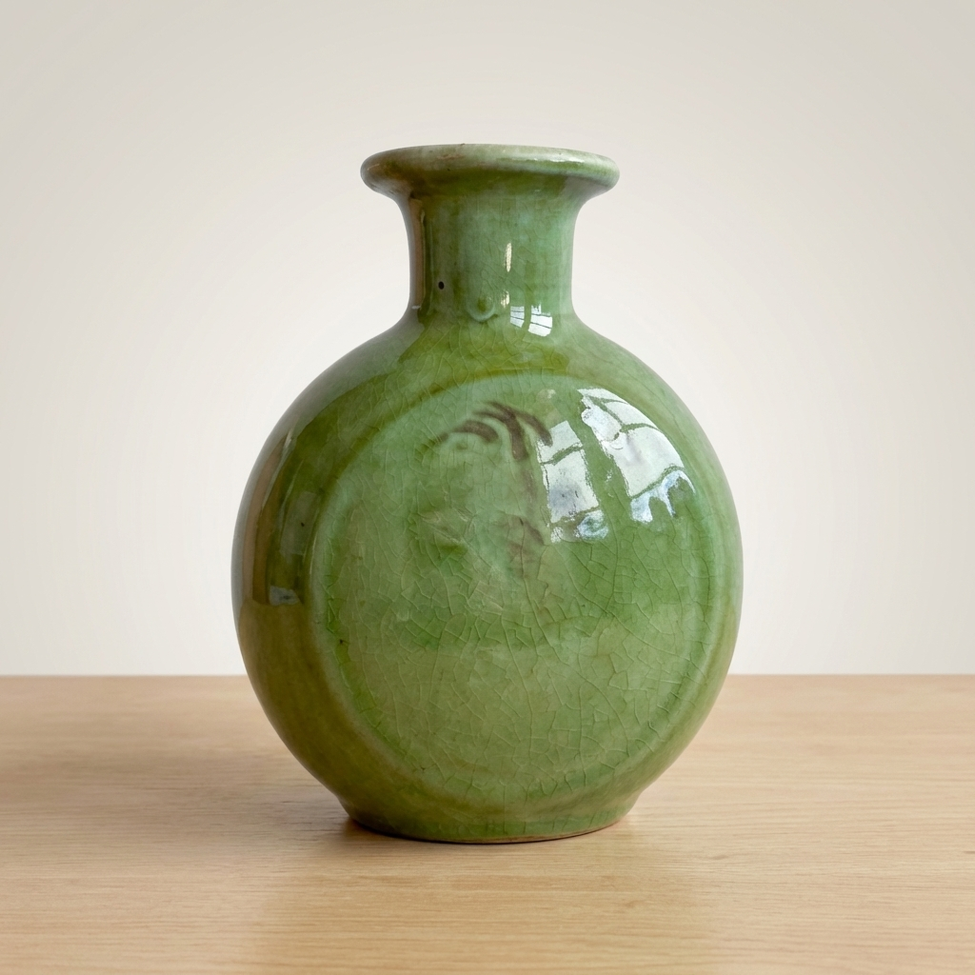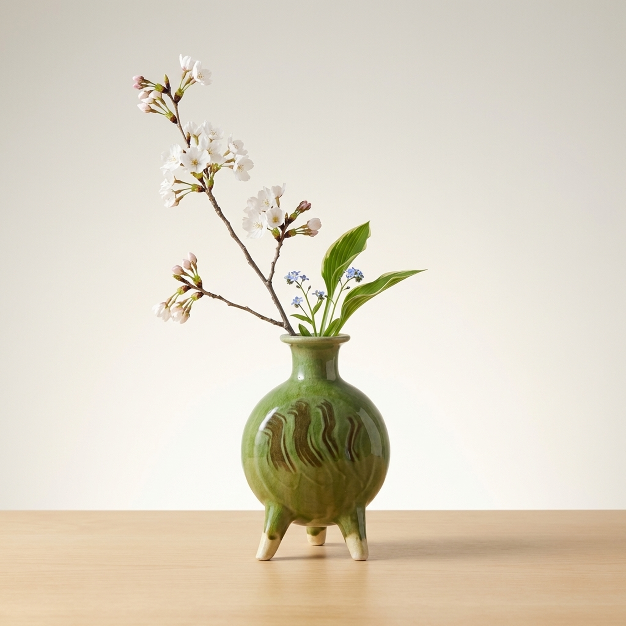 <p>Maker / Brand: Funaki Kenji Title of Work: Green Glazed Three-Legged Flower Vase with Original Box, Undamaged, Rare, Mingei, Bernard Leach</p> <p>This exquisite three-legged flower vase by Funaki Kenji embodies the rustic beauty and functional elegance central to the Mingei folk craft movement. Adorned with a striking green glaze, its unique form and rich color make it a truly distinctive piece of Japanese ceramic art. This rare and undamaged vessel comes complete with its original wooden box, adding to its provenance and collectible value.</p> <p>Artistic & Cultural Background The Mingei movement, championed by figures like Yanagi Soetsu and the British potter Bernard Leach, celebrated the beauty of everyday utilitarian objects made by anonymous craftspeople. Funaki Kenji, a significant figure in this movement, embraced its philosophy of honest craftsmanship and natural aesthetics. This vase reflects the Mingei ideal of finding profound beauty in simple, functional forms, connecting it to a rich lineage of Japanese folk art. A similar piece is believed to be housed in the Shimane Prefectural Museum, further underscoring its cultural significance.</p> <p>Design & Technique The vase features a vibrant green glaze (ryokuyu) that flows beautifully over its rounded body, creating subtle variations in tone and texture. Darker, almost earthy brown streaks are artfully swirled into the green, adding depth and an organic, painterly quality to the surface. The three sturdy legs, left unglazed at their tips, provide a stable yet elegant base, a design choice that is both practical and visually striking.</p> <p>Form & Aesthetic Qualities * <strong>Unique Silhouette:</strong> A charming globular body tapers gracefully to a narrow neck and gently flared rim, supported by three robust, splayed legs. * <strong>Luminous Glaze:</strong> The glossy green glaze shimmers with an inviting depth, enhanced by the spontaneous, naturalistic patterns of darker pigment. * <strong>Harmonious Balance:</strong> Despite its unusual three-legged form, the vase achieves a perfect balance of stability and delicate elegance, inviting contemplation.</p> <p>Collector & Decorative Appeal * <strong>Mingei Provenance:</strong> A genuine piece by Funaki Kenji, a respected Mingei artist, offering a tangible connection to this important Japanese art movement and its association with Bernard Leach. * <strong>Exceptional Condition & Rarity:</strong> Described as undamaged and rare, this vase represents a unique opportunity to acquire a well-preserved example of the artist's distinctive work. * <strong>Versatile Display:</strong> Its striking color and form make it a striking centerpiece for a variety of interior styles, from traditional Japanese to modern minimalist, or as a standalone sculptural object.</p> <p>This piece is an ideal acquisition for collectors passionate about Japanese folk art and those seeking a unique, historically significant decorative accent for their home.</p> <h3>Details</h3> <table style="border-collapse:collapse;width:100%"><tr><td style="padding:4px 12px 4px 0;font-weight:bold;white-space:nowrap">Condition</td><td style="padding:4px 0">Good</td></tr><tr><td style="padding:4px 12px 4px 0;font-weight:bold;white-space:nowrap">Material</td><td style="padding:4px 0">Wood</td></tr><tr><td style="padding:4px 12px 4px 0;font-weight:bold;white-space:nowrap">Era</td><td style="padding:4px 0">Unknown</td></tr></table>