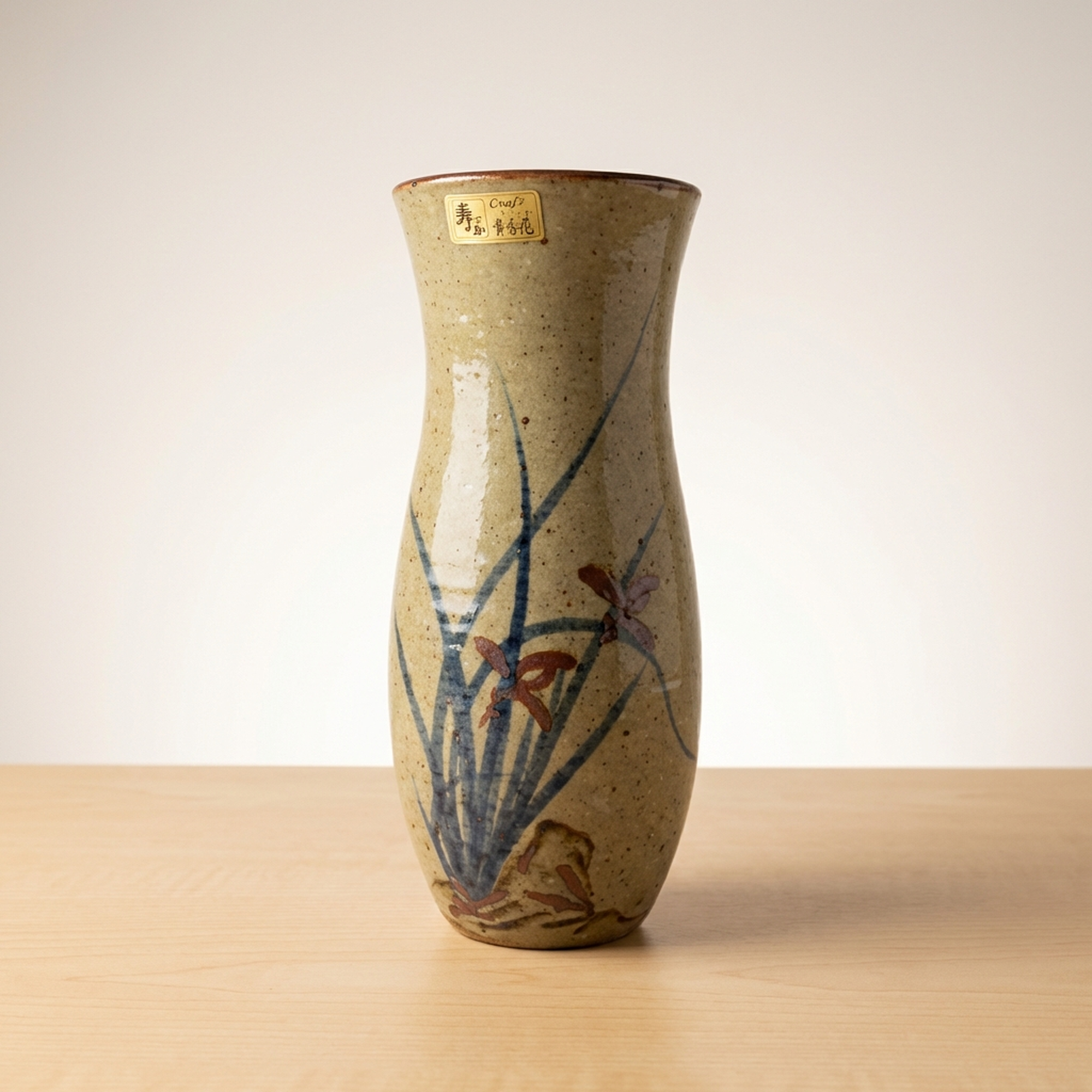 Kotobuki-gama Artisan Japanese Ceramic Flower Vase with Original Wooden Box