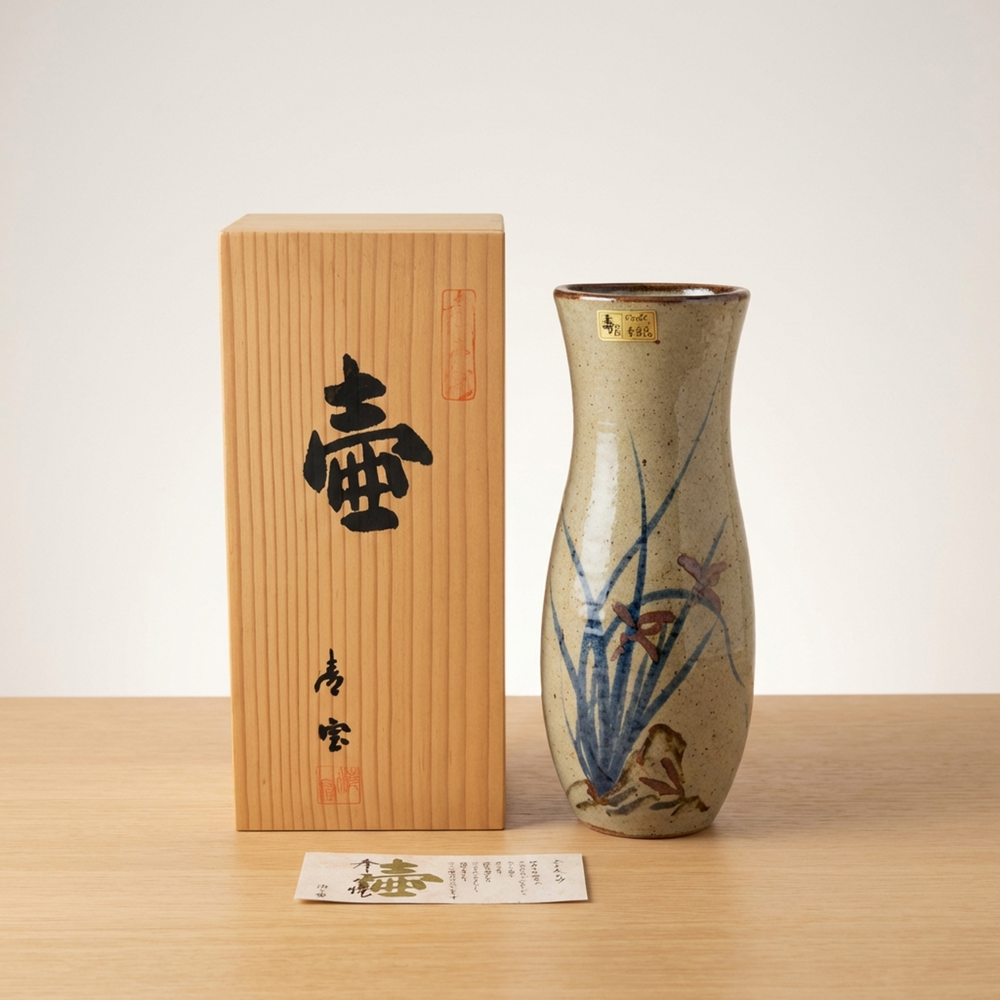 Kotobuki-gama Artisan Japanese Ceramic Flower Vase with Original Wooden Box - hero
