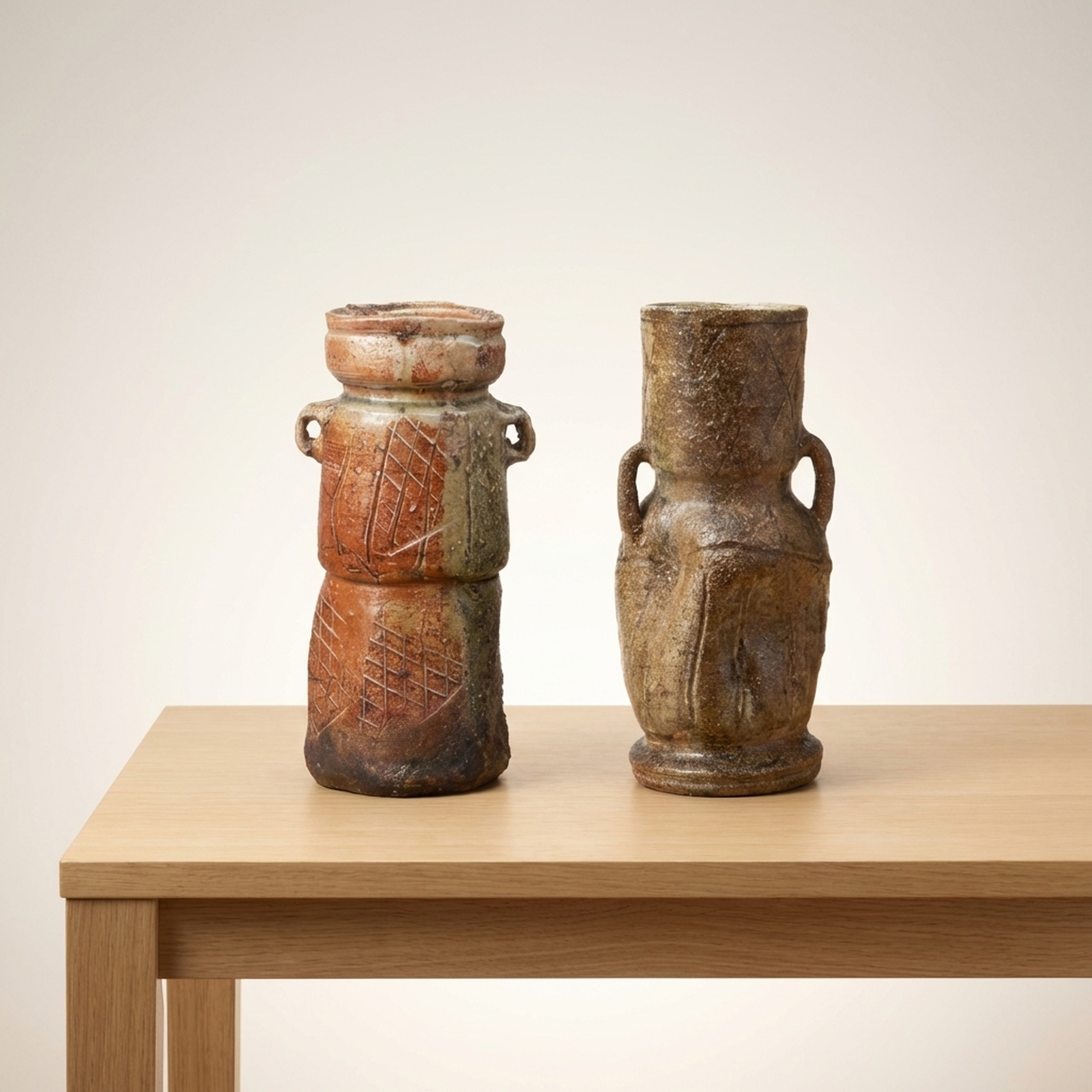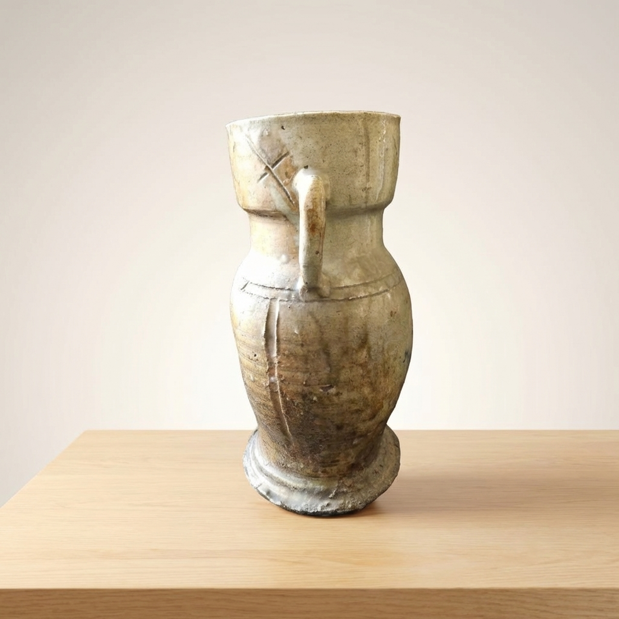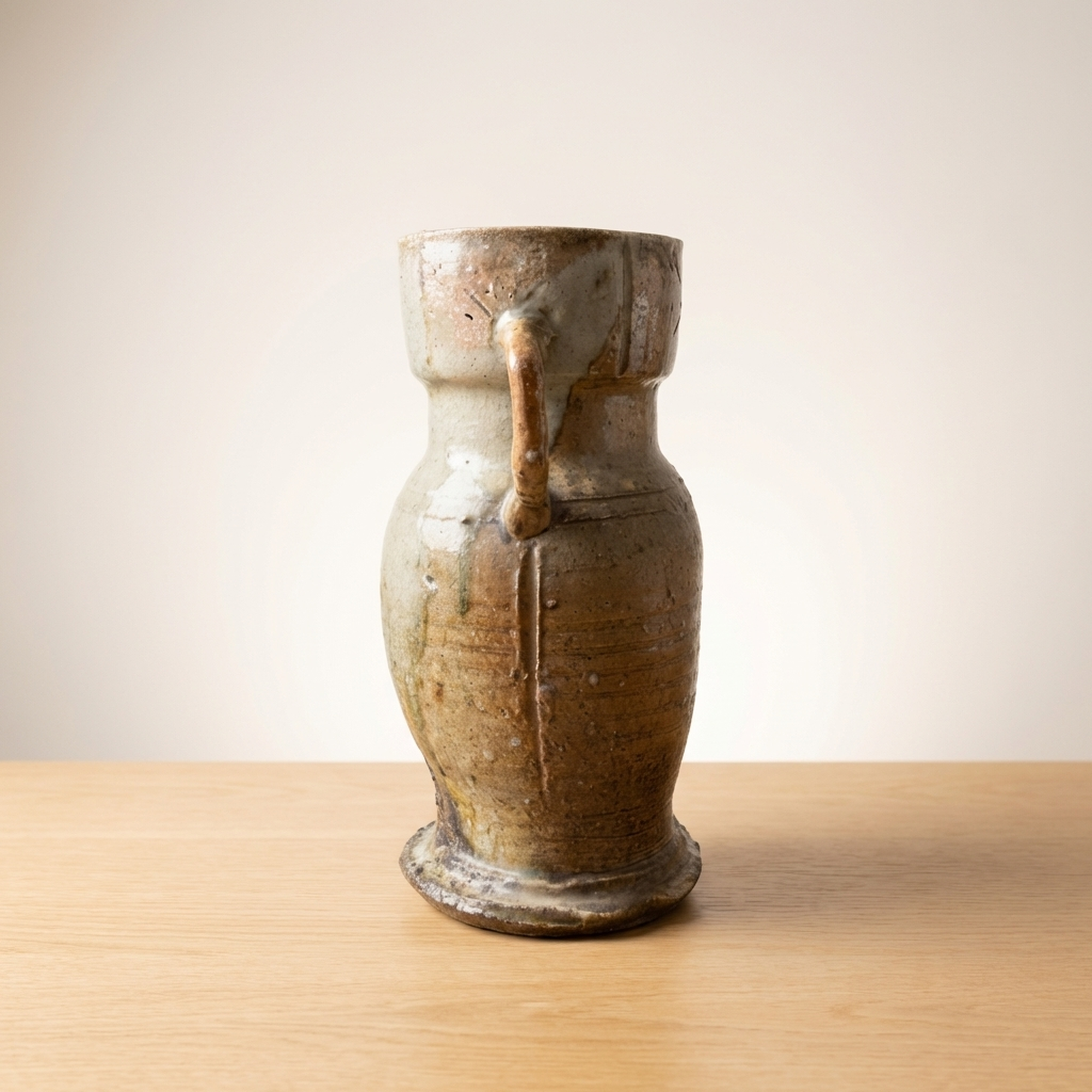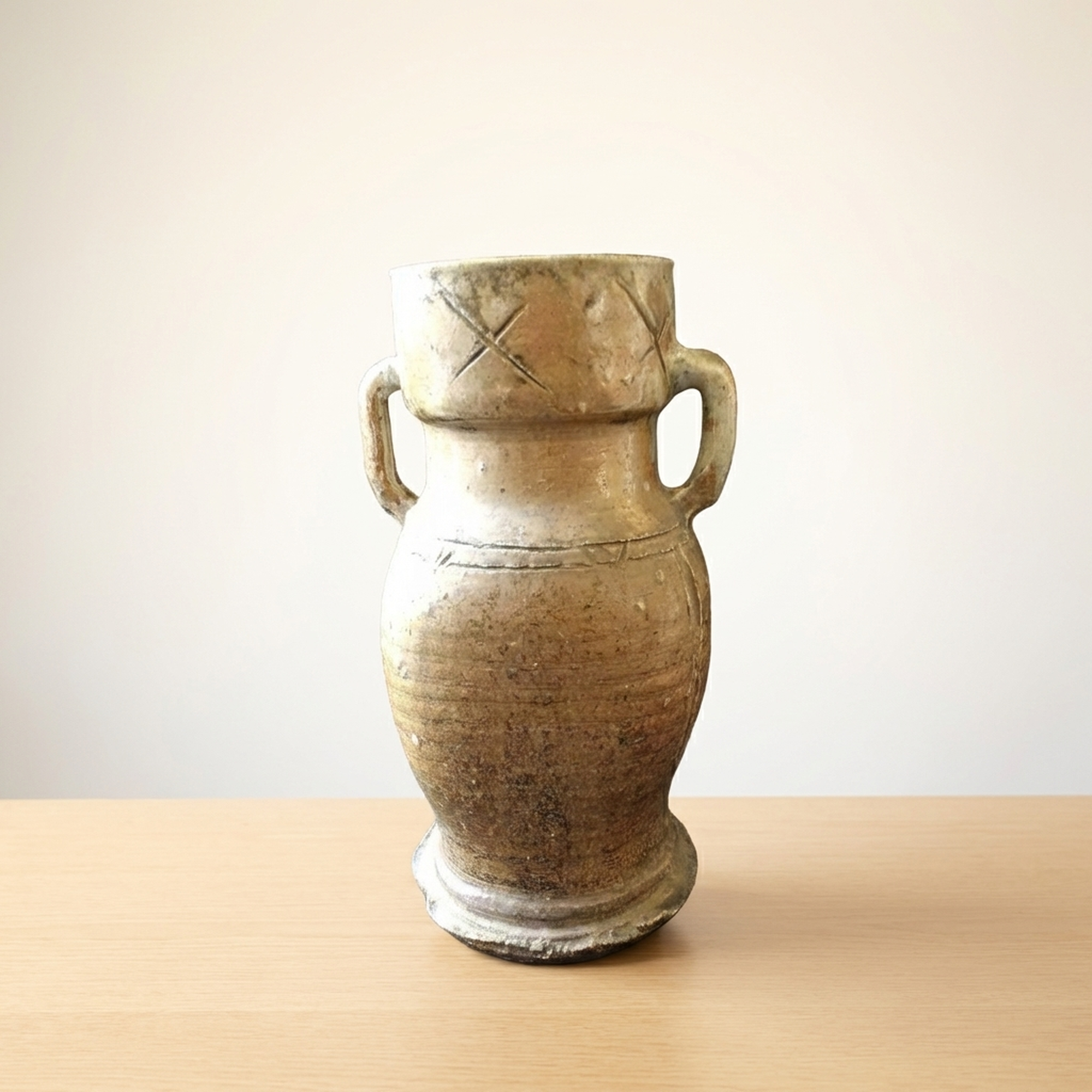 <p>Maker / Brand: Unknown (Iga ware) Title of Work: Old Iga Flower Vase with Box (Iga, for Tea Ceremony, Flower Arrangement, Tea Utensil)</p> <p>This exquisite Ko-Iga hanaike, or flower vase, embodies the rustic elegance and profound aesthetic of traditional Japanese ceramics. It is a example to the enduring craftsmanship of Iga ware, presented with its original protective wooden box. The historical significance of this piece is underscored by the fact that similar examples are featured in respected art publications.</p> <p>Artistic & Cultural Background Iga ware (Iga-yaki), hailing from Mie Prefecture, is one of Japan's most ancient and celebrated ceramic traditions. "Ko-Iga" specifically refers to early Iga pieces, highly esteemed for their unrefined beauty and connection to the wabi-sabi aesthetic. These vessels were, and continue to be, cherished in the worlds of sadou (tea ceremony) and kadou (flower arrangement), where their natural imperfections and earthy character are deeply appreciated.</p> <p>Design & Technique This Ko-Iga vase showcases the distinctive qualities of Iga ceramics. Crafted from local clay rich in feldspar, its surface reveals the dramatic effects of high-temperature firing in anagama kilns. Natural ash glazes (shizen-yu) have settled and melted, creating unique patterns and textures. The robust form is subtly enhanced by incised lines and prominent handles, adding to its sculptural presence. The piece maintains a generally good condition, reflecting its age and journey.</p> <p>Form & Aesthetic Qualities * <strong>Shape:</strong> Standing approximately 30cm tall with a width of 17cm, this vase features a strong, organic silhouette, characterized by its substantial base and gracefully curved body with integrated handles. * <strong>Texture:</strong> The tactile surface is a symphony of natural textures, from the rough, unglazed clay to areas where molten ash has created a subtle, glass-like sheen. * <strong>Visual Appeal:</strong> Its earthy tones, spontaneous glaze effects, and inherent imperfections create a striking visual narrative, inviting quiet contemplation and embodying the spirit of wabi-sabi.</p> <p>Collector & Decorative Appeal * <strong>Historical Significance:</strong> As a Ko-Iga piece, it offers a tangible link to Japan's revered ceramic past, with its lineage acknowledged by its inclusion in art publications. * <strong>Authentic Presentation:</strong> The accompanying wooden box (kiri-bako) not only protects the vase but also signifies its value and traditional appreciation as a treasured art object. * <strong>Versatile Display:</strong> Perfect as a centerpiece for ikebana arrangements, a focal point in a minimalist interior, or a significant addition to a collection of Japanese art and antiques.</p> <p>This Ko-Iga hanaike is an exceptional acquisition for knowledgeable collectors and decorators seeking a piece of Japan's profound artistic heritage and the timeless beauty of natural ceramics.</p> <h3>Details</h3> <table style="border-collapse:collapse;width:100%"><tr><td style="padding:4px 12px 4px 0;font-weight:bold;white-space:nowrap">Condition</td><td style="padding:4px 0">Good</td></tr><tr><td style="padding:4px 12px 4px 0;font-weight:bold;white-space:nowrap">Material</td><td style="padding:4px 0">Ceramic</td></tr><tr><td style="padding:4px 12px 4px 0;font-weight:bold;white-space:nowrap">Era</td><td style="padding:4px 0">Unknown</td></tr></table>