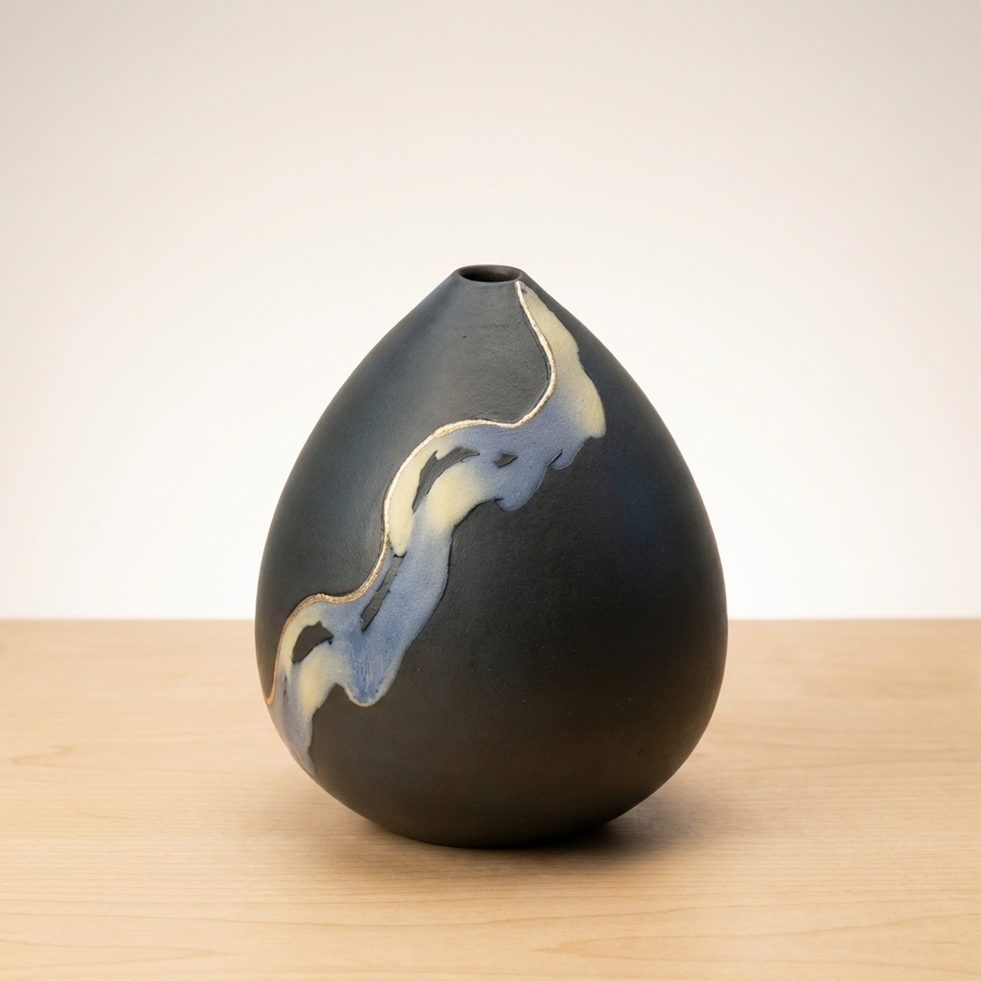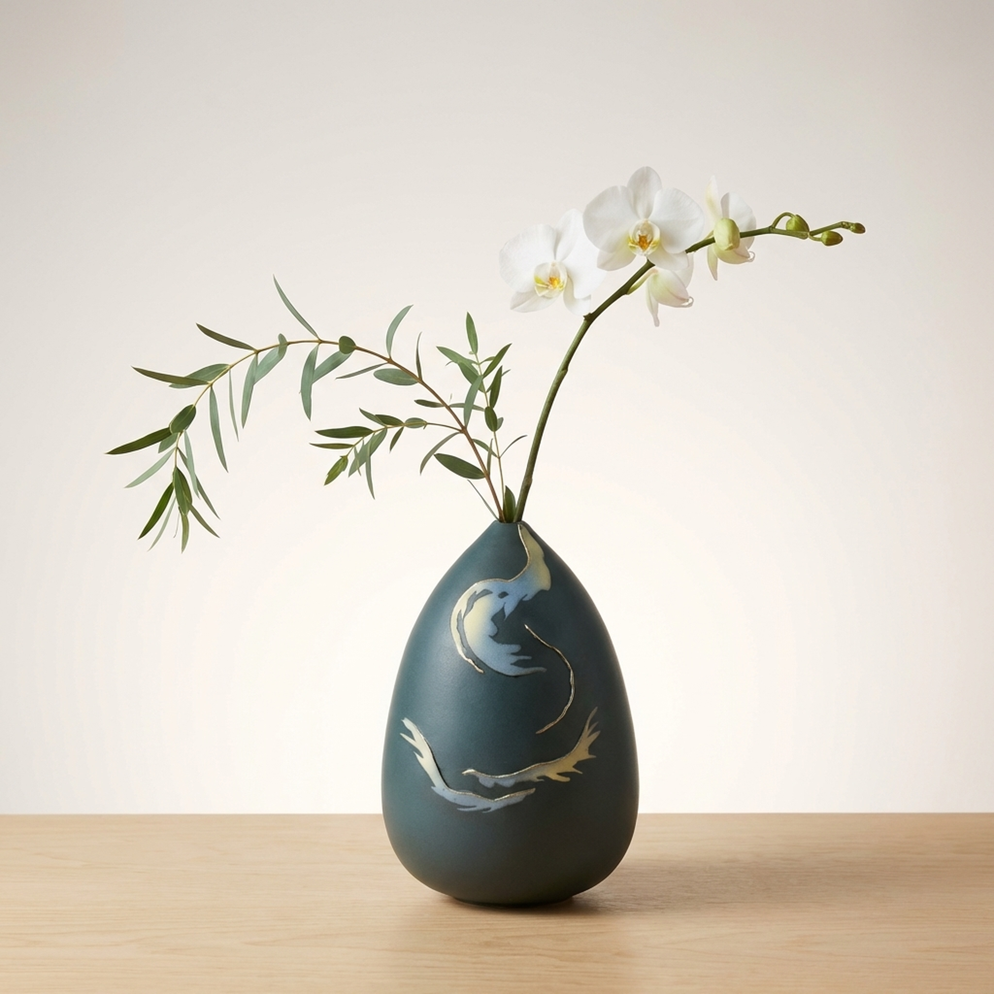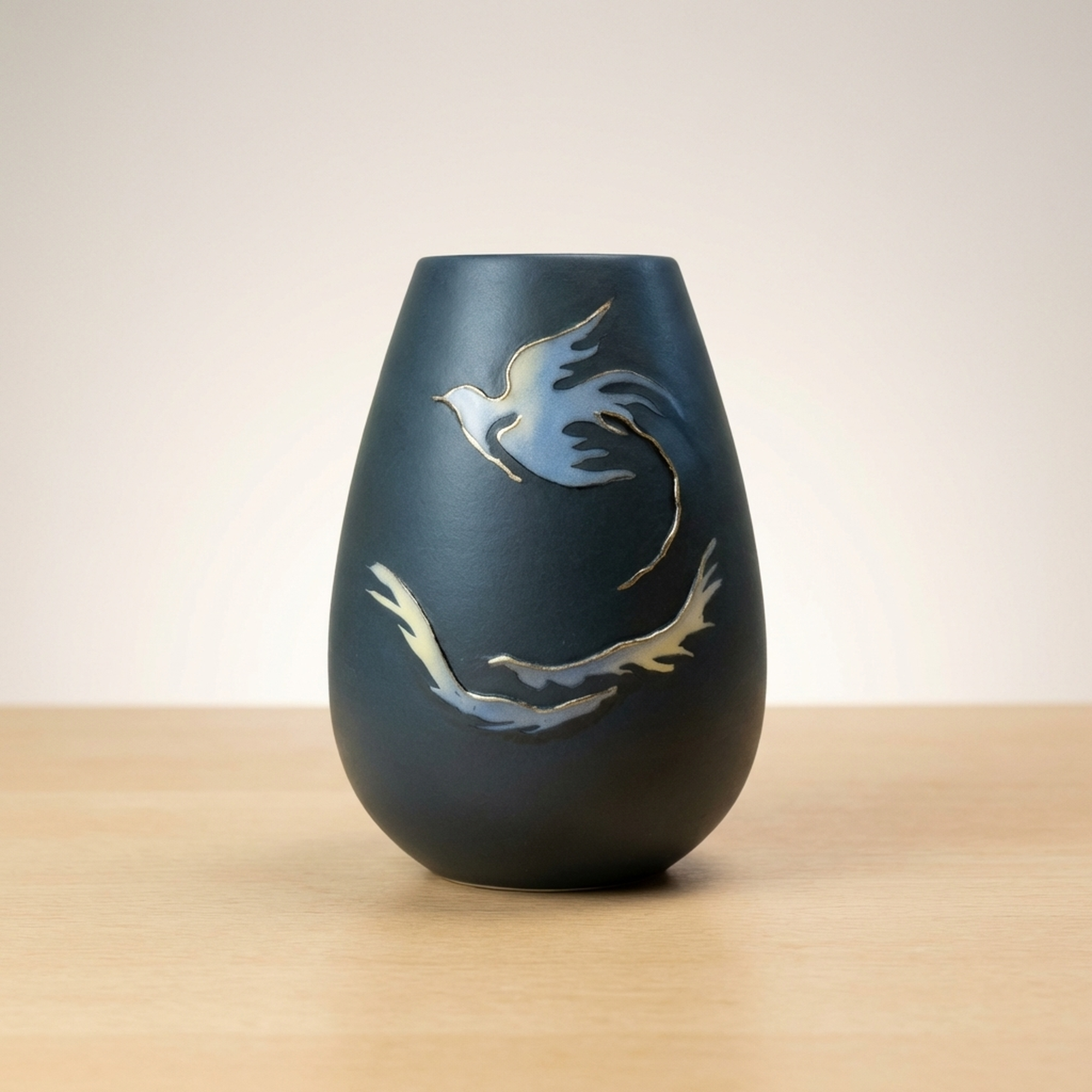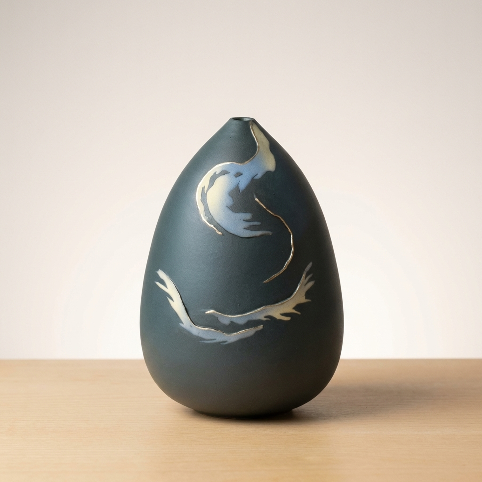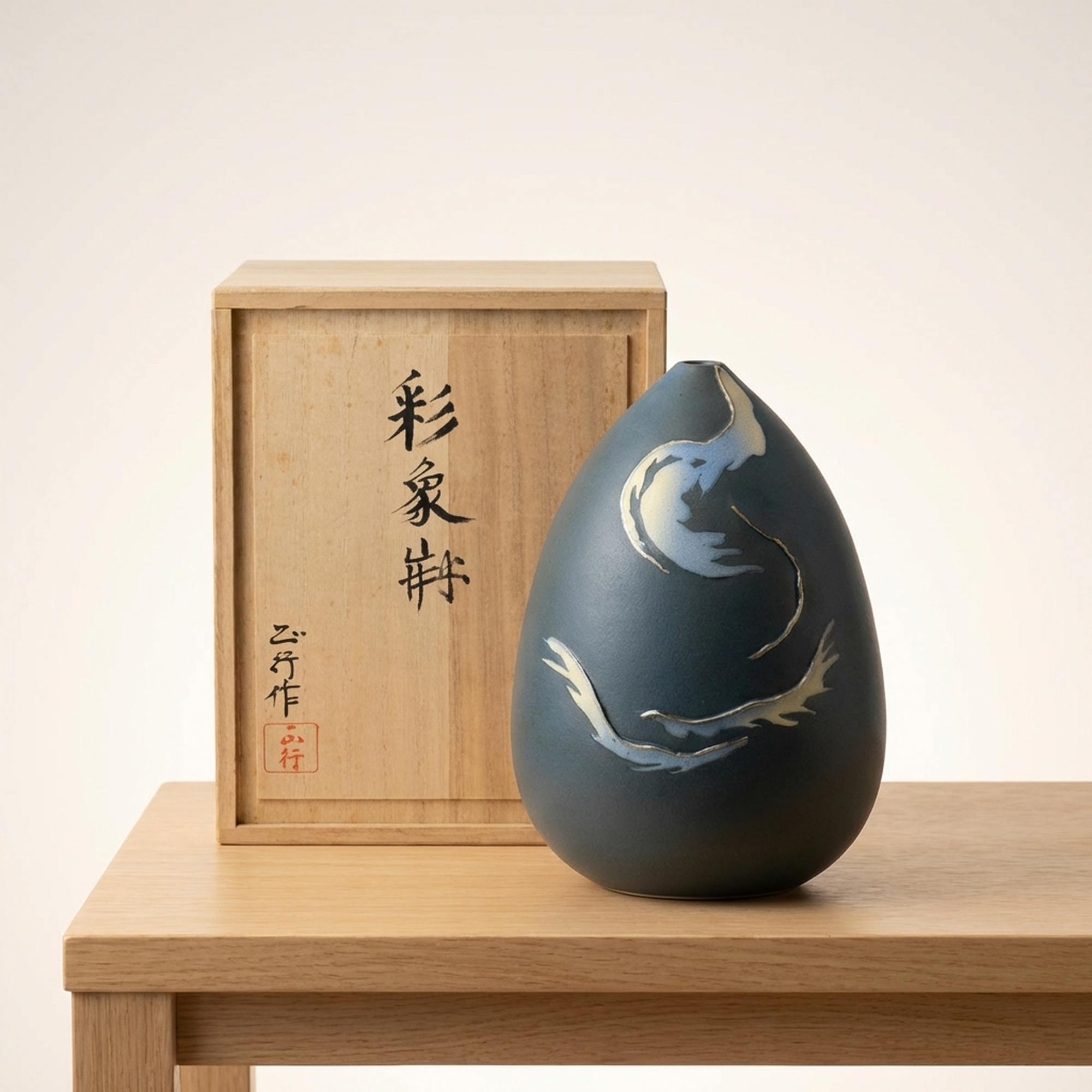<p>STRUCTURE Maker / Brand: Omori Masayuki Title of Work: Colored Inlay Flower Vase</p> <p>Discover this exquisite flower vase crafted by the esteemed artist Omori Masayuki, featuring the striking technique of *sai zogan*, or colored inlay. Presented in unused condition, this piece comes complete with its original wooden box (*kyobako*), protective cloth (*kyofu*), and a descriptive leaflet (*shiori*), ensuring its authenticity and pristine preservation. Its elegant form and detailed decoration make it a truly remarkable addition to any collection.</p> <p>Artistic & Cultural Background The art of *zogan*, or inlay, boasts a rich history in Japan, traditionally applied across various crafts from metalwork to lacquerware. In ceramics, *zogan* is a highly specialized and demanding technique where contrasting materials are embedded into the surface of the ceramic body. *Sai zogan*, or colored inlay, elevates this further by incorporating different hues, creating detailed patterns that are flush with the surface, a example to the artisan's precision and mastery.</p> <p>Design & Technique This vase showcases Omori Masayuki's skill in *sai zogan*. The vessel's body is adorned with gracefully flowing, stylized forms, possibly evoking birds in flight or abstract natural elements. These designs are carefully inlaid in soft, contrasting tones of pale blue and subtle gold, standing out against the vase's deep, matte blue-grey ground. The inlay technique creates a smooth, tactile surface where the decorative elements are seamlessly integrated, offering a sophisticated visual and textural experience.</p> <p>Form & Aesthetic Qualities * <strong>Organic Silhouette:</strong> The vase features a beautifully balanced ovoid form, tapering gently to a narrow, refined mouth, creating an elegant and harmonious profile. * <strong>Subtle Tactility:</strong> The smooth, unglazed or matte-glazed surface of the body provides a pleasing tactile quality, subtly contrasting with the delicate sheen of the inlaid elements. * <strong>Muted Sophistication:</strong> The deep, understated base color provides a serene backdrop, allowing the soft, luminous colors of the inlay to emerge with quiet grace and sophistication.</p> <p>Collector & Decorative Appeal * <strong>Masterful Craftsmanship:</strong> This piece represents the pinnacle of ceramic artistry, demonstrating the rare and detailed *sai zogan* technique executed by a recognized artist, Omori Masayuki. * <strong>Versatile Elegance:</strong> Its timeless design and refined aesthetic make it a perfect accent for both traditional Japanese interiors and contemporary minimalist spaces, adding a touch of serene beauty. * <strong>Preserved Authenticity:</strong> Offered in unused condition and accompanied by its original presentation box and accessories, this vase is a complete and authentic collector's item, ready to be cherished.</p> <p>This exquisite vase is an ideal acquisition for the knowledgeable collector seeking a piece that embodies both profound artistic skill and understated elegance.</p> <p>Dimensions: Height: Approximately 23cm Width: Approximately 15.7cm Mouth Diameter: Approximately 1.6cm</p> <h3>Details</h3> <table style="border-collapse:collapse;width:100%"><tr><td style="padding:4px 12px 4px 0;font-weight:bold;white-space:nowrap">Condition</td><td style="padding:4px 0">Excellent</td></tr><tr><td style="padding:4px 12px 4px 0;font-weight:bold;white-space:nowrap">Material</td><td style="padding:4px 0">Ceramic</td></tr><tr><td style="padding:4px 12px 4px 0;font-weight:bold;white-space:nowrap">Era</td><td style="padding:4px 0">Unknown</td></tr><tr><td style="padding:4px 12px 4px 0;font-weight:bold;white-space:nowrap">Dimensions</td><td style="padding:4px 0">サイズ :高さ 約 23cm</td></tr></table>