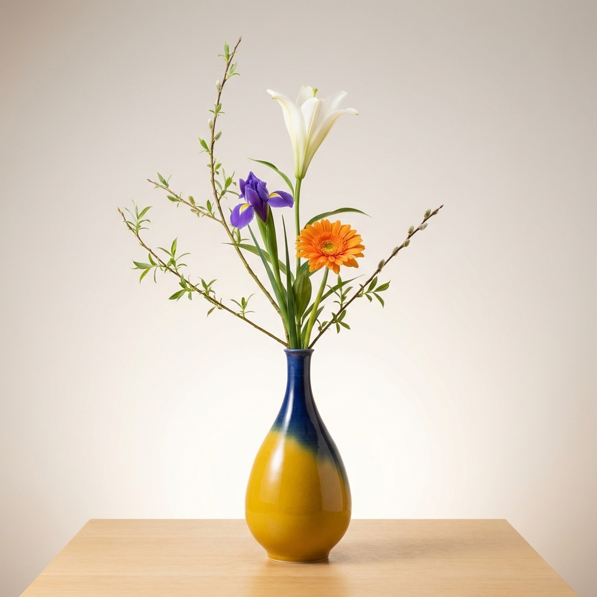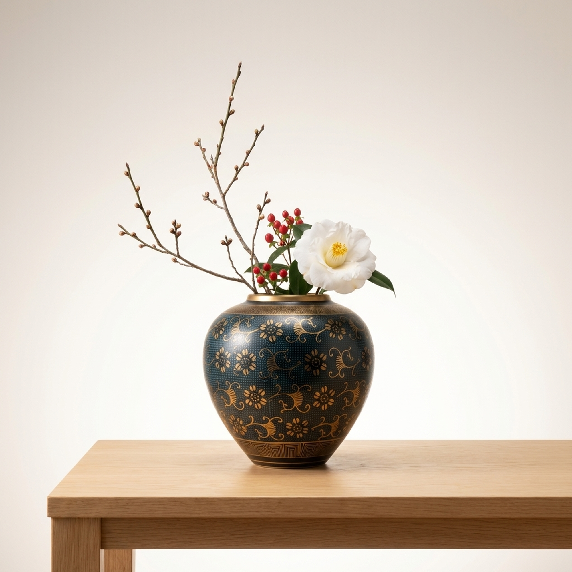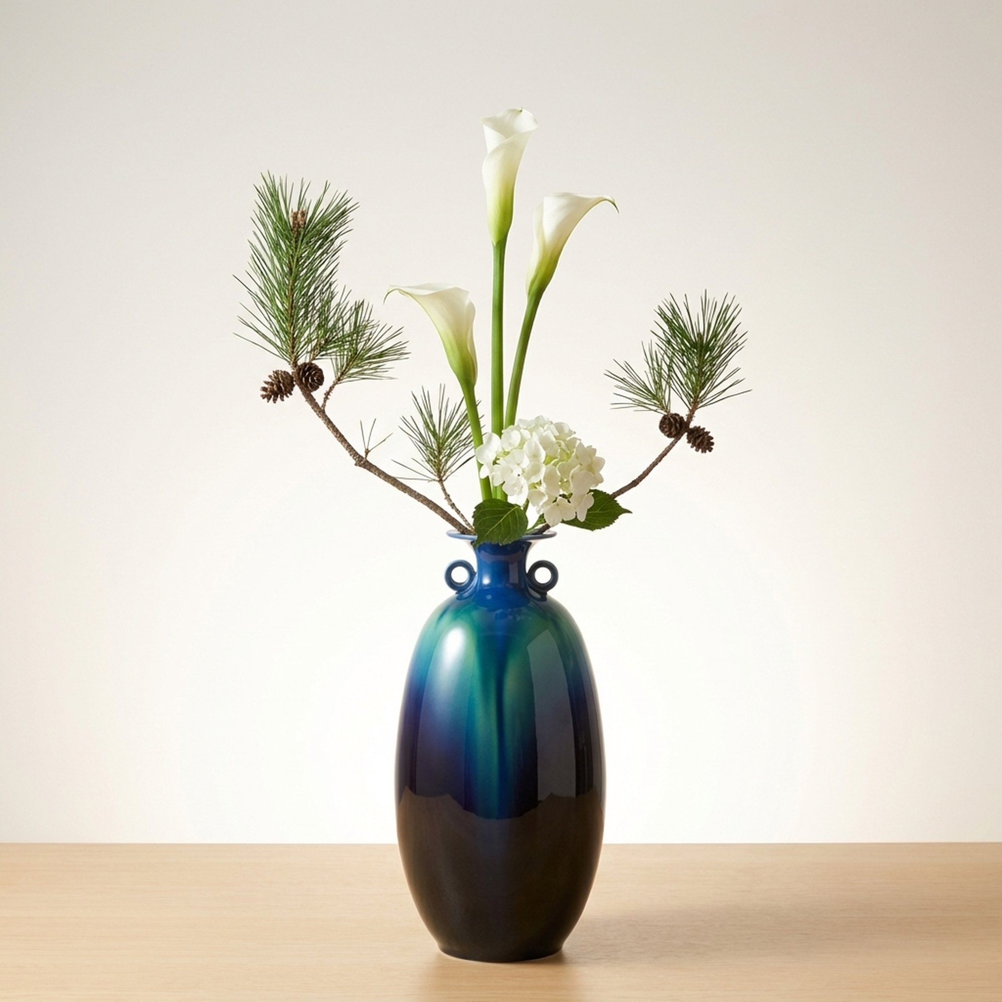 Showa Retro Sculptural Carved Ceramic Flower Vase, Lapis Blue Matte Finish