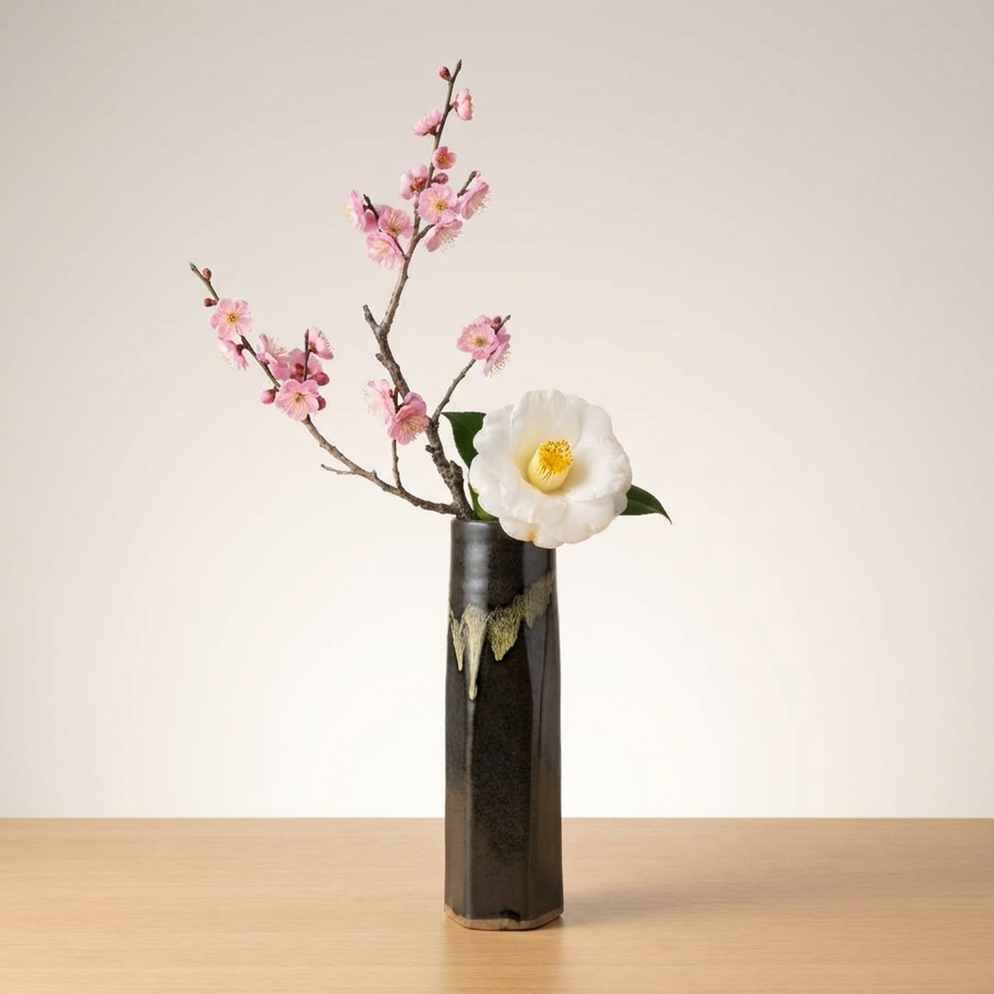 Kuro Satsuma Kiryu-yaki Kirishima Hexagonal Faceted Flower Vase, 25cm Tall