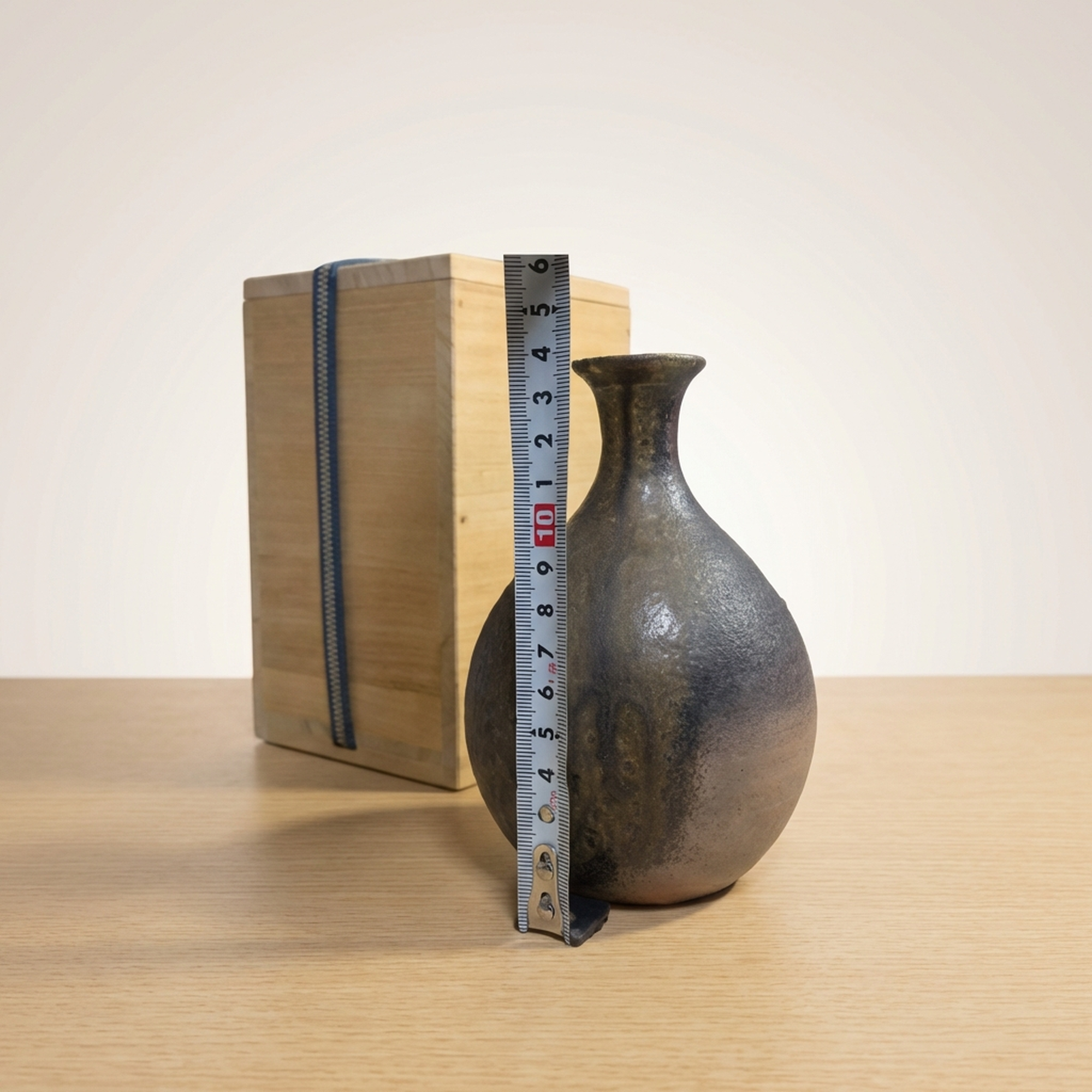 <p>Maker / Brand: Matsui Noriyuki (Bizen) Title of Work: Bizen Single-Flower Vase by Matsui Noriyuki, with Original Signed Box</p> <p>Discover the profound beauty of this Bizen single-flower vase, a masterful creation by the esteemed artist Matsui Noriyuki. This exquisite ichirin-zashi embodies the rustic elegance and natural artistry for which Bizen ware is celebrated, presented in its original signed wooden box (tomobako) to certify its authenticity and provenance.</p> <p>Artistic & Cultural Background Bizen ware, or Bizen-yaki, hails from one of Japan's Six Ancient Kilns, with a history stretching over a thousand years. Renowned for its distinctive unglazed aesthetic, Bizen pottery relies entirely on the natural effects of high-temperature firing in a wood-fired kiln. This method allows the iron-rich clay to develop a rich spectrum of earthy tones and unique surface textures, embodying the Japanese aesthetic of wabi-sabi and finding favor in the traditional tea ceremony.</p> <p>Design & Technique This vase exemplifies the raw, unadorned beauty characteristic of Bizen ceramics. Crafted from the region's distinctive iron-rich clay, it has been fired at intense temperatures without the application of any glaze. The striking surface patterns and color variations are the result of yohen, or "kiln changes," where ash deposits, flame patterns, and temperature fluctuations create spontaneous, organic markings. Observe the subtle interplay of dark, almost metallic browns and warmer reddish-brown hues, a example to the unpredictable yet beautiful dance between clay and fire.</p> <p>Form & Aesthetic Qualities * <strong>Shape:</strong> A gracefully proportioned form with a gently swelling, rounded body tapering elegantly into a slender neck and subtly flared mouth, ideal for a single bloom. * <strong>Texture:</strong> The unglazed surface offers a wonderfully tactile experience, showcasing the natural grit and character of the Bizen clay, enhanced by varied textures from firing. * <strong>Visual Appeal:</strong> A compelling palette of deep, earthy tones, from charcoal to warm umber, with natural kiln marks creating dynamic, contemplative depth, celebrating imperfection.</p> <p>Collector & Decorative Appeal * <strong>Authenticity & Provenance:</strong> Accompanied by its tomobako, this piece is authenticated by the artist Matsui Noriyuki, ensuring its value and collectible status. * <strong>Timeless Elegance:</strong> Its minimalist yet powerful aesthetic makes it a versatile decorative accent, perfectly complementing both traditional Japanese interiors and contemporary spaces. * <strong>Artistic Significance:</strong> A genuine work of art from a celebrated Bizen artisan, offering a tangible connection to Japan's rich ceramic heritage and the enduring philosophy of wabi-sabi.</p> <p>This Bizen ichirin-zashi is an exceptional acquisition for the knowledgeable collector or decorator who appreciates the profound beauty found in natural materials and traditional craftsmanship.</p> <h3>Details</h3> <table style="border-collapse:collapse;width:100%"><tr><td style="padding:4px 12px 4px 0;font-weight:bold;white-space:nowrap">Condition</td><td style="padding:4px 0">Good</td></tr><tr><td style="padding:4px 12px 4px 0;font-weight:bold;white-space:nowrap">Origin</td><td style="padding:4px 0">Bizen, Okayama</td></tr><tr><td style="padding:4px 12px 4px 0;font-weight:bold;white-space:nowrap">Material</td><td style="padding:4px 0">Ceramic</td></tr><tr><td style="padding:4px 12px 4px 0;font-weight:bold;white-space:nowrap">Era</td><td style="padding:4px 0">Unknown</td></tr></table>