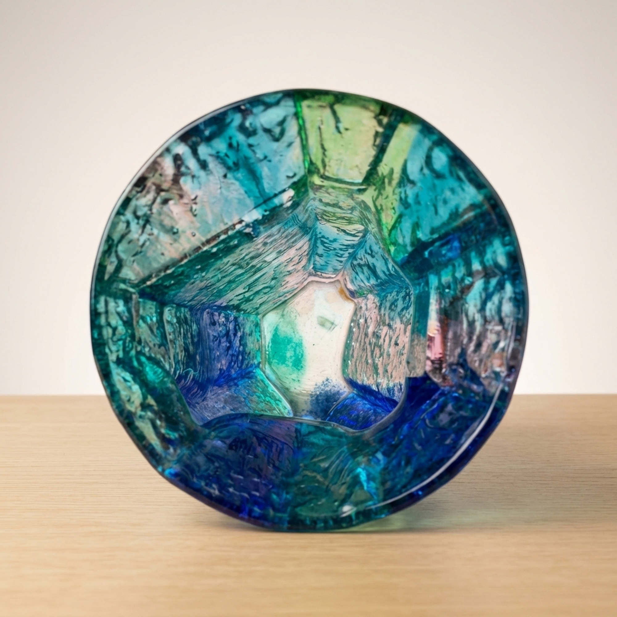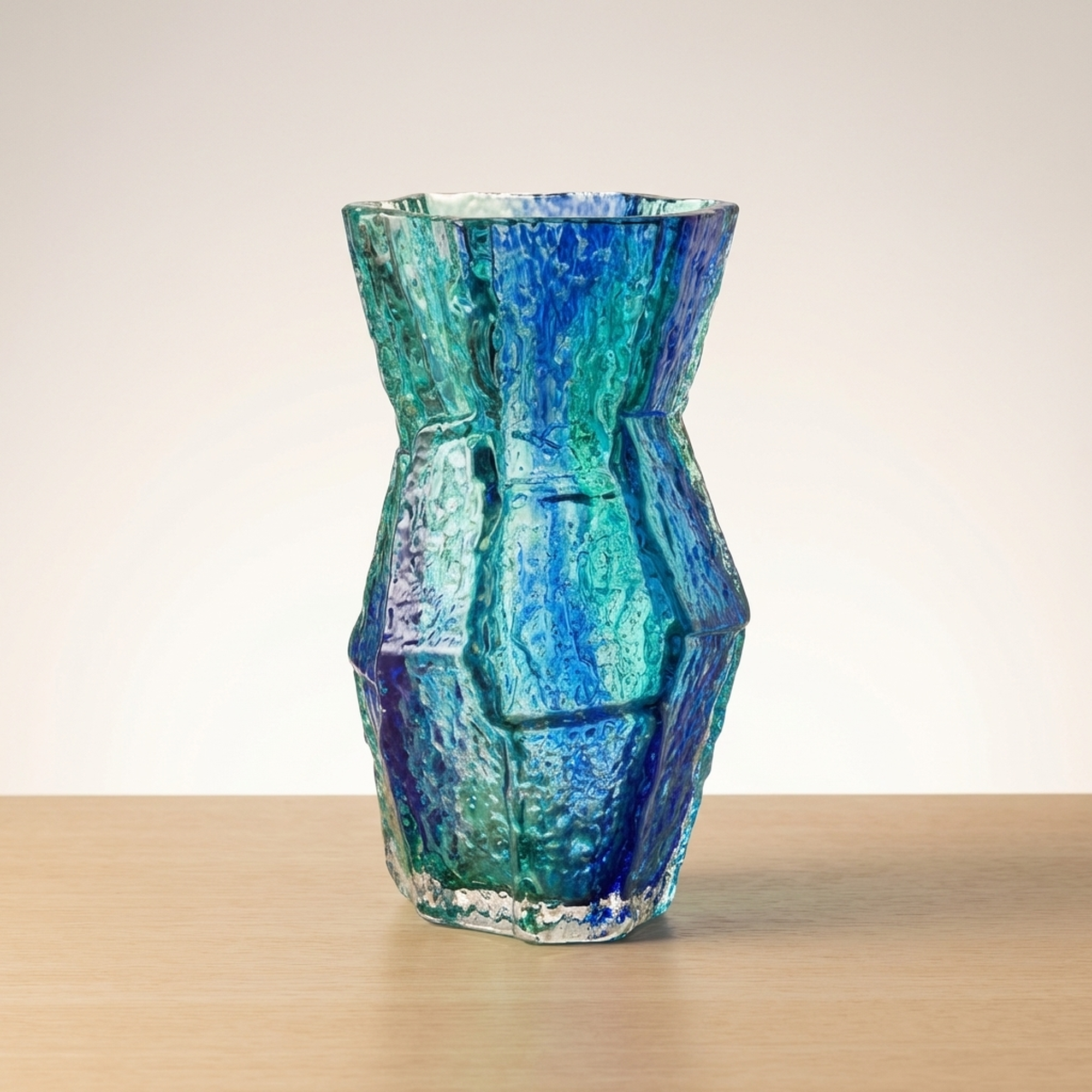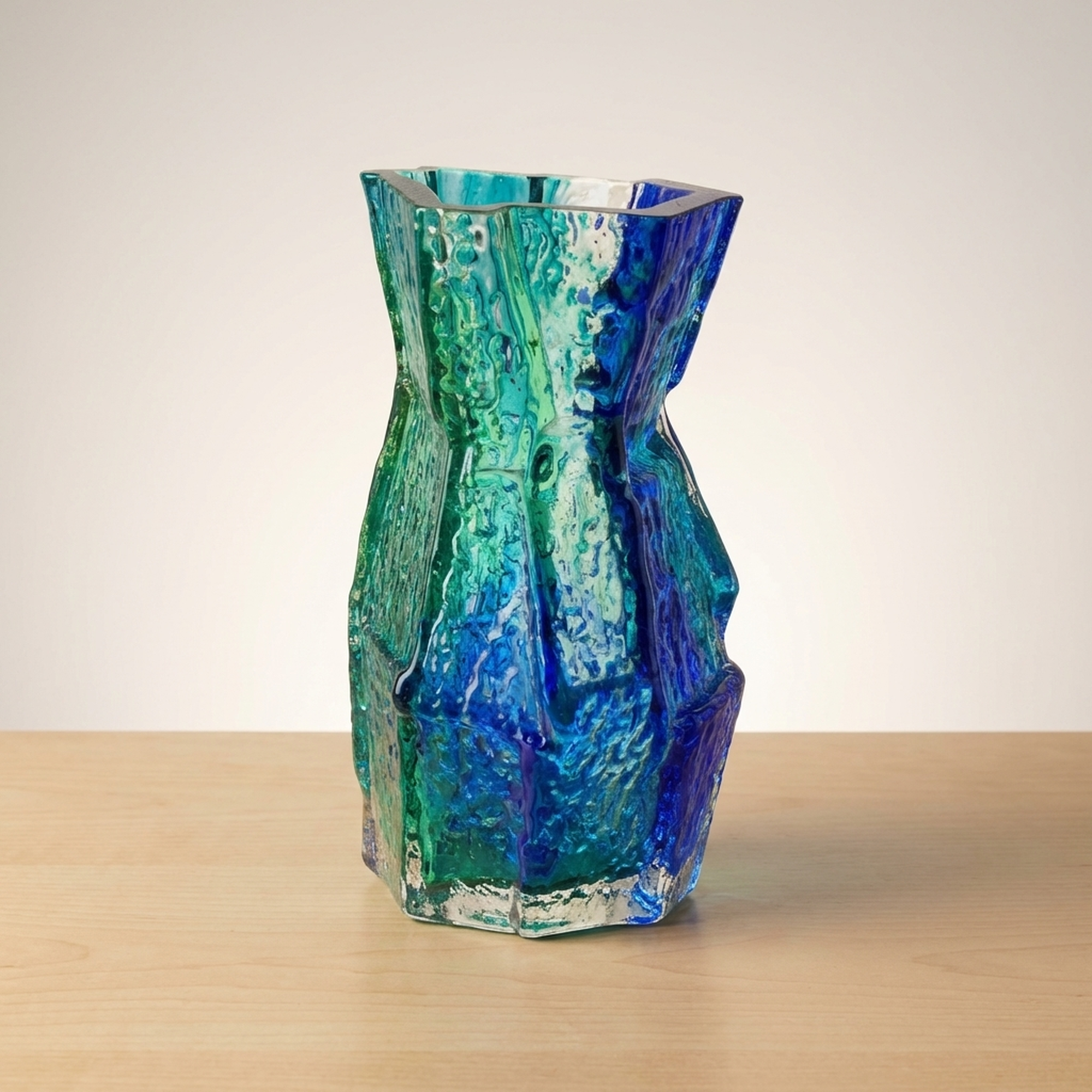 Iwata Itoko 'Uzu Shio' Swirling Tide Blue-Green Glass Vase Sculpture with Tomobako