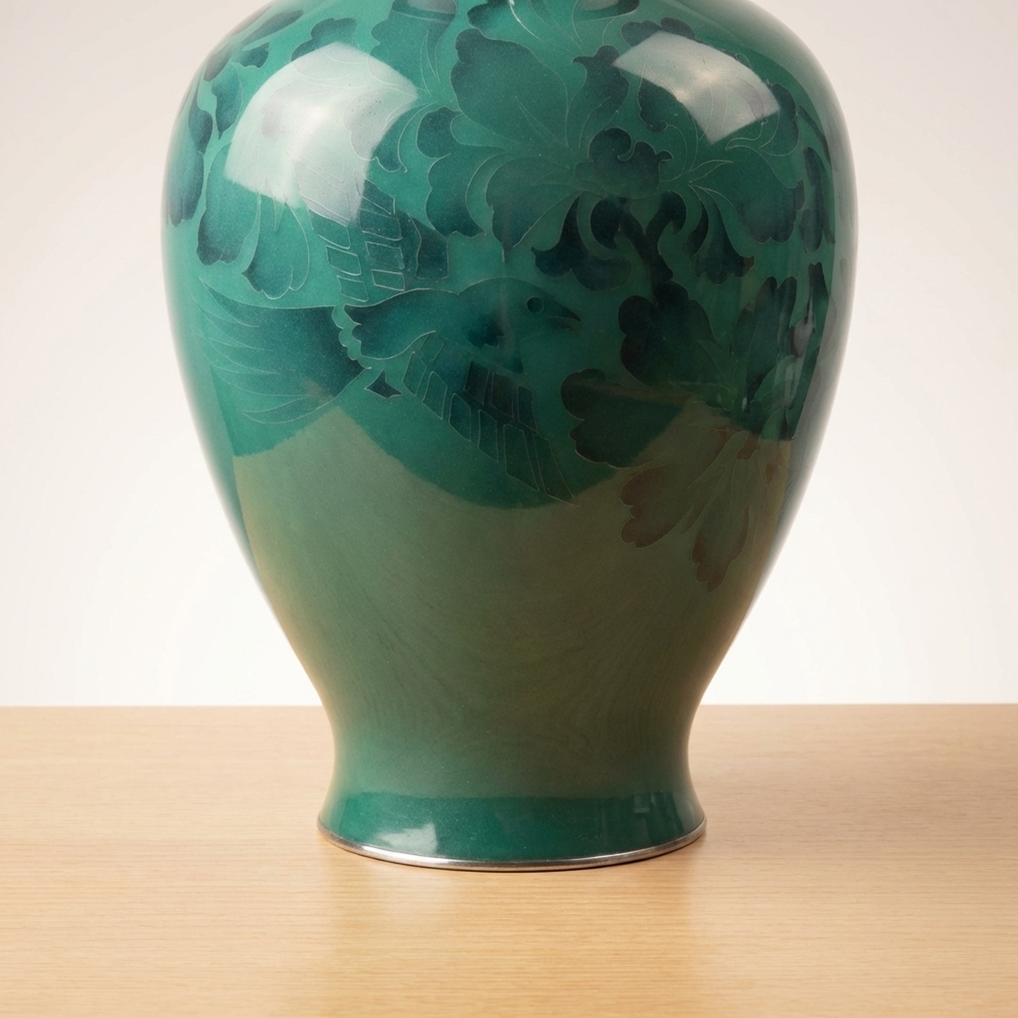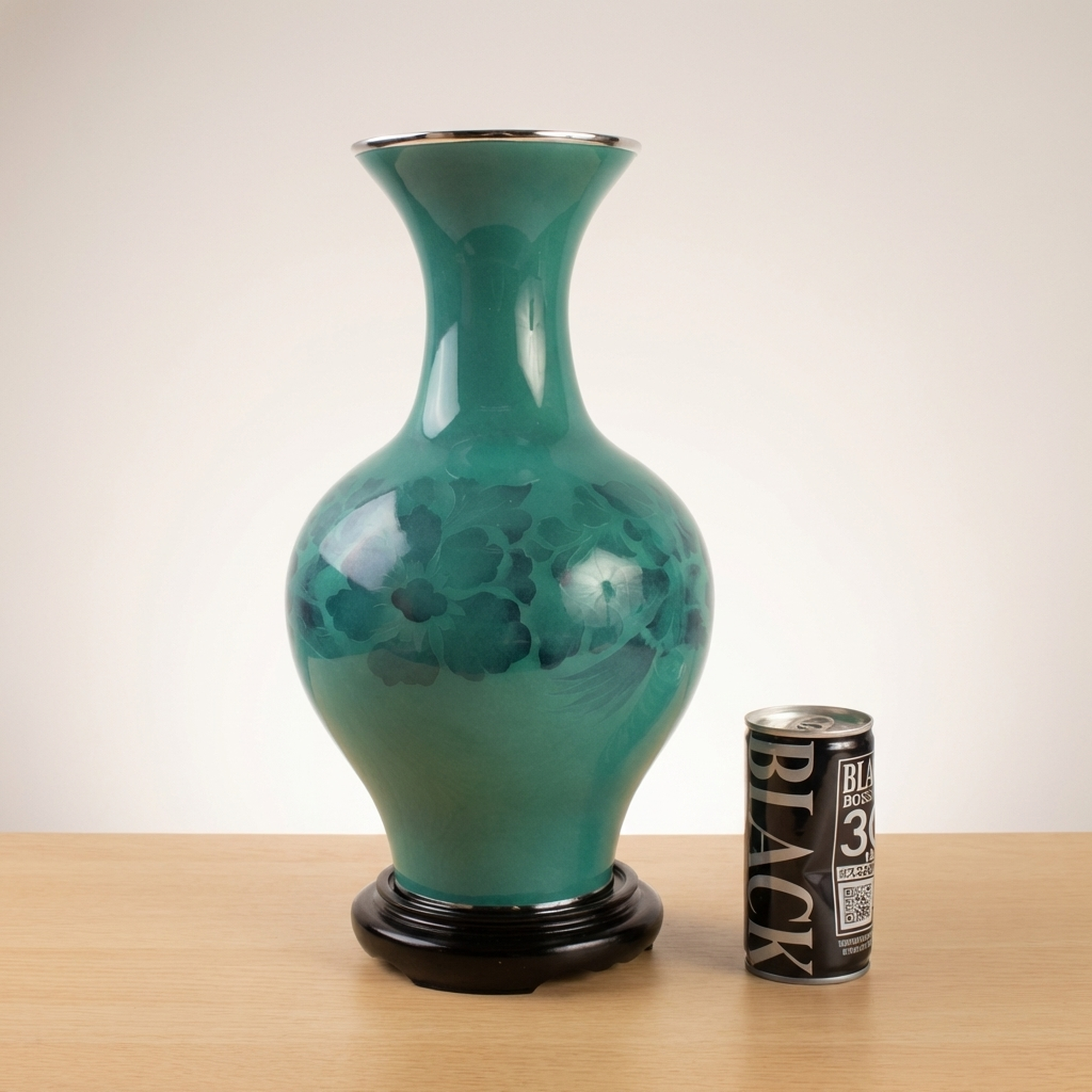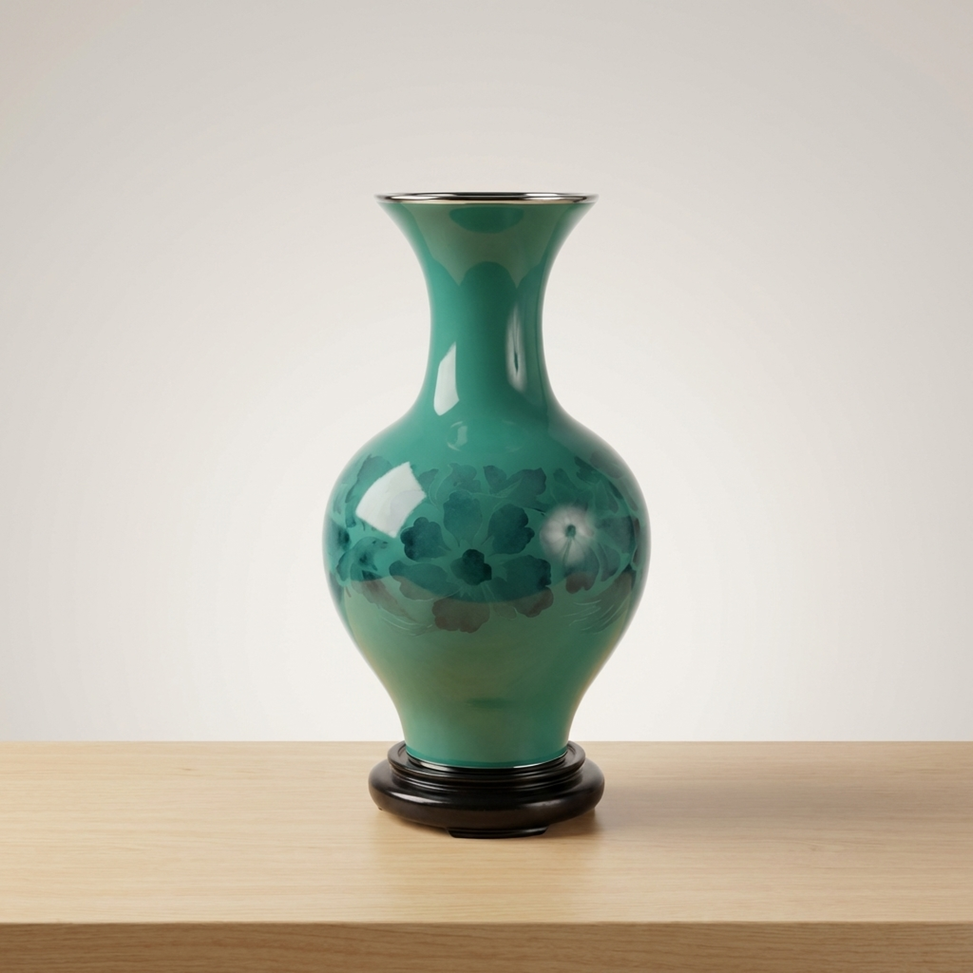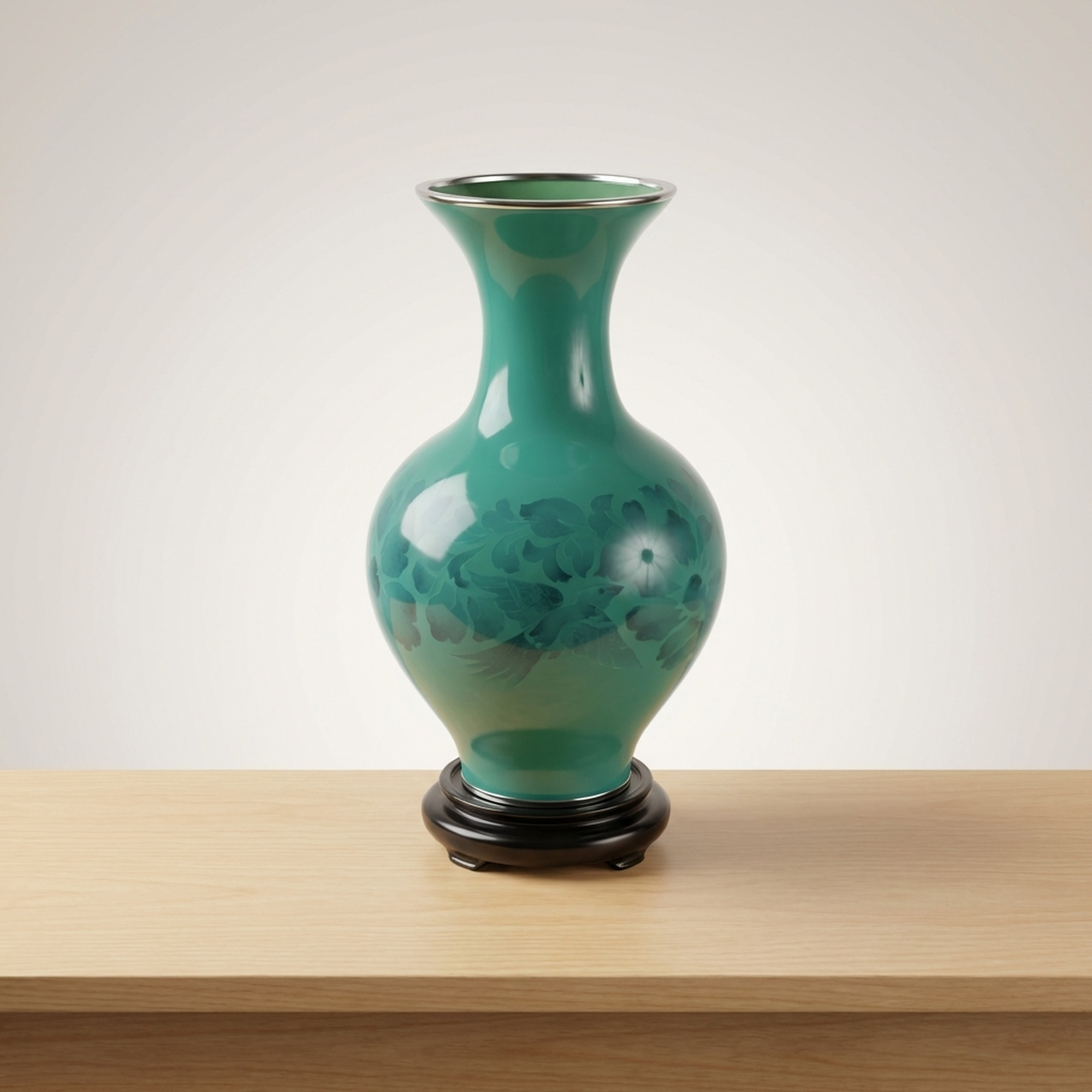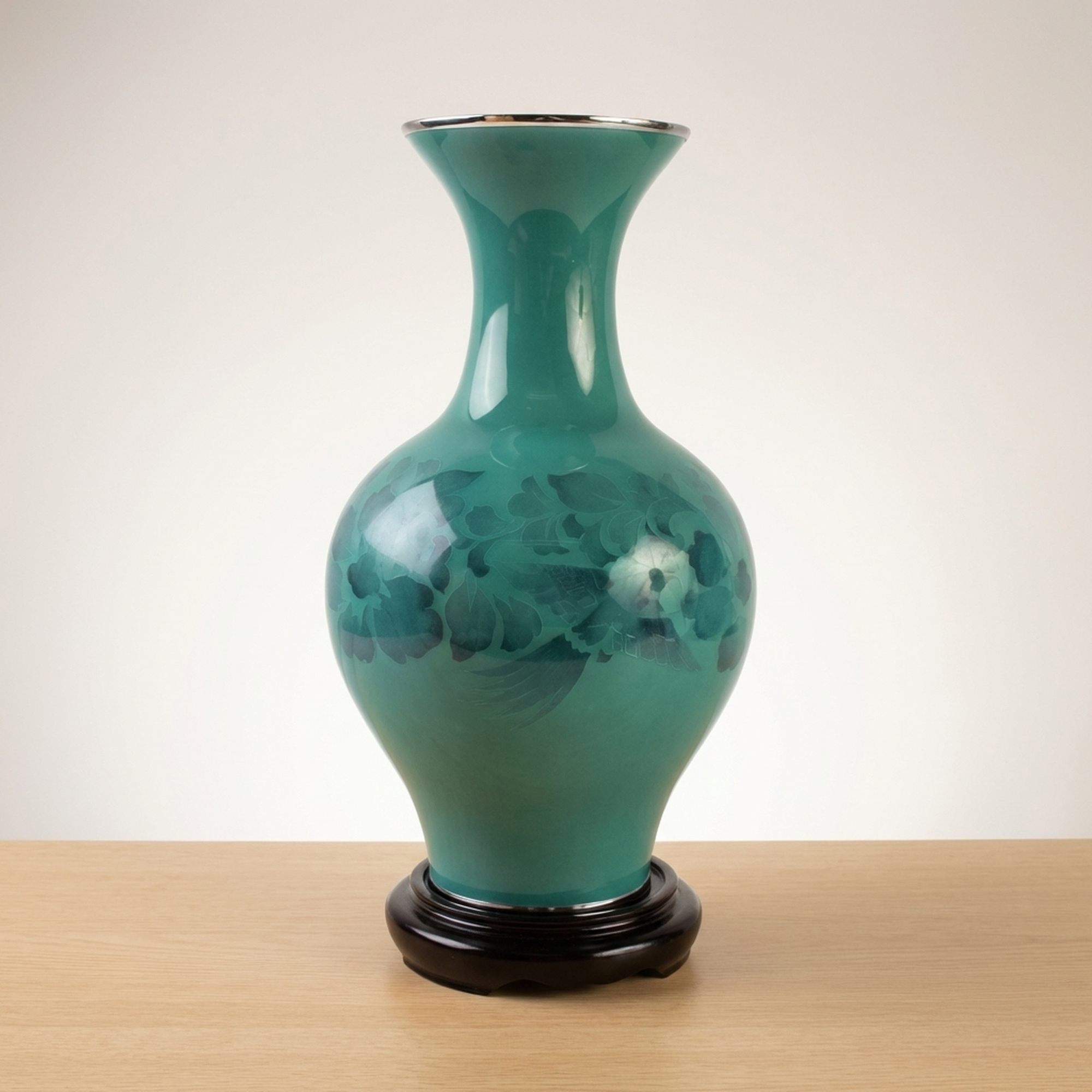 <p>STRUCTURE: Maker / Brand: Kumeno Shippo Title of Work: Cloisonné Vase with Flower and Bird Motif, Made by Kumeno Shippo, with Hardwood Stand and Original Wooden Box</p> <p>Discover this exquisite Shippo-yaki (cloisonné) vase, a example to the refined artistry of Kumeno Shippo. Its striking teal hue and subtle floral design create a serene elegance, perfectly complemented by its custom hardwood stand. This piece arrives complete with its original wooden box (tomobako), signifying its authenticity and provenance.</p> <p>Artistic & Cultural Background Shippo-yaki, or Japanese cloisonné, is a revered enamel art form with a history spanning centuries. Known for its detailed detail and vibrant glazes, it involves fusing glass enamel onto a metal base. This demanding technique results in pieces celebrated for their brilliant colors and smooth, lustrous surfaces, embodying a rich tradition of Japanese decorative arts.</p> <p>Design & Technique This vase showcases a beautiful, luminous teal enamel, applied with exceptional skill. Within the vibrant glaze, a subtle flower and bird motif (kacho-mon) emerges, rendered with an ethereal quality that suggests a sophisticated cloisonné technique where the delicate patterns seem to float beneath the surface. The careful craftsmanship is evident in the seamless finish and depth of color.</p> <p>Form & Aesthetic Qualities * <strong>Graceful Silhouette:</strong> The vase features a classic, elegant form with a gently swelling body, a slender neck, and a subtly flared rim, resting perfectly on its accompanying karakidai (hardwood stand). * <strong>Luminous Teal Enamel:</strong> The primary color is a striking teal, offering a serene yet vibrant presence, enhanced by the characteristic high-gloss finish of fine cloisonné. * <strong>Ethereal Floral Design:</strong> The detailed flower and bird motif is subtly integrated into the enamel, creating a delicate interplay of light and shadow that reveals its beauty upon closer inspection.</p> <p>Collector & Decorative Appeal * <strong>Masterful Craftsmanship:</strong> A genuine piece from Kumeno Shippo, renowned for their dedication to the art of Shippo-yaki, ensuring a work of exceptional quality and artistic integrity. * <strong>Timeless Elegance:</strong> Its classic design and striking color palette make it a versatile decorative accent, capable of enhancing both traditional and contemporary interiors. * <strong>Cultural Heritage:</strong> Owning this vase is an opportunity to possess a piece of Japan's rich artistic legacy, presented with its original tomobako, adding to its collectible value.</p> <p>This Kumeno Shippo cloisonné vase is an ideal acquisition for the knowledgeable collector seeking a piece that combines traditional Japanese artistry with enduring beauty.</p> <h3>Details</h3> <table style="border-collapse:collapse;width:100%"><tr><td style="padding:4px 12px 4px 0;font-weight:bold;white-space:nowrap">Condition</td><td style="padding:4px 0">Good</td></tr><tr><td style="padding:4px 12px 4px 0;font-weight:bold;white-space:nowrap">Material</td><td style="padding:4px 0">Wood</td></tr><tr><td style="padding:4px 12px 4px 0;font-weight:bold;white-space:nowrap">Era</td><td style="padding:4px 0">Unknown</td></tr><tr><td style="padding:4px 12px 4px 0;font-weight:bold;white-space:nowrap">Dimensions</td><td style="padding:4px 0">径11.6cm / 大きさ (本体)高さ約30.7cm 幅約16.5cm口外径11.6cm</td></tr></table>