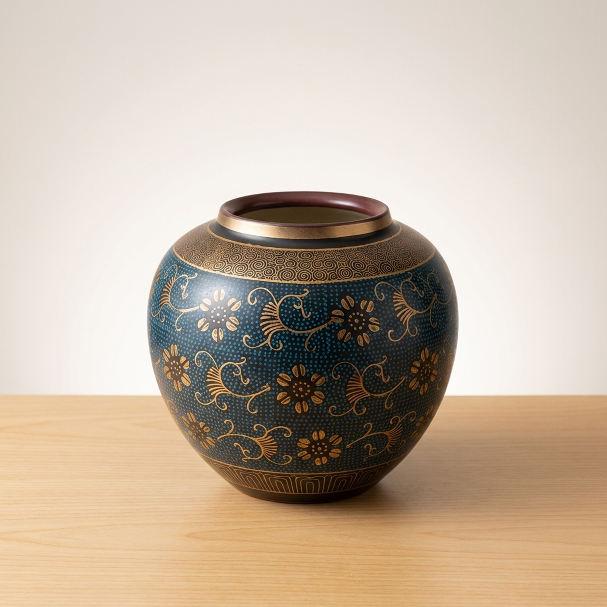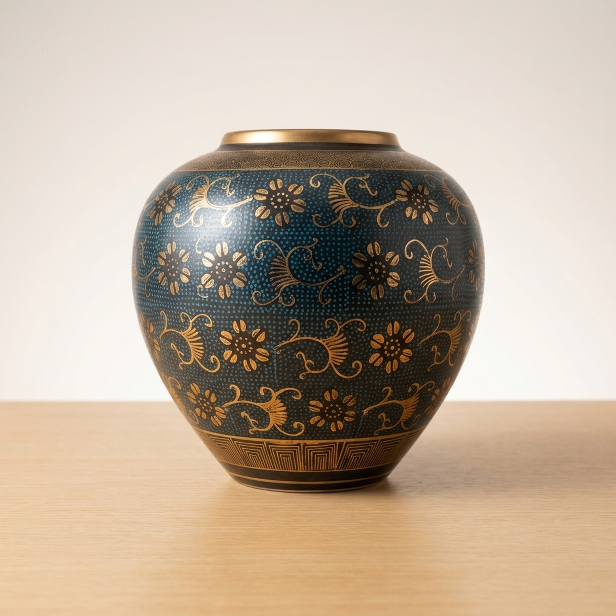 <p>Maker / Brand: Kutani Togetsu Title of Work: Kutani Ware Vase</p> <p>This exquisite Kutani ware vase, crafted by Kutani Togetsu, is a new and unused piece. Measuring approximately 18cm in height, with a mouth diameter of 7.5cm and a widest point of 16cm, it presents a substantial yet elegant presence. It features sophisticated gold decoration on a deep background, exuding a refined oriental charm without being overly flashy, a true example to the renowned craftsmanship of Kutani-yaki.</p> <p>Artistic & Cultural Background Kutani ware, or Kutani-yaki, originates from Ishikawa Prefecture and is celebrated for its distinctive overglaze enamels and bold, detailed designs. Historically, it has been prized for its artistic beauty and careful detailing, often incorporating motifs inspired by nature, classical Japanese aesthetics, and sometimes drawing influence from continental Asian art, contributing to its "oriental atmosphere."</p> <p>Design & Technique The vase showcases the kin-sai technique, where lustrous gold is carefully applied over the glazed surface. The design features detailed swirling patterns around the neck and shoulder, transitioning into delicate floral motifs adorned with fine gold dots across the body. The deep, rich background provides a striking contrast to the shimmering gold, creating a harmonious and striking visual effect.</p> <p>Form & Aesthetic Qualities * <strong>Shape:</strong> A gracefully rounded, globular body tapers gently towards a slightly flared mouth, creating a harmonious and stable silhouette. * <strong>Texture:</strong> A smooth, polished surface is enhanced by the subtle tactile quality of the raised gold enamel, inviting closer inspection and admiration. * <strong>Visual Appeal:</strong> Its rich color palette and detailed goldwork create striking visual depth, offering an elegant and sophisticated "oriental atmosphere" that is both striking and understated.</p> <p>Collector & Decorative Appeal * <strong>Authentic Craftsmanship:</strong> A genuine piece of Kutani ware from Kutani Togetsu, reflecting centuries of ceramic tradition and artistic skill in its careful execution. * <strong>Refined Decoration:</strong> The tasteful gold embellishment provides a luxurious touch, making it a distinguished decorative accent for any interior, from traditional to contemporary. * <strong>Pristine Condition:</strong> Offered in new, unused condition, complete with its original box (please note the box shows some dirt from storage).</p> <p>This piece is ideal for collectors seeking a refined example of Japanese ceramic art or for those wishing to add a touch of timeless elegance to their home.</p> <h3>Details</h3> <table style="border-collapse:collapse;width:100%"><tr><td style="padding:4px 12px 4px 0;font-weight:bold;white-space:nowrap">Condition</td><td style="padding:4px 0">Excellent</td></tr><tr><td style="padding:4px 12px 4px 0;font-weight:bold;white-space:nowrap">Origin</td><td style="padding:4px 0">Kutani, Ishikawa</td></tr><tr><td style="padding:4px 12px 4px 0;font-weight:bold;white-space:nowrap">Material</td><td style="padding:4px 0">Porcelain</td></tr><tr><td style="padding:4px 12px 4px 0;font-weight:bold;white-space:nowrap">Era</td><td style="padding:4px 0">Unknown</td></tr><tr><td style="padding:4px 12px 4px 0;font-weight:bold;white-space:nowrap">Dimensions</td><td style="padding:4px 0">高さ18cm / 幅16cm / 直径7.5cm / サイズ(私のメジャー測定なのでおおよそです。)</td></tr></table>