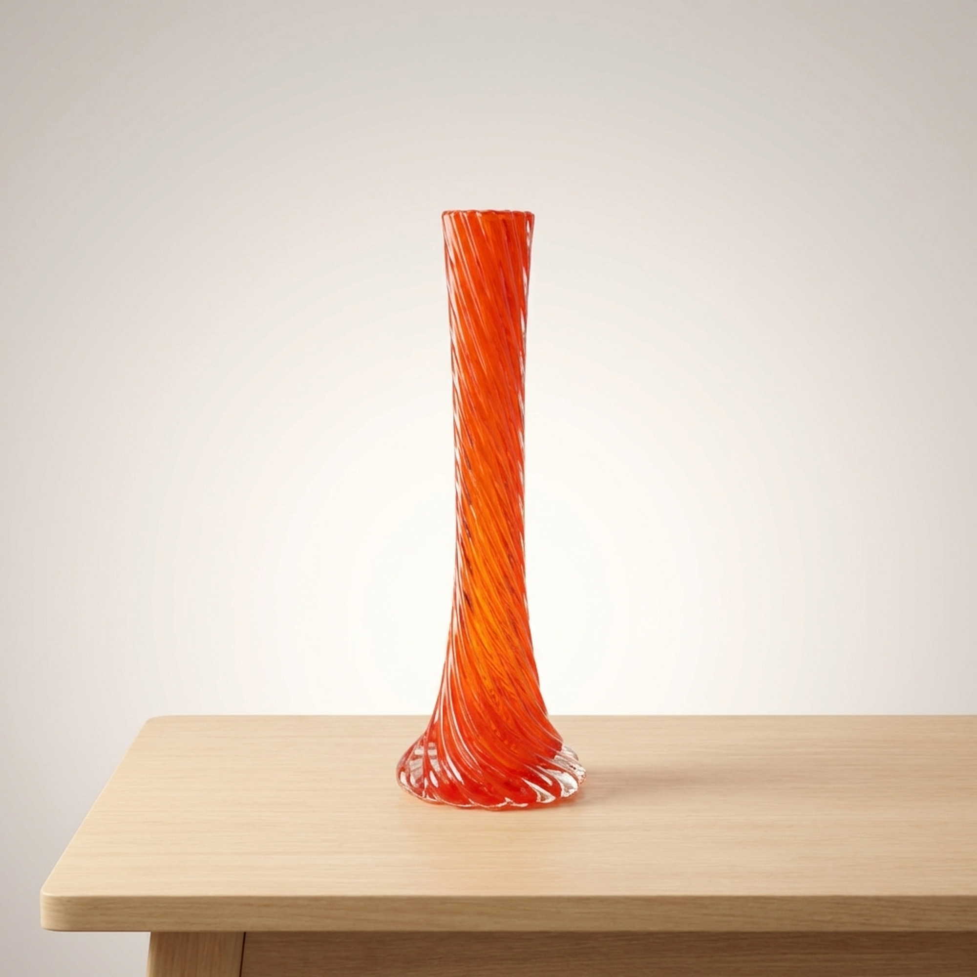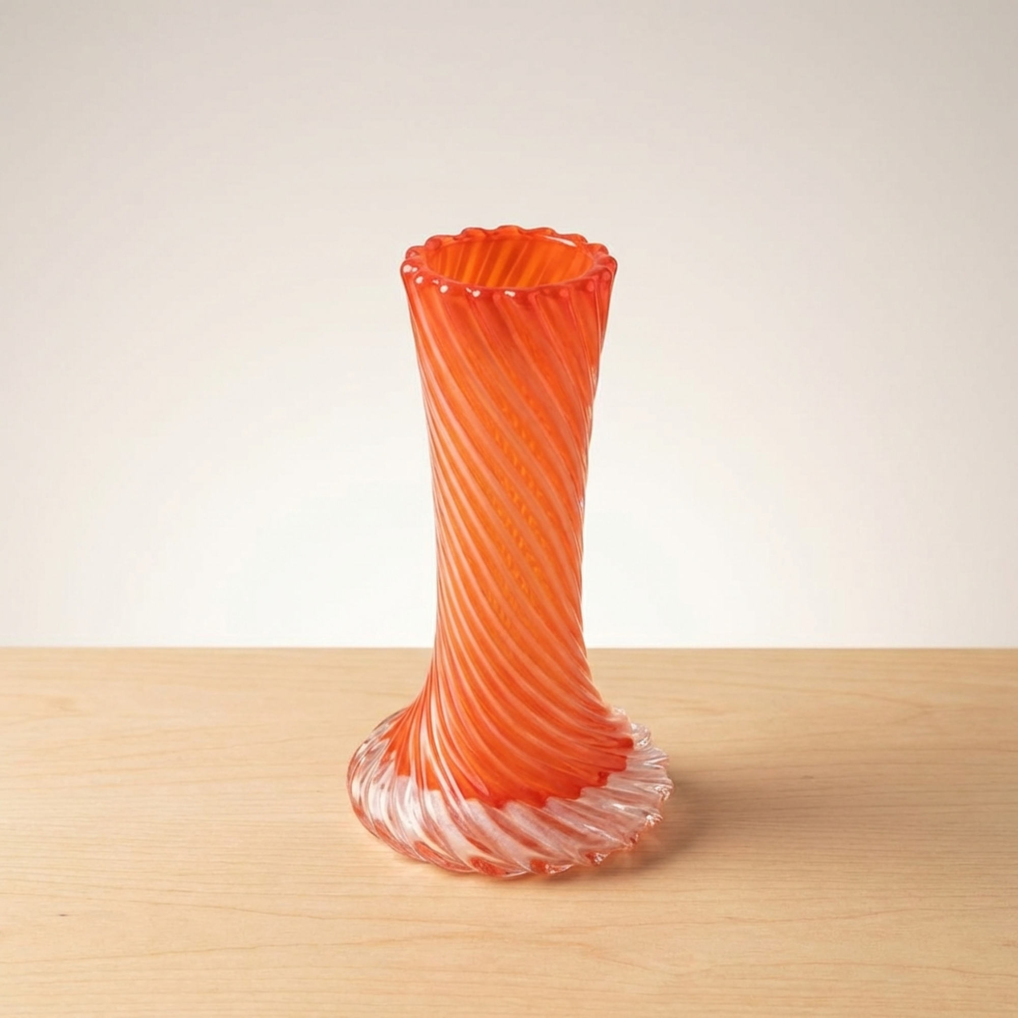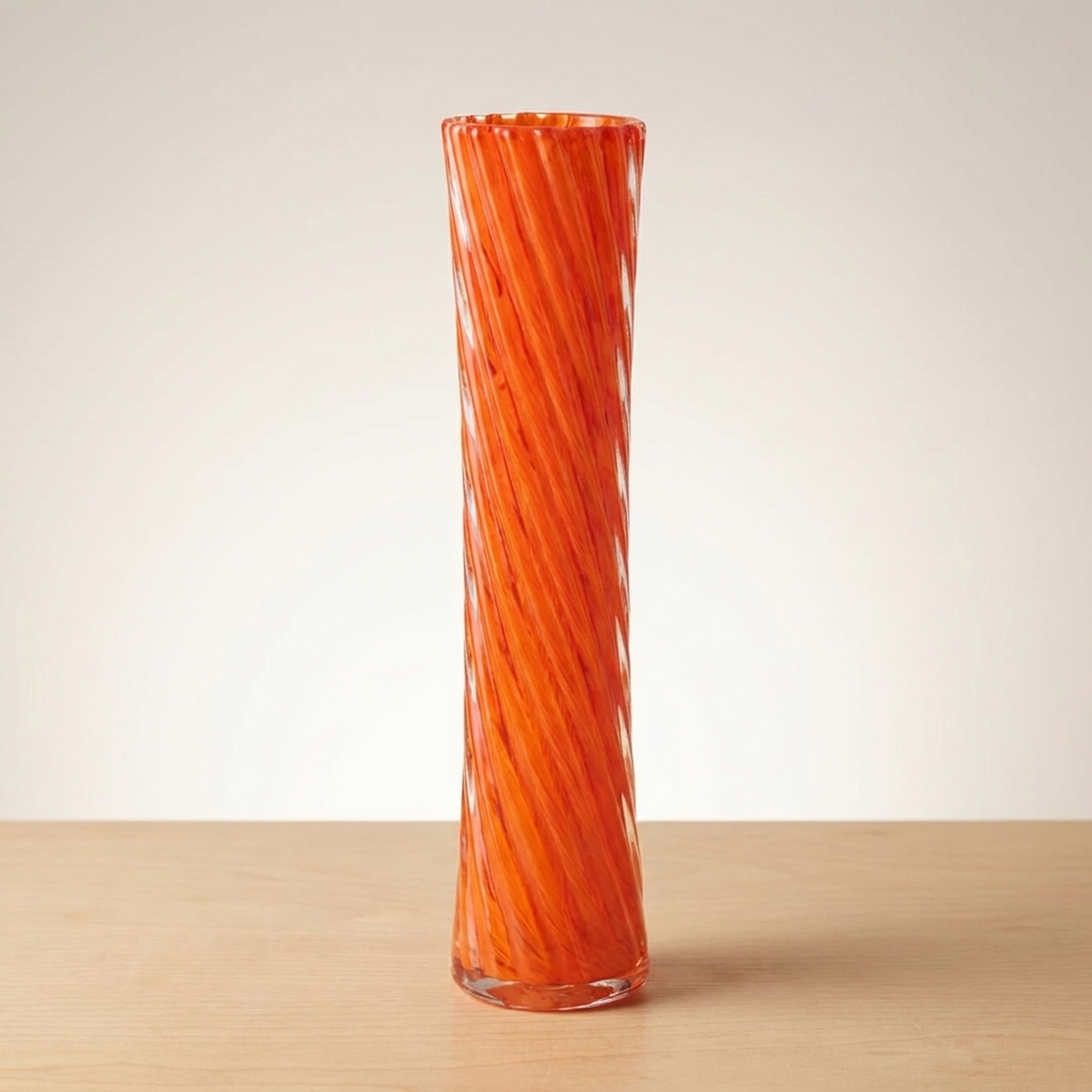 Orange Twisted Murano-Style Glass Flower Vase for Single Bud Display, Imperfect