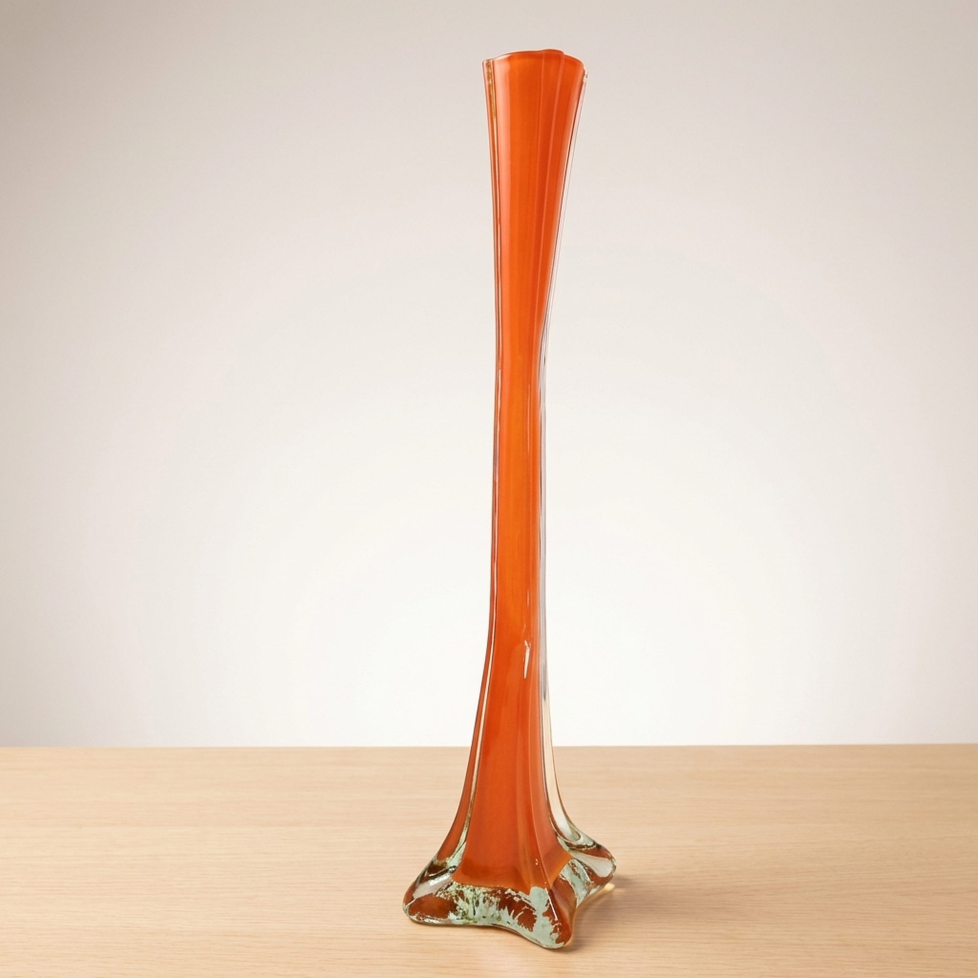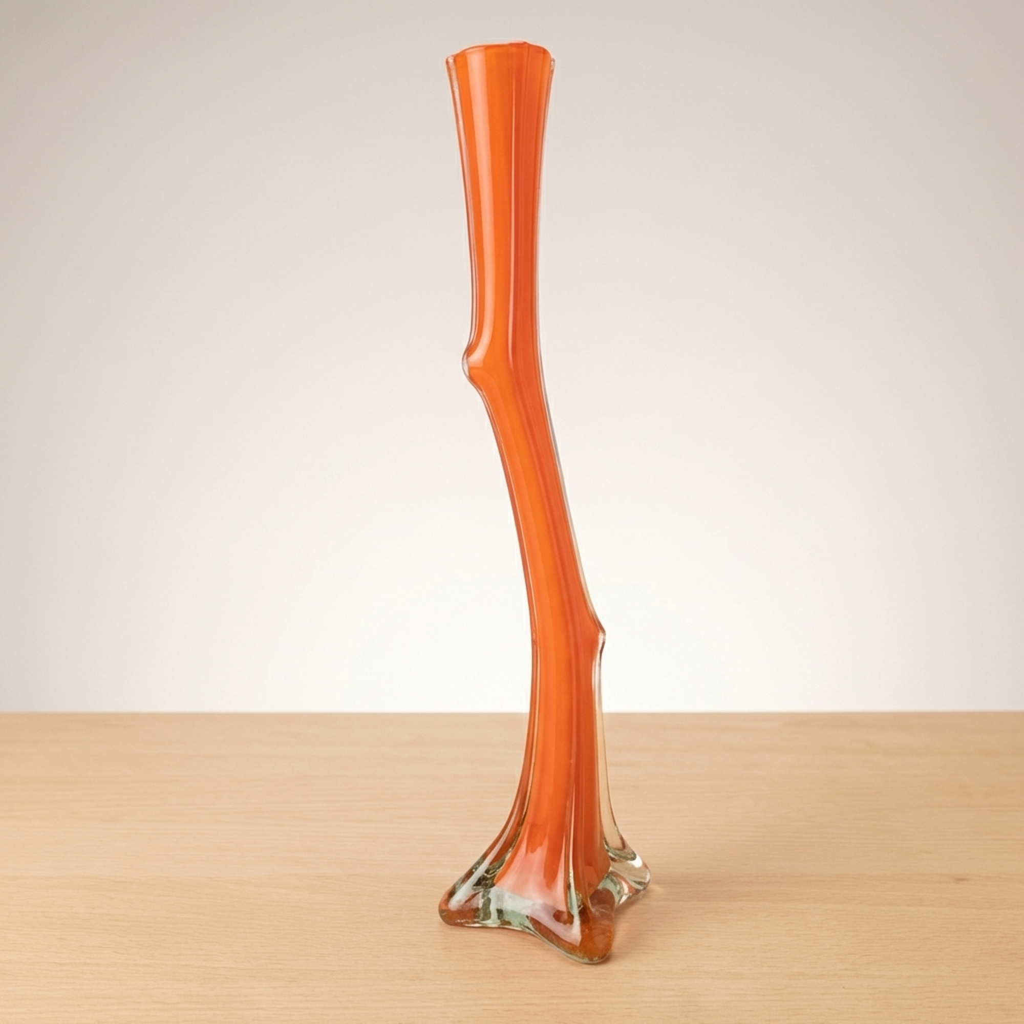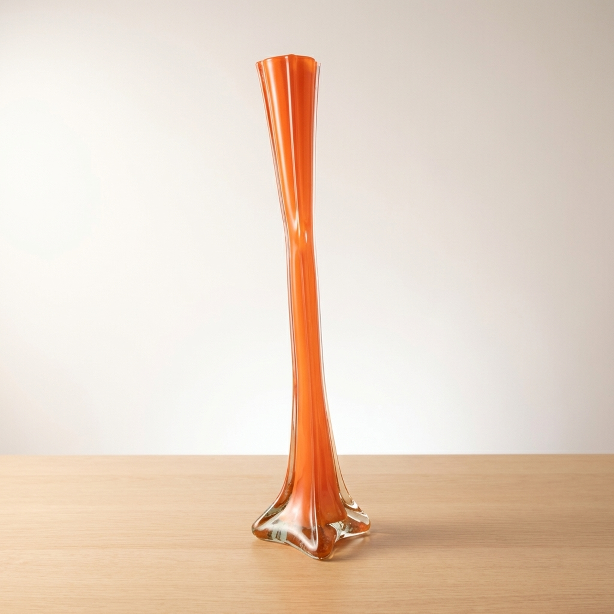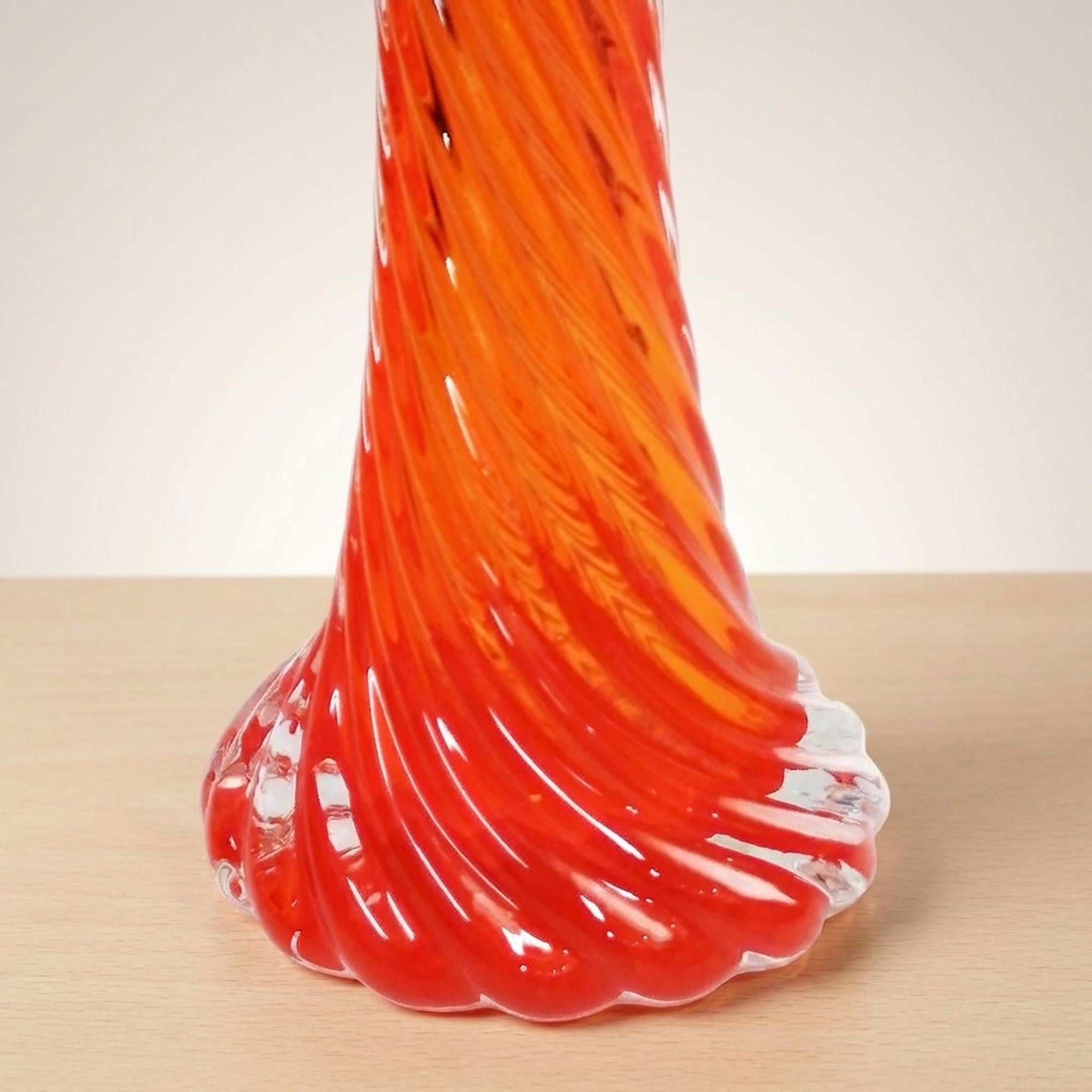 Orange Twisted Murano-Style Glass Flower Vase for Single Bud Display, Imperfect
