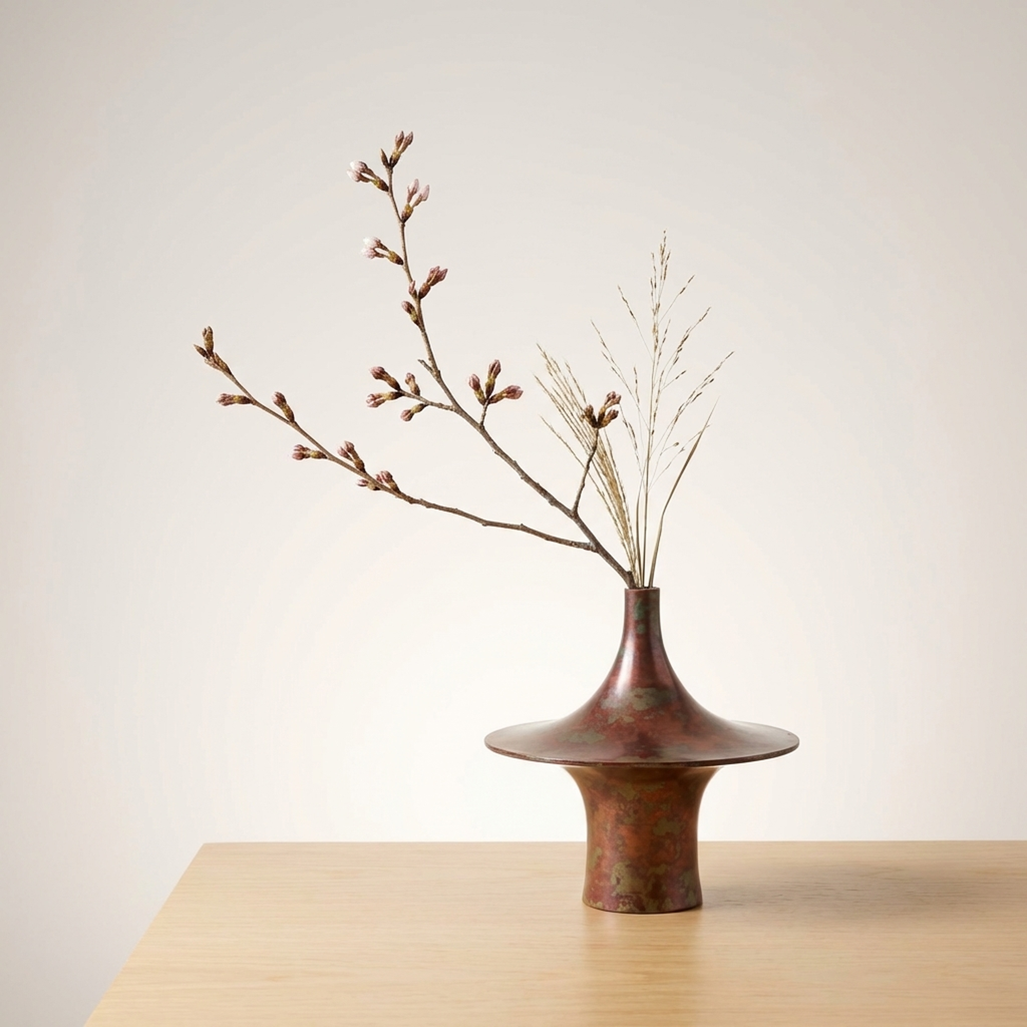 Shōwadō Cast Bronze Single-Stem Flower Vase with Original Wooden Box