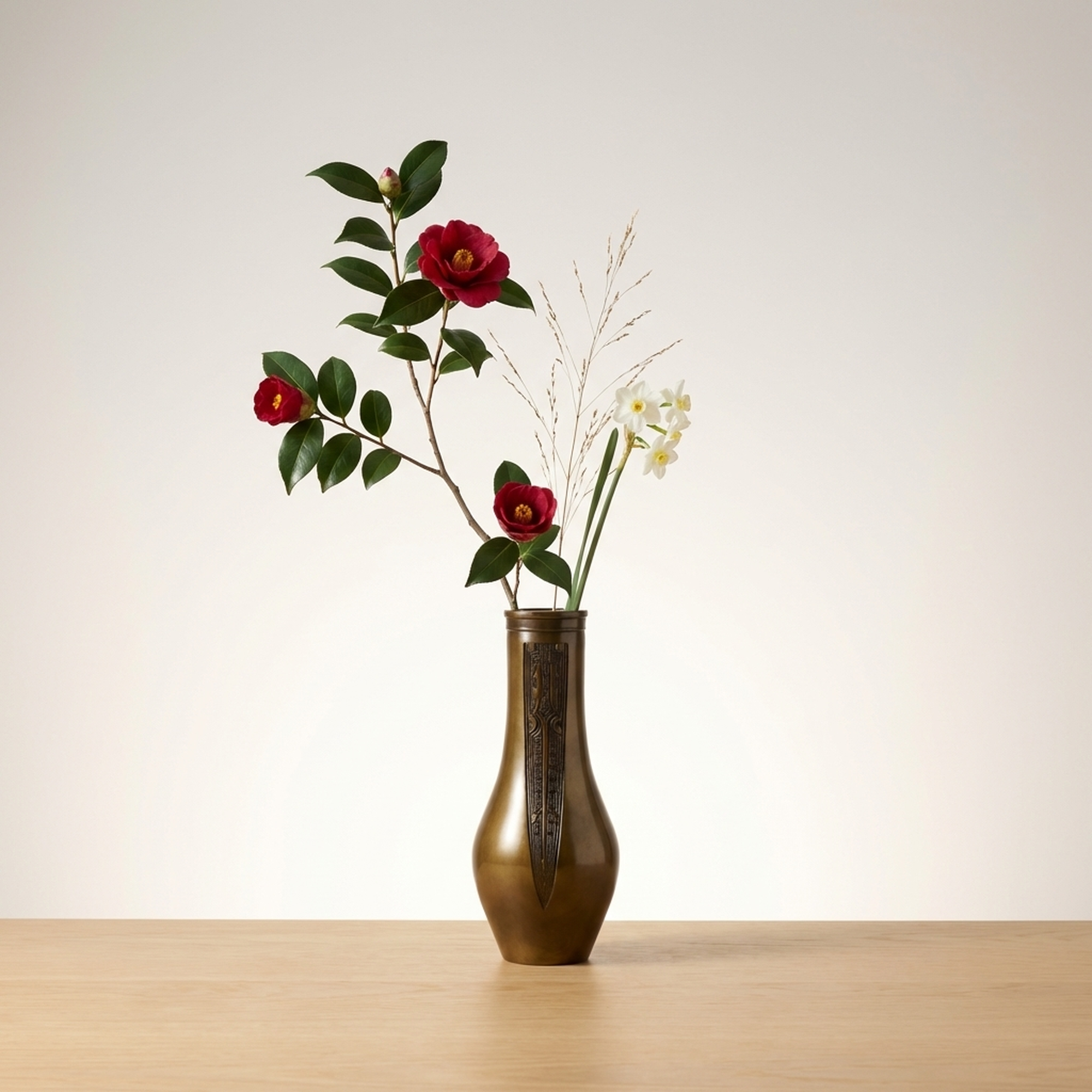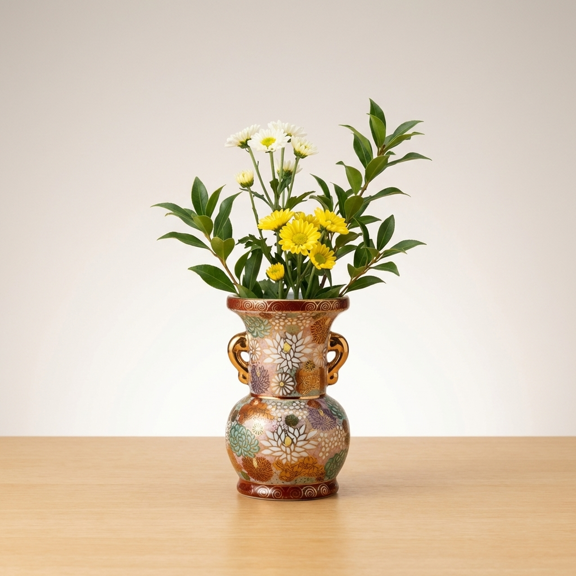 Kutani-yaki Porcelain Flower Vase for Buddhist Altar with Gold-Filled Floral Design