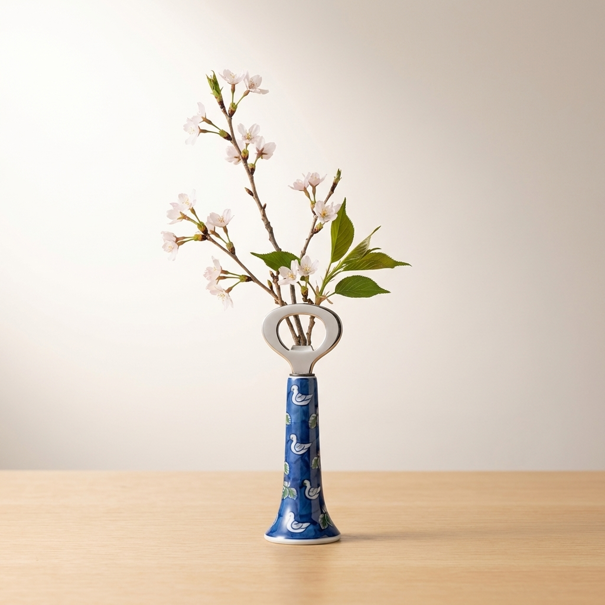 Tatebayashi Gen-emon Imari Porcelain Bottle Opener with Sometsuke Kinrande Waterfowl Design