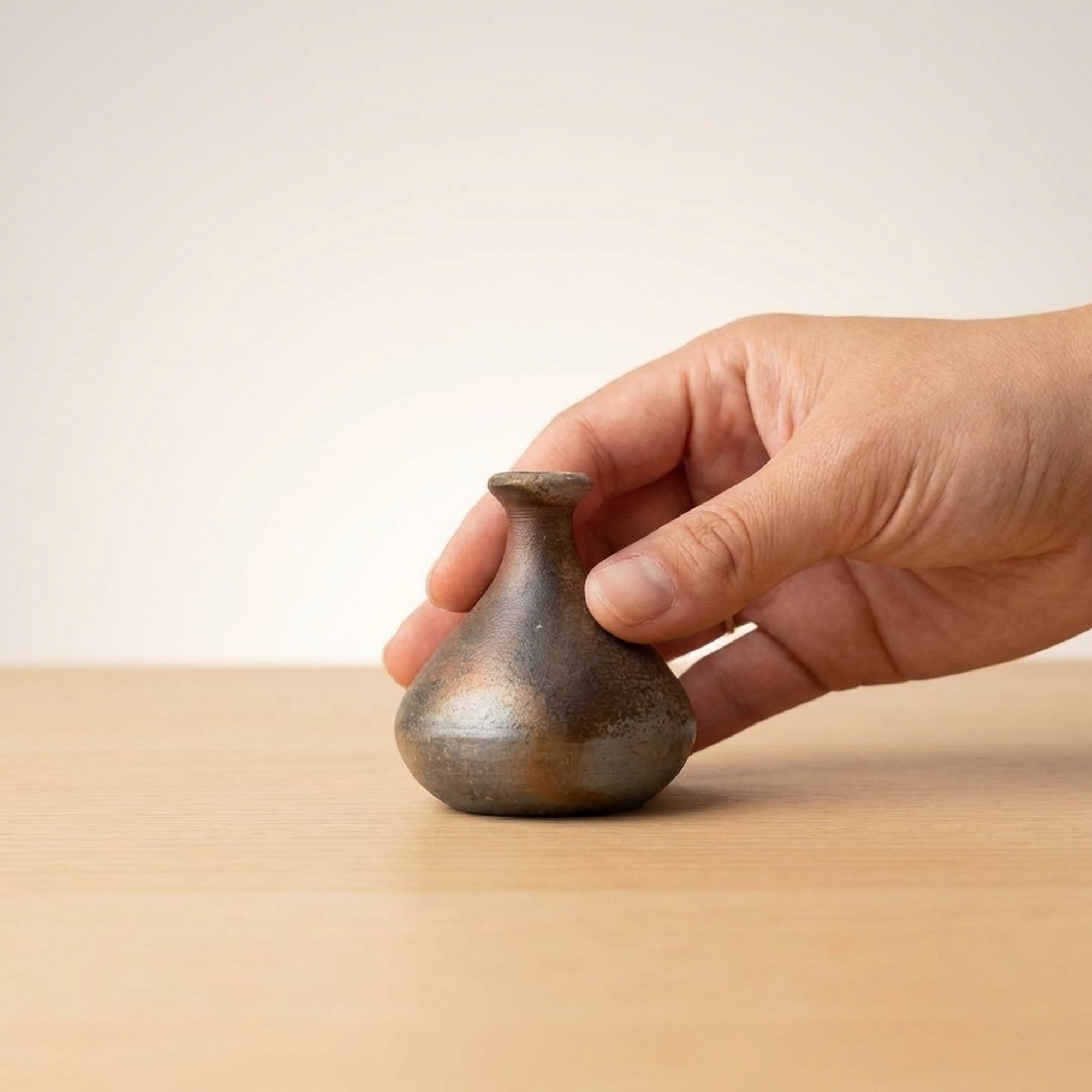 Bizen Ware Miniature Bud Vase - Okayama Traditional Japanese Pottery Flower Vessel