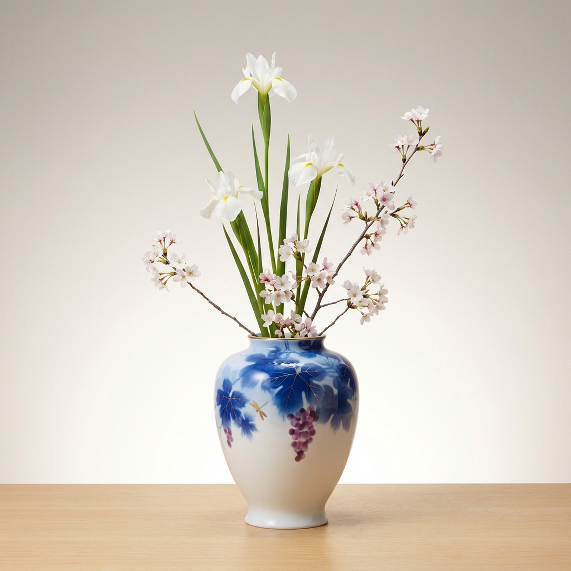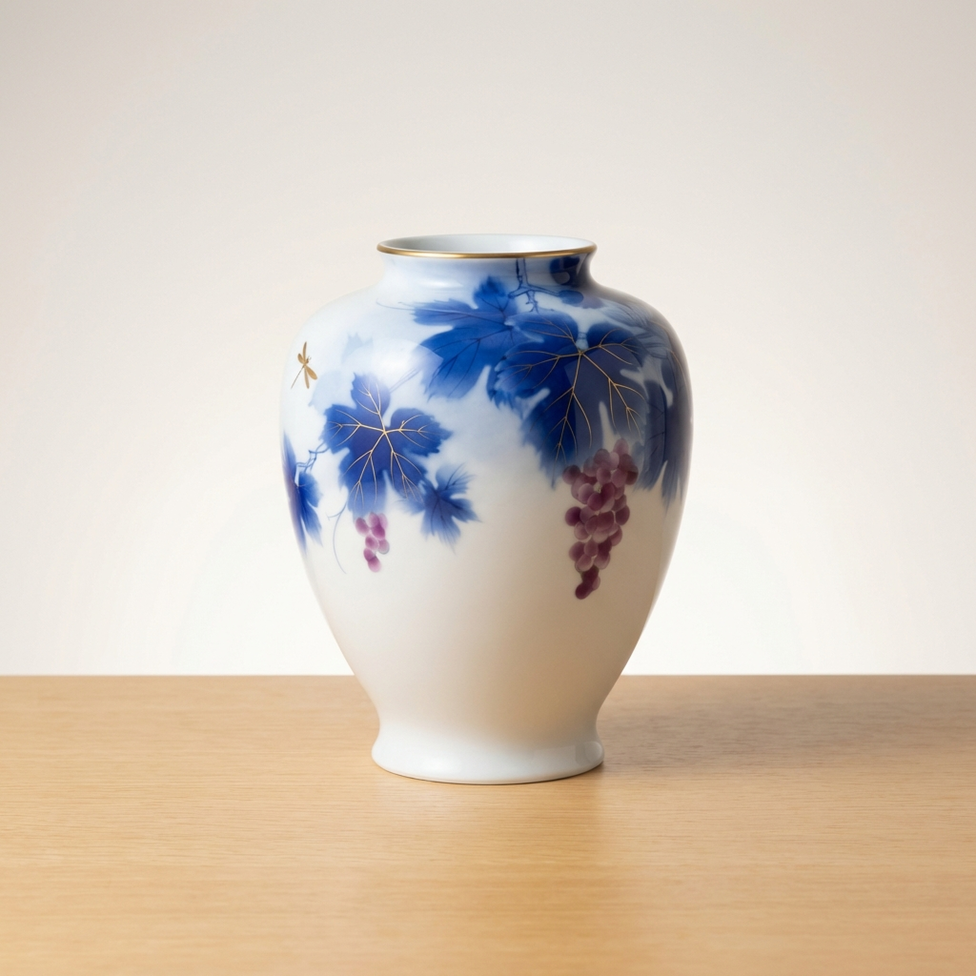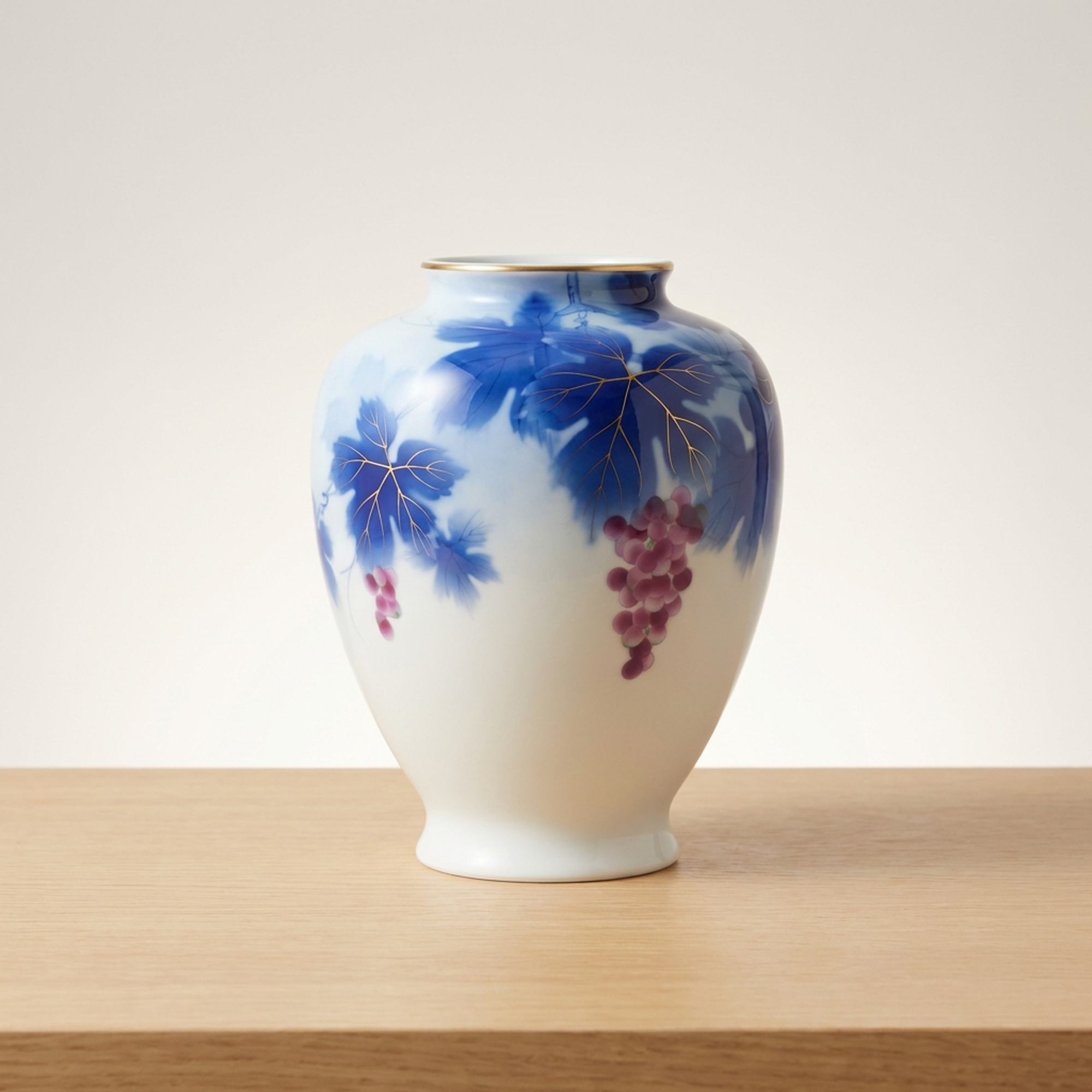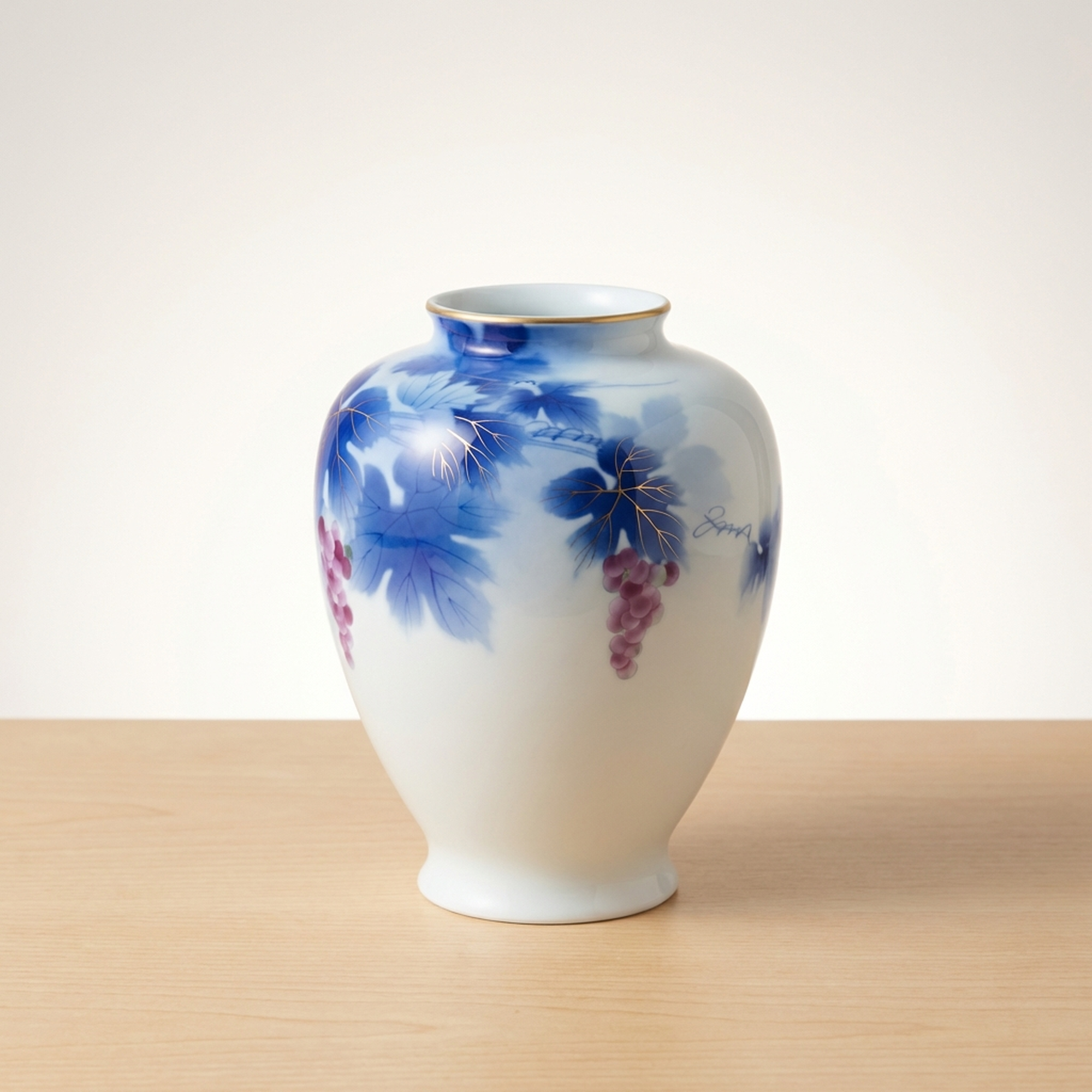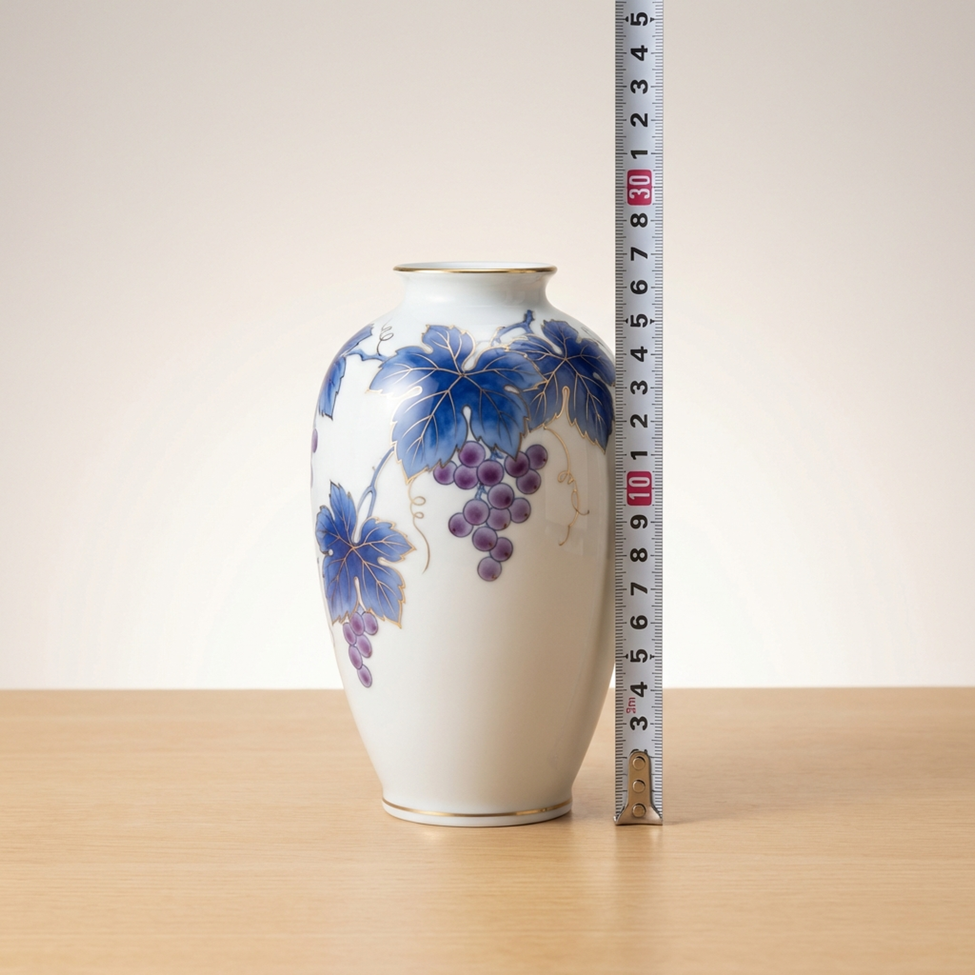 Fukagawa Seiji Porcelain Vase with Grape Motif – Imperial Household Purveyor, 24.5cm