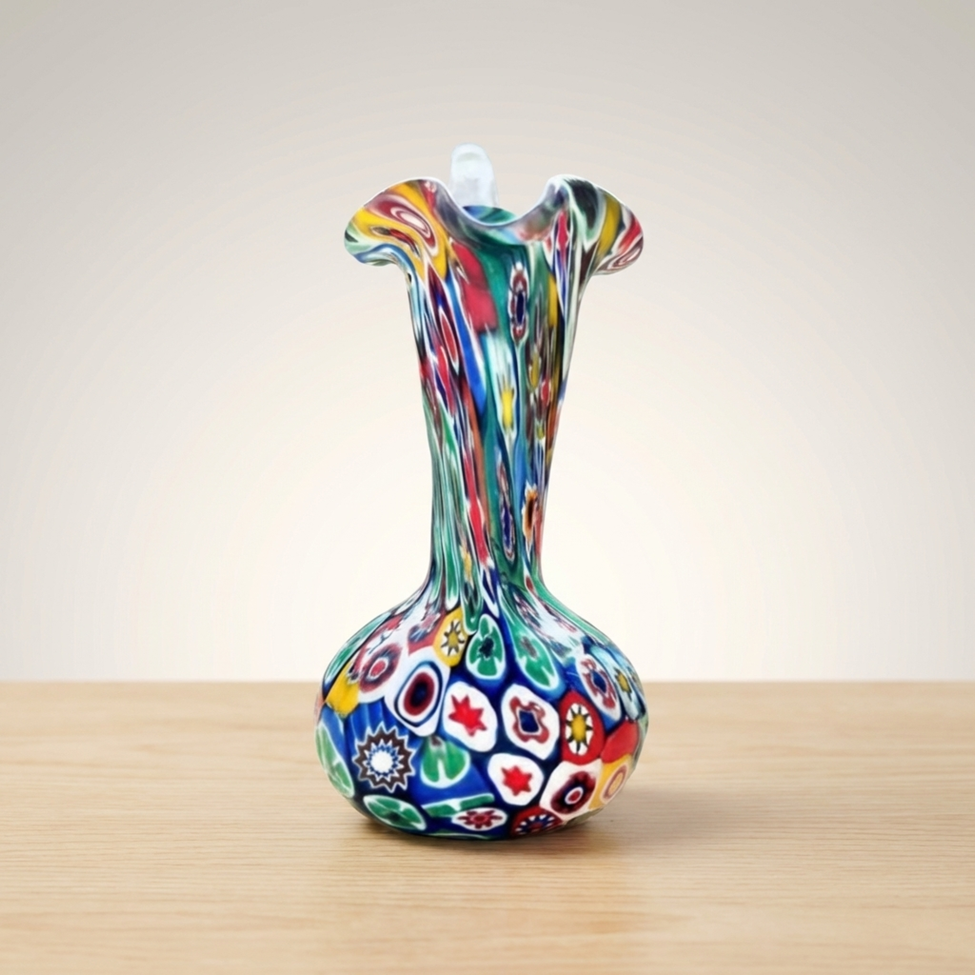 Handcrafted Murano Venetian Millefiori Mixed Glass Decorative Art Vessel