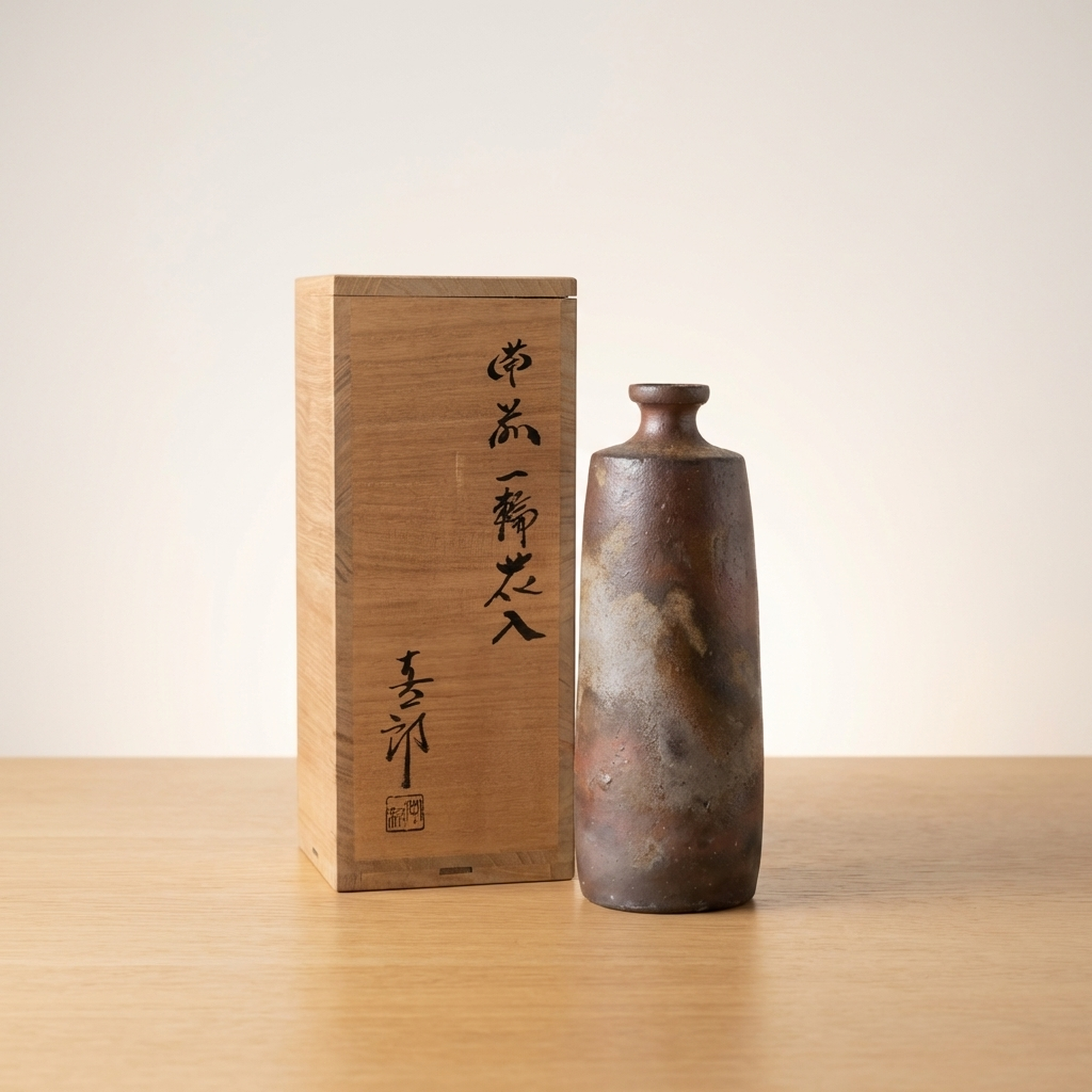 <p>Maker / Brand: Nakamura Shinichiro Title of Work: Bizen Ichirin Hanaire by Nakamura Shinichiro</p> <p>This exquisite Bizen ware single-flower vase, crafted by the esteemed artist Nakamura Shinichiro, embodies the rustic elegance and profound beauty of traditional Japanese ceramics. Standing approximately 20cm tall, this hanaire is in excellent condition with no chips or cracks, a example to the enduring appeal of Bizen-yaki, offering a unique blend of natural artistry and refined simplicity.</p> <p>Artistic & Cultural Background Bizen ware, or Bizen-yaki, is one of Japan's oldest and most revered ceramic traditions, from Okayama Prefecture. Known for its distinctive unglazed, earthy appearance, Bizen ceramics are fired at extremely high temperatures over many days, allowing the natural clay and kiln environment to create unique patterns and textures. This process results in a profound wabi-sabi aesthetic, celebrating imperfection and natural beauty.</p> <p>Design & Technique The beauty of this vase lies in its inherent Bizen character, achieved through a careful, unglazed firing process. The clay's natural iron content reacts with the intense heat and ash within the kiln, producing a rich palette of reddish-browns, subtle grays, and darker scorch marks. These organic patterns, often referred to as yohen or "kiln changes," are entirely unique to each piece, making this hanaire a singular work of art shaped by fire and earth.</p> <p>Form & Aesthetic Qualities * <strong>Elegant Form:</strong> A gracefully proportioned cylindrical body tapers gently to a slender neck and a subtly flared mouth, designed to perfectly cradle a single bloom. * <strong>Tactile Surface:</strong> The unglazed surface offers a wonderfully earthy and natural texture, inviting touch and revealing the raw beauty of the clay. * <strong>Dynamic Patina:</strong> The natural firing effects create a striking visual journey across the vase, with spontaneous variations in color and texture that evolve with the light.</p> <p>Collector & Decorative Appeal * <strong>Authentic Craftsmanship:</strong> A genuine piece of Bizen-yaki by a recognized artist, complete with its original wooden box (kyobako), signifying its authenticity. * <strong>Minimalist Charm:</strong> Its understated elegance makes it a versatile decorative piece, perfect for showcasing a single flower or standing alone as a sculptural object. * <strong>Enduring Legacy:</strong> Owning Bizen ware connects you to centuries of Japanese ceramic tradition, offering a timeless aesthetic that appreciates natural beauty.</p> <p>This Bizen Ichirin Hanaire is an ideal acquisition for collectors and enthusiasts who appreciate the profound artistry and natural beauty of Japanese traditional crafts.</p> <h3>Details</h3> <table style="border-collapse:collapse;width:100%"><tr><td style="padding:4px 12px 4px 0;font-weight:bold;white-space:nowrap">Condition</td><td style="padding:4px 0">Good</td></tr><tr><td style="padding:4px 12px 4px 0;font-weight:bold;white-space:nowrap">Origin</td><td style="padding:4px 0">Bizen, Okayama</td></tr><tr><td style="padding:4px 12px 4px 0;font-weight:bold;white-space:nowrap">Material</td><td style="padding:4px 0">Stoneware</td></tr><tr><td style="padding:4px 12px 4px 0;font-weight:bold;white-space:nowrap">Era</td><td style="padding:4px 0">Unknown</td></tr></table>
