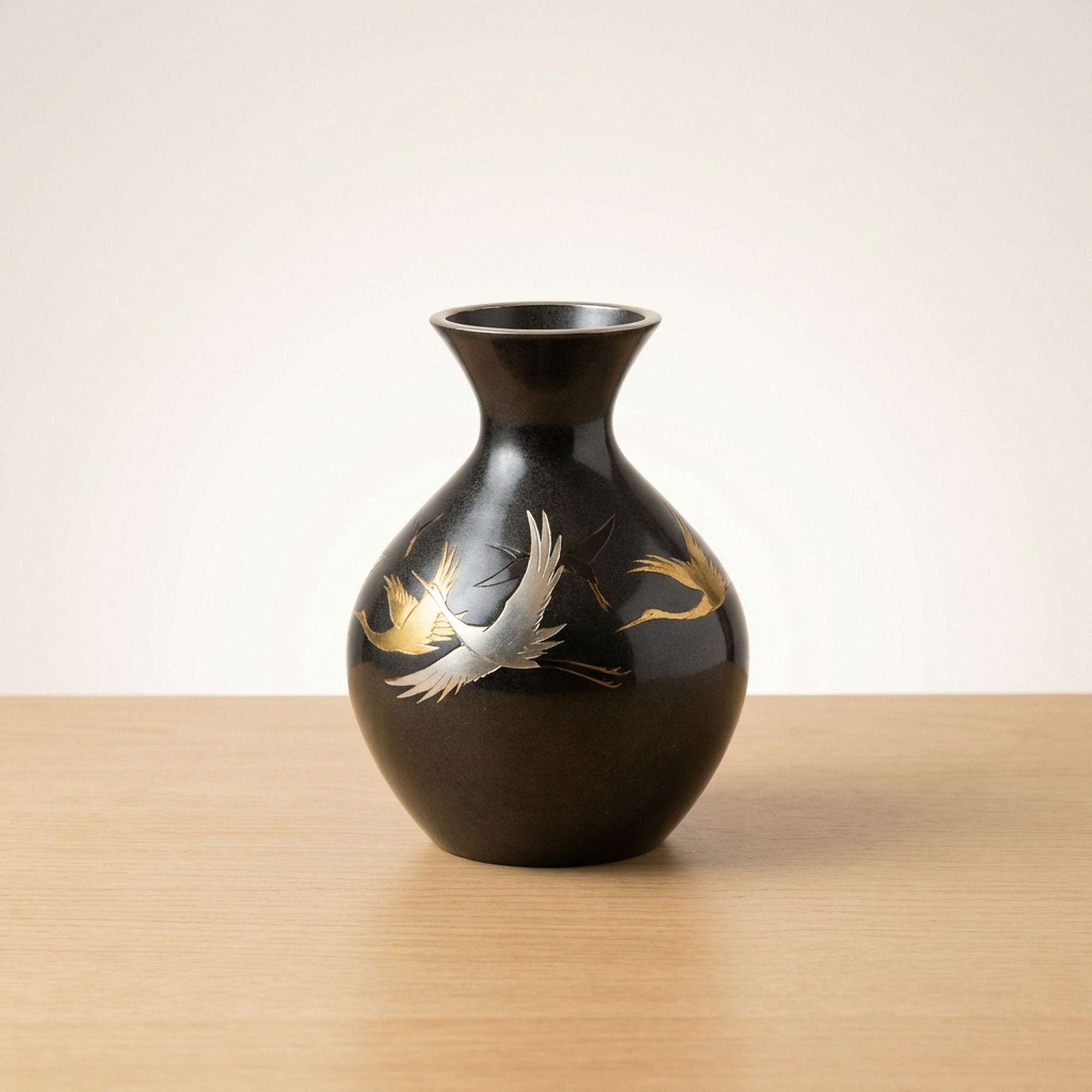 Takaoka Copperware Vase: Traditional Japanese Craft with Gold & Silver Cranes