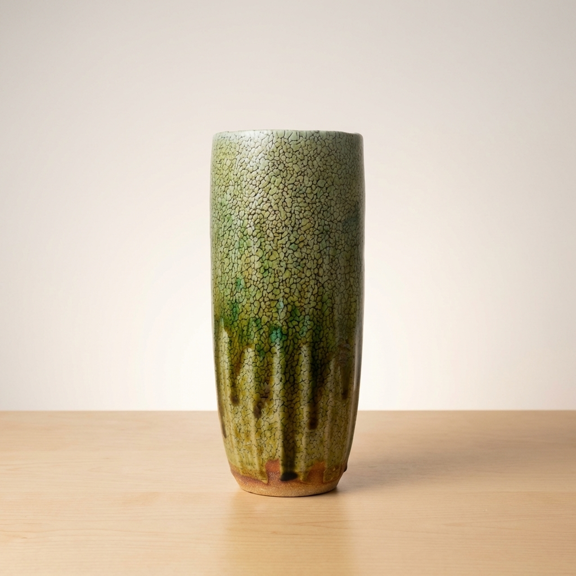 Ando Hyoriyuki Kairagi 'Shark Skin' Glaze Ceramic Ikebana Vase, New with Tomobako