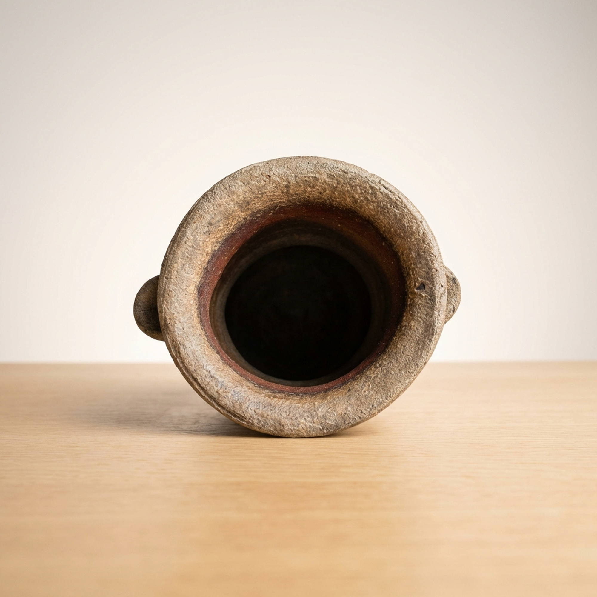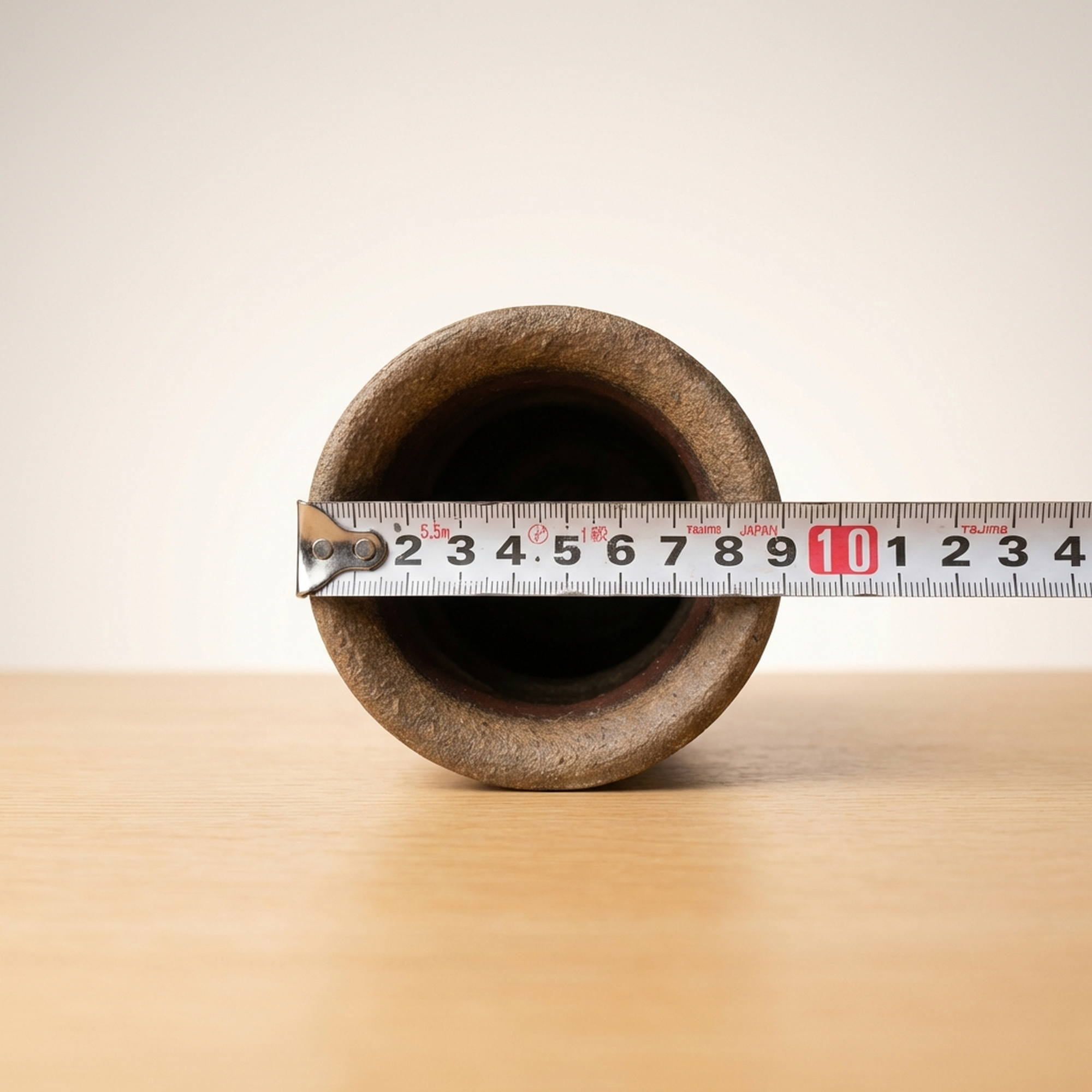 <p>Maker / Brand: Isezaki Mitsuru Title of Work: Bizen-yaki Mimi-tsuki Hanaire by Isezaki Mitsuru, Decorative Jar, Flower Vessel</p> <p>This exquisite Bizen-yaki mimi-tsuki hanaire, or flower vessel with "ears," is a masterful creation by Isezaki Mitsuru, a revered holder of Okayama Prefecture Important Intangible Cultural Property. Embodying a profound sense of dignity, this piece showcases the artist's dedication to traditional firing methods, particularly his use of restored medieval kilns. His distinctive style, known for its rustic charm and elegance, is beautifully captured.</p> <p>Artistic & Cultural Background Bizen-yaki, one of Japan's oldest ceramic traditions from Okayama Prefecture, is renowned for its unglazed, high-fired stoneware. Characterized by natural "kiln effects" from intense heat and ash within the anagama kiln, these organic patterns reflect the Japanese aesthetic of wabi-sabi. Isezaki Mitsuru is a pivotal figure in preserving this ancient craft, carefully reviving medieval firing techniques for authentic results.</p> <p>Design & Technique The vessel's surface is a example to the raw beauty of Bizen clay, displaying characteristic strong reddish scarlet hues (hiiro) unique to the ware. Natural ash deposits (haikaburi) create subtle, organic patterns, while the rough texture lends a powerful, earthy expression. A striking feature is the bold application of "herame" – spatula marks – around the body, adding dynamic movement and visual interest. The "mimi" (ears or handles) on the upper section provide a distinctive silhouette, enhancing the vessel's commanding presence.</p> <p>Form & Aesthetic Qualities * <strong>Dynamic Form:</strong> The robust body, accented by the sculpted "mimi" and expressive "herame," ensures a striking presence from every angle. * <strong>Earthy Texture:</strong> The unglazed surface reveals the raw beauty of the clay, with its tactile roughness and the interplay of vibrant scarlet and subtle ash effects. * <strong>Rustic Elegance:</strong> A harmonious blend of primitive strength and refined artistry, this piece exemplifies Isezaki Mitsuru's signature style, offering a sophisticated yet grounded aesthetic.</p> <p>Collector & Decorative Appeal * <strong>Master Craftsmanship:</strong> Acquire a piece by Isezaki Mitsuru, a recognized master and guardian of Japan's ceramic heritage, ensuring exceptional quality and artistic integrity. * <strong>Authentic Bizen:</strong> This vessel represents the pinnacle of traditional Bizen-yaki, fired in restored ancient kilns to achieve the profound, natural kiln effects cherished by connoisseurs. * <strong>Versatile Display:</strong> Perfect as a standalone decorative art object or as a striking flower vessel, it will bring timeless Japanese beauty and artistic depth to any interior.</p> <p>This Bizen-yaki hanaire is an ideal acquisition for collectors and decorators who appreciate the profound beauty of traditional Japanese ceramics and the enduring legacy of master artisans.</p> <p>Condition: No noticeable scratches, chips, or cracks. Please excuse slight scuffs due to age. Detailed condition can be confirmed in the images.</p> <p>Dimensions: Height: Approximately 24.5 cm Body Diameter: Approximately 13 cm Mouth Diameter: Approximately 9 cm</p> <p>Accessories: None (main body only). Please note that an original wooden box (tomobako) is not included.</p> <h3>Details</h3> <table style="border-collapse:collapse;width:100%"><tr><td style="padding:4px 12px 4px 0;font-weight:bold;white-space:nowrap">Condition</td><td style="padding:4px 0">Good</td></tr><tr><td style="padding:4px 12px 4px 0;font-weight:bold;white-space:nowrap">Origin</td><td style="padding:4px 0">Bizen, Okayama</td></tr><tr><td style="padding:4px 12px 4px 0;font-weight:bold;white-space:nowrap">Material</td><td style="padding:4px 0">Stoneware</td></tr><tr><td style="padding:4px 12px 4px 0;font-weight:bold;white-space:nowrap">Era</td><td style="padding:4px 0">Unknown</td></tr><tr><td style="padding:4px 12px 4px 0;font-weight:bold;white-space:nowrap">Dimensions</td><td style="padding:4px 0">サイズ】(※お手元の実測値を入力してください)</td></tr></table>