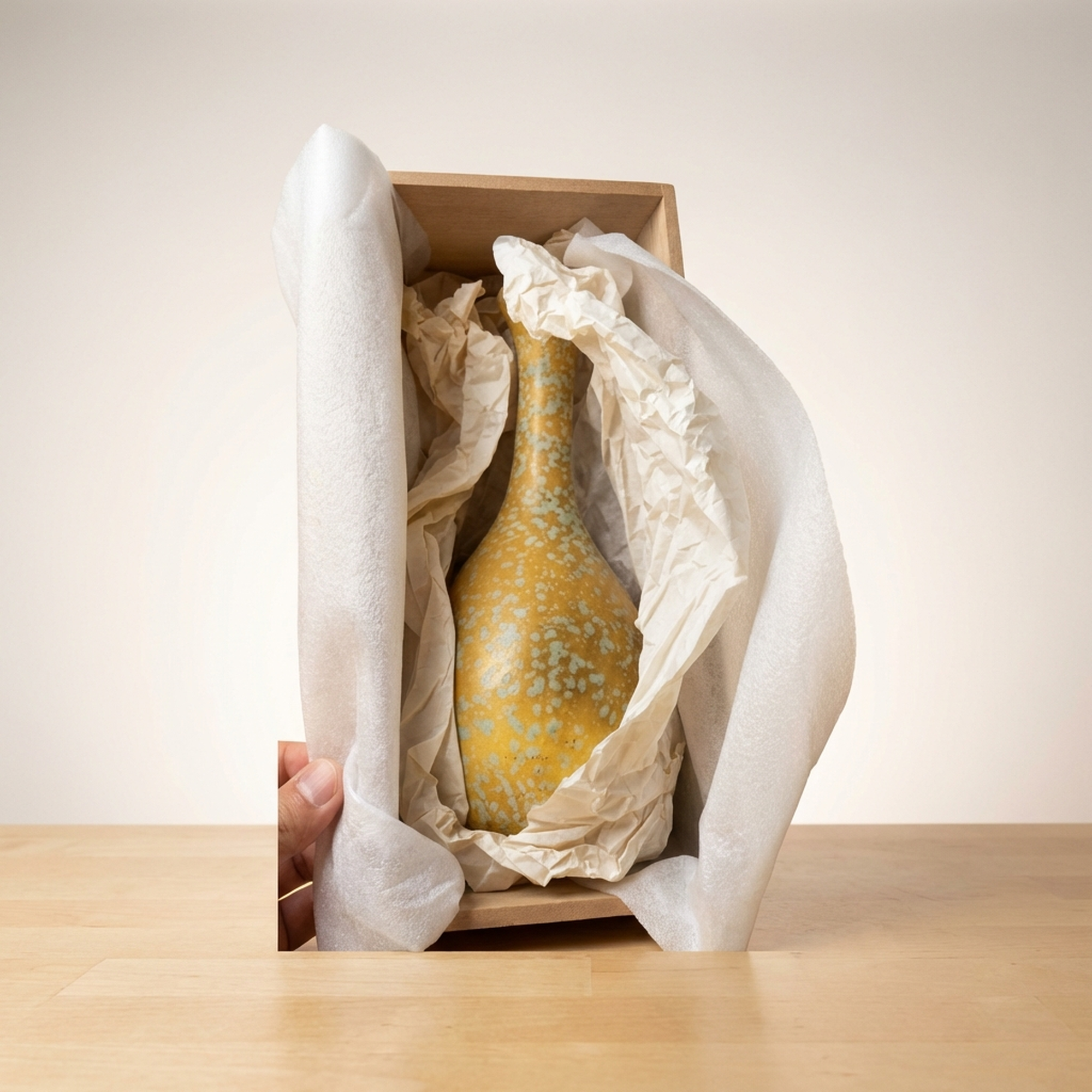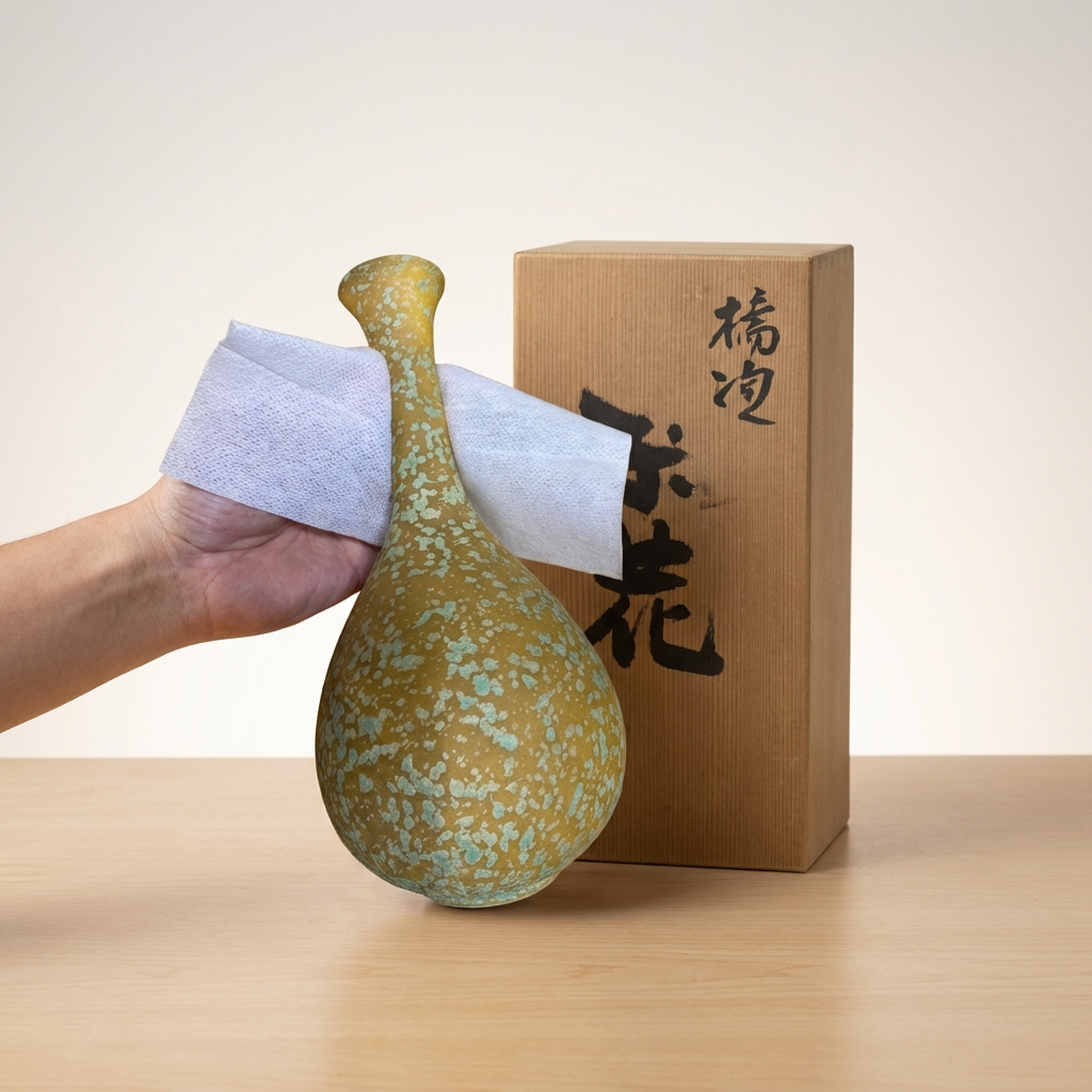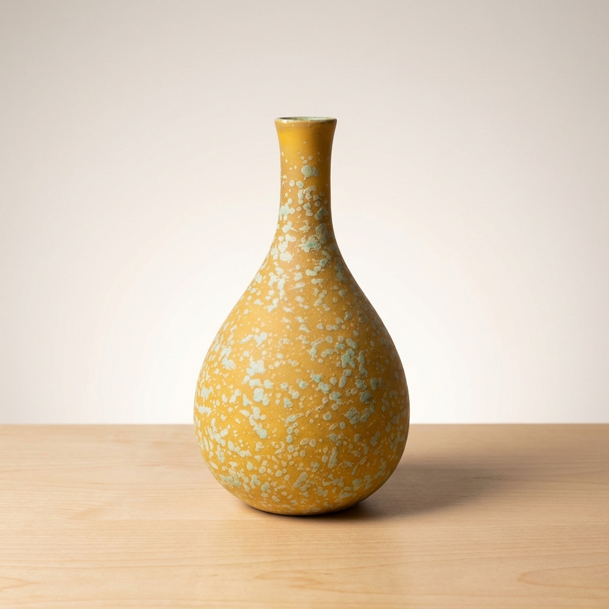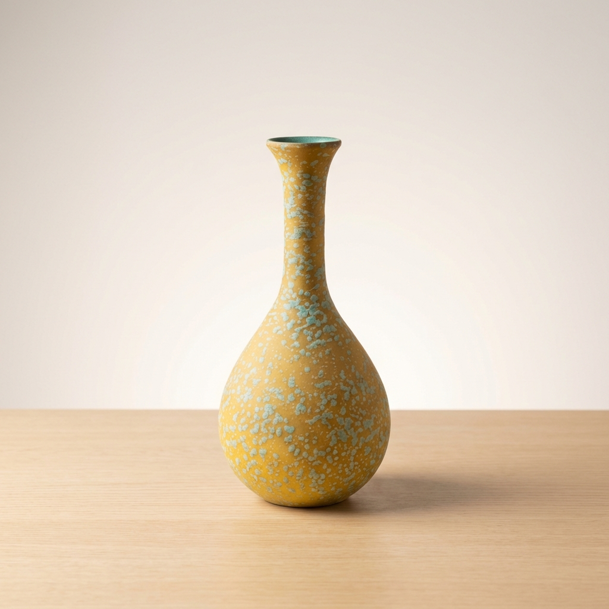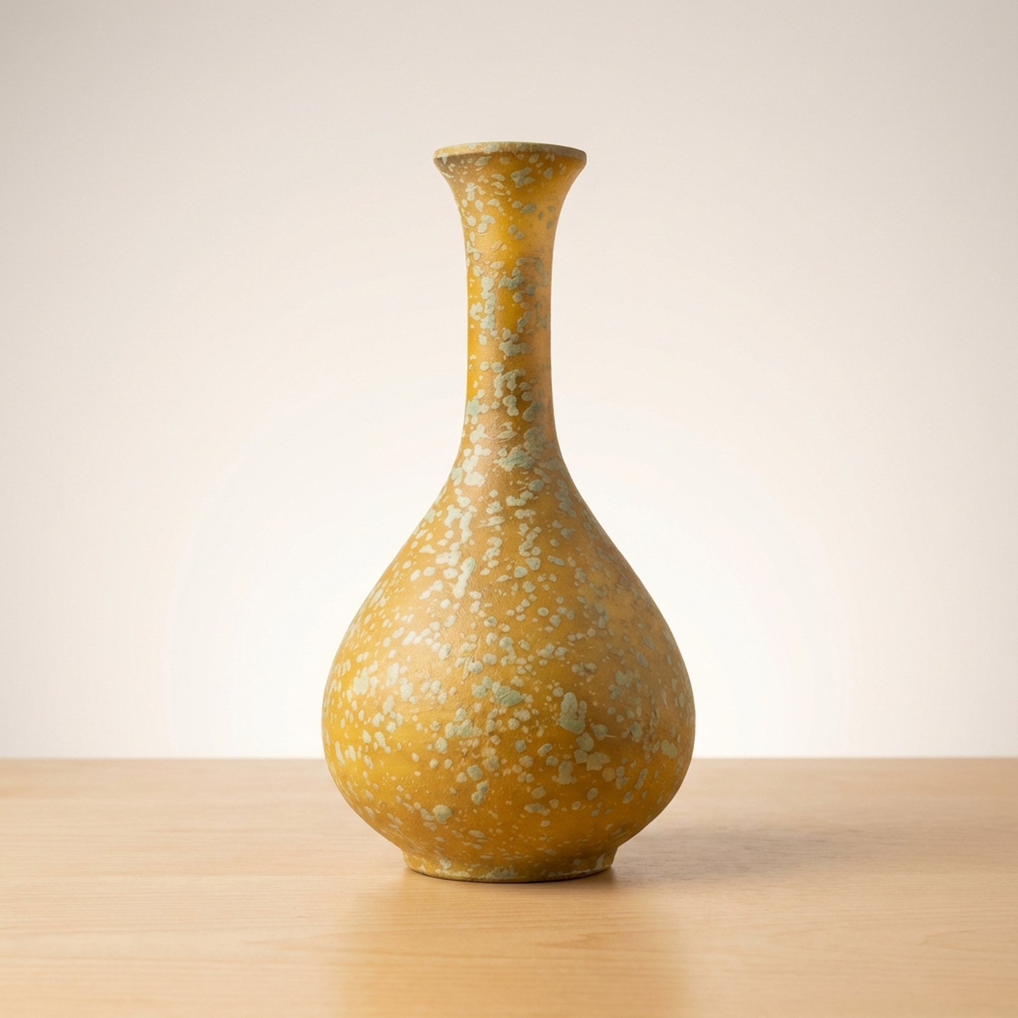 <p>Maker / Brand: Tozan Title of Work: Nabeshima-yaki Ceramic Vase with Yellow and Light Blue Speckled Pattern, with Dedicated Box, by Tozan, for Ikebana and more</p> <p>This exquisite Nabeshima-yaki ceramic vase, crafted by the artist Tozan, presents a striking blend of traditional Japanese artistry and vibrant design. Featuring a distinctive speckled pattern in warm yellow and refreshing light blue, its elegant form with a slender neck is perfectly suited for showcasing fresh flowers, especially in the art of ikebana. This piece comes complete with its dedicated storage box, affirming its authenticity and quality.</p> <p>Artistic & Cultural Background Nabeshima-yaki refers to the highly esteemed porcelain and ceramic ware produced in the Saga Prefecture, historically under the patronage of the Nabeshima clan during the Edo period. Originally created exclusively for the shogun, imperial court, and feudal lords, Nabeshima ware is renowned for its exceptional craftsmanship, refined aesthetics, and precise decorative techniques. While historically porcelain, the term is also used for high-quality ceramics from the region, embodying a legacy of careful artistry.</p> <p>Design & Technique The vase's surface is adorned with a charming speckled pattern, a dynamic interplay of sunny yellow and serene light blue hues. This "hanten moyou" (speckled pattern) technique creates a lively yet harmonious visual texture across the ceramic body. The colors are applied with a delicate touch, resulting in a unique, organic appearance that catches the eye without overwhelming the senses, celebrating the natural beauty of the ceramic material.</p> <p>Form & Aesthetic Qualities * <strong>Shape:</strong> An elegant silhouette featuring a gracefully elongated neck that tapers gently from a full, rounded body, providing a stable base and a refined opening for floral arrangements. * <strong>Texture:</strong> Crafted from fine ceramic, the vase offers a tactile experience that complements its visual appeal, inviting touch with its smooth yet subtly textured surface. * <strong>Visual Appeal:</strong> The vibrant yellow base punctuated by cool light blue speckles creates a striking contrast and a cheerful, inviting presence, evoking a sense of natural beauty and artistic spontaneity.</p> <p>Collector & Decorative Appeal * <strong>Authenticity & Provenance:</strong> A genuine Nabeshima-yaki piece by the artist Tozan, accompanied by its original dedicated box, ensures its authenticity and makes it a valuable addition to any collection. * <strong>Versatile Display:</strong> Ideal for traditional ikebana arrangements, its unique design also allows it to stand alone as a striking decorative object, enhancing any interior space with its artistic charm. * <strong>Artistic Statement:</strong> This vase serves as a beautiful representation of Japanese ceramic artistry, offering a touch of refined elegance and a splash of cheerful color to both contemporary and classic decor.</p> <p>This exquisite vase is a perfect acquisition for collectors and decorators who appreciate the subtle beauty and rich heritage of Japanese traditional crafts.</p> <h3>Details</h3> <table style="border-collapse:collapse;width:100%"><tr><td style="padding:4px 12px 4px 0;font-weight:bold;white-space:nowrap">Condition</td><td style="padding:4px 0">Excellent</td></tr><tr><td style="padding:4px 12px 4px 0;font-weight:bold;white-space:nowrap">Material</td><td style="padding:4px 0">Ceramic</td></tr><tr><td style="padding:4px 12px 4px 0;font-weight:bold;white-space:nowrap">Era</td><td style="padding:4px 0">Unknown</td></tr><tr><td style="padding:4px 12px 4px 0;font-weight:bold;white-space:nowrap">Dimensions</td><td style="padding:4px 0">高さ24cm / 横13cm / 大きさ 縦29.5cm</td></tr></table>