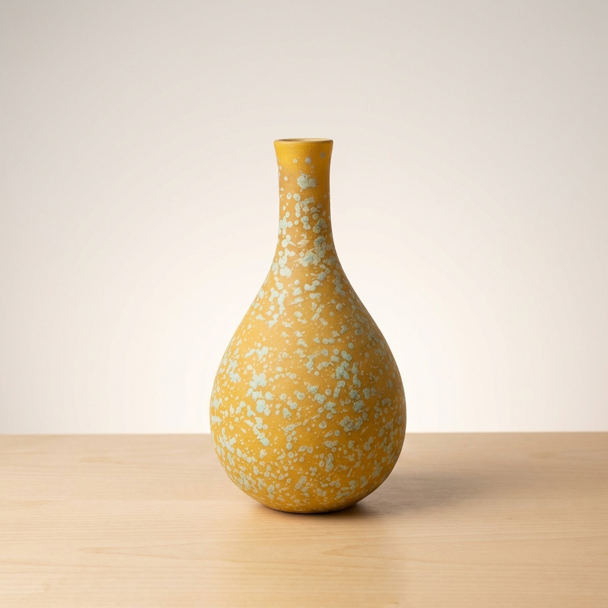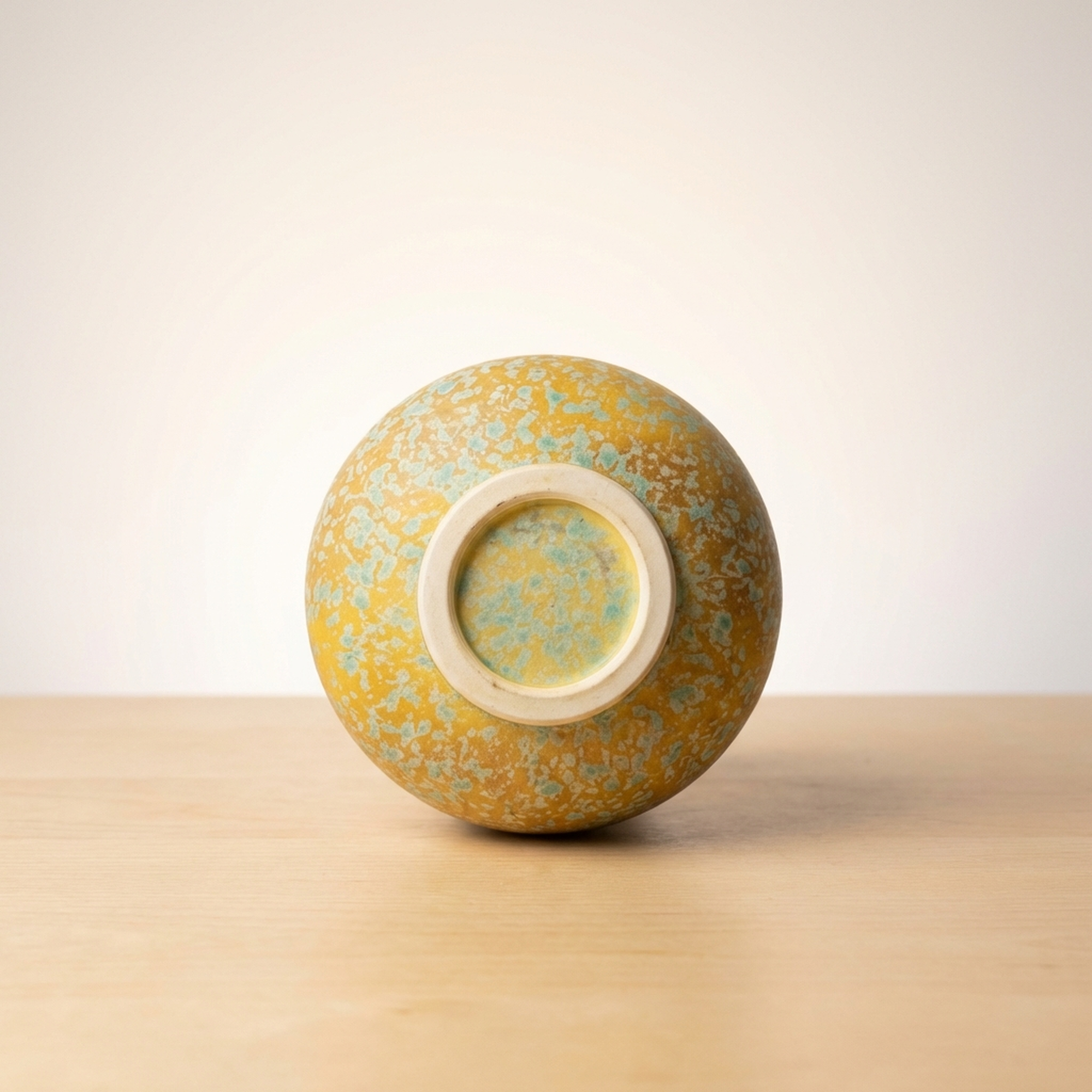 鍋島焼 陶器製花瓶 黄色と水色の斑点模様 専用箱付き 作: 陶山 生花などに♪