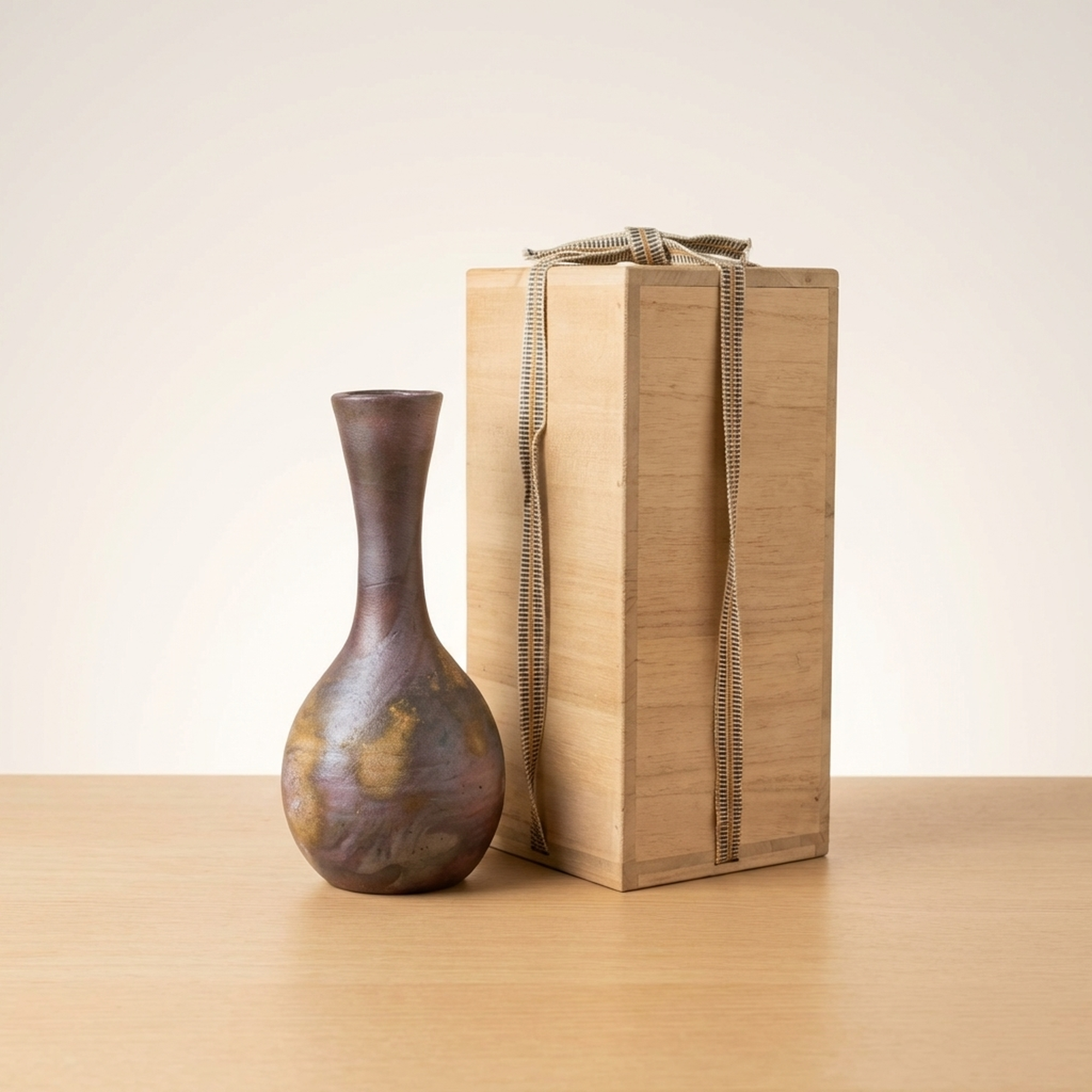 Artist-Made Bizen Ware Hidasuki Tokkuri Vase, Ryuichi Onizaki Style, Kiri Box