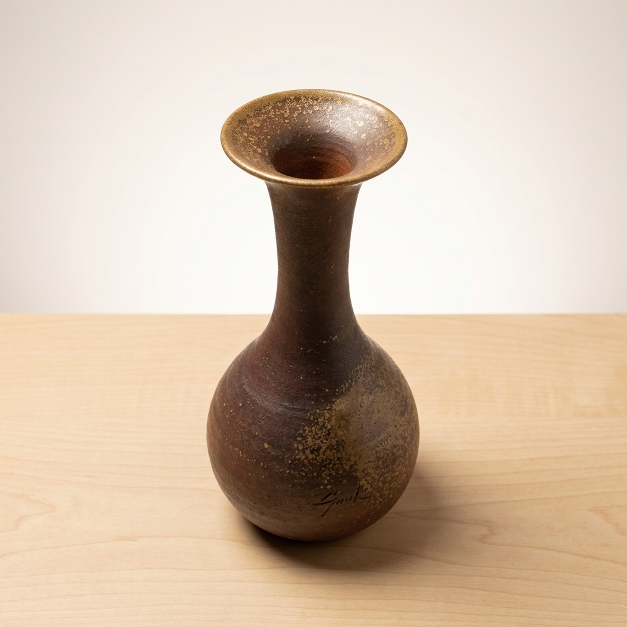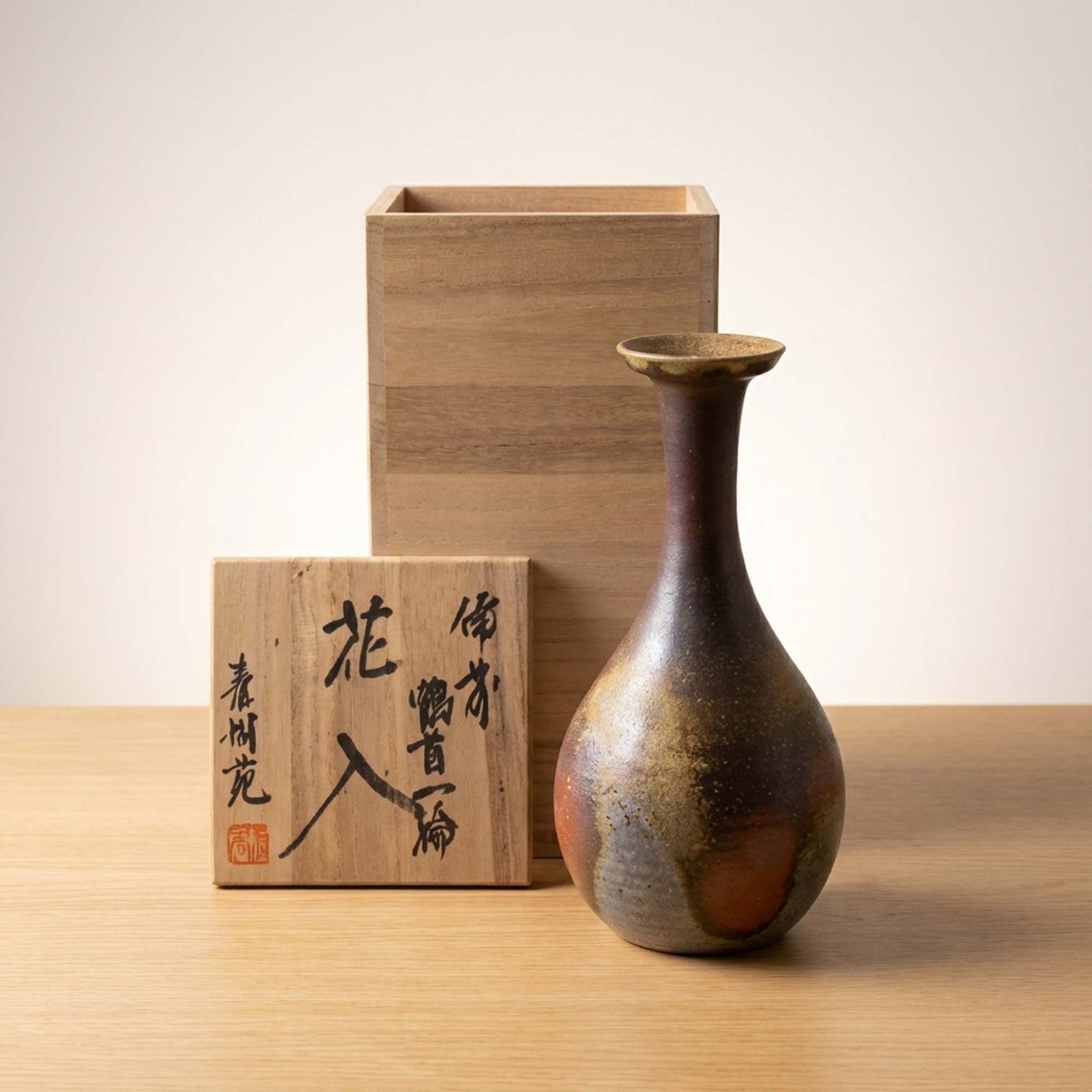 <p>Maker / Brand: Shunkoen Title of Work: Bizen Ware Crane Neck Single Flower Vase (with Tomobako by Shunkoen)</p> <p>This exquisite Bizen ware vase, known as a Tsurukubi Ichirin Kabin, embodies the profound aesthetic of wabi-sabi. Crafted by Shunkoen, this unglazed ceramic piece showcases the raw beauty of natural clay, fired through an ancient technique that has been perfected over centuries. It arrives complete with its original wooden storage box, a tomobako, affirming its authenticity and provenance.</p> <p>Artistic & Cultural Background Hailing from the Bizen region of Okayama Prefecture, Bizen ware is one of Japan's oldest and most revered pottery traditions, boasting a history spanning over a millennium. Distinguished by its unique yakishime firing method, which eschews glazes, Bizen ware allows the inherent character of the clay to shine through. This rustic charm, robust nature, and the distinct, varied expressions of each piece have captivated collectors and connoisseurs for generations.</p> <p>Design & Technique This particular vase was chosen for its exceptional embodiment of wabi-sabi beauty. The unglazed surface reveals the earthy tones and natural textures of the clay, with subtle variations in the firing colors creating a unique, organic pattern. The absence of artificial embellishment highlights the beauty of imperfection, simplicity, and naturalness – core tenets of traditional Japanese aesthetics.</p> <p>Form & Aesthetic Qualities * <strong>Elegant Silhouette:</strong> The graceful "crane neck" (tsurukubi) form tapers gently from a broad base to a slender neck, culminating in a subtly flared rim, designed to beautifully cradle a single bloom. * <strong>Earthy Texture:</strong> The unglazed surface offers a tactile experience, inviting touch with its warm, natural feel and subtle irregularities that speak to its handmade origin. * <strong>Subtle Color Play:</strong> The natural firing process has gived the vase with a rich palette of earthy browns, grays, and hints of reddish-orange, creating a striking interplay of natural hues.</p> <p>Collector & Decorative Appeal * <strong>Timeless Wabi-Sabi:</strong> A classic piece for those who appreciate the understated elegance and profound beauty of Japanese wabi-sabi, bringing a sense of calm and reflection to any space. * <strong>Authentic Craftsmanship:</strong> Represents a direct lineage to Japan's ancient pottery traditions, offering a tangible connection to a thousand years of ceramic artistry. * <strong>Meditative Presence:</strong> Placing this vase in a living room or study instantly introduces a serene depth, fostering moments of quiet contemplation and grounding in daily life.</p> <p>This Bizen ware vase is an ideal acquisition for the knowledgeable collector or decorator seeking to infuse their environment with authentic Japanese artistry and a tranquil, natural aesthetic.</p> <h3>Details</h3> <table style="border-collapse:collapse;width:100%"><tr><td style="padding:4px 12px 4px 0;font-weight:bold;white-space:nowrap">Condition</td><td style="padding:4px 0">Excellent</td></tr><tr><td style="padding:4px 12px 4px 0;font-weight:bold;white-space:nowrap">Origin</td><td style="padding:4px 0">Bizen, Okayama</td></tr><tr><td style="padding:4px 12px 4px 0;font-weight:bold;white-space:nowrap">Material</td><td style="padding:4px 0">Ceramic</td></tr><tr><td style="padding:4px 12px 4px 0;font-weight:bold;white-space:nowrap">Era</td><td style="padding:4px 0">Unknown</td></tr></table>