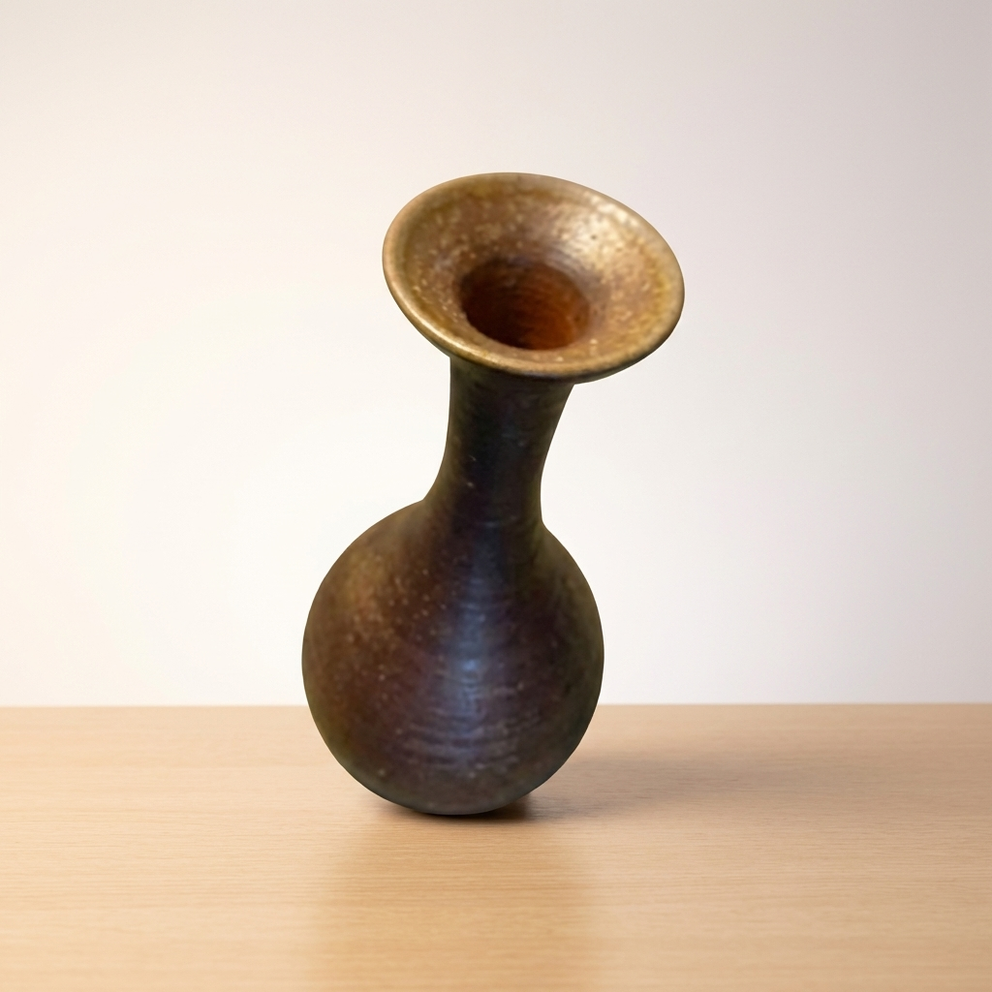 Shōwadō Cast Bronze Single-Stem Flower Vase with Original Wooden Box