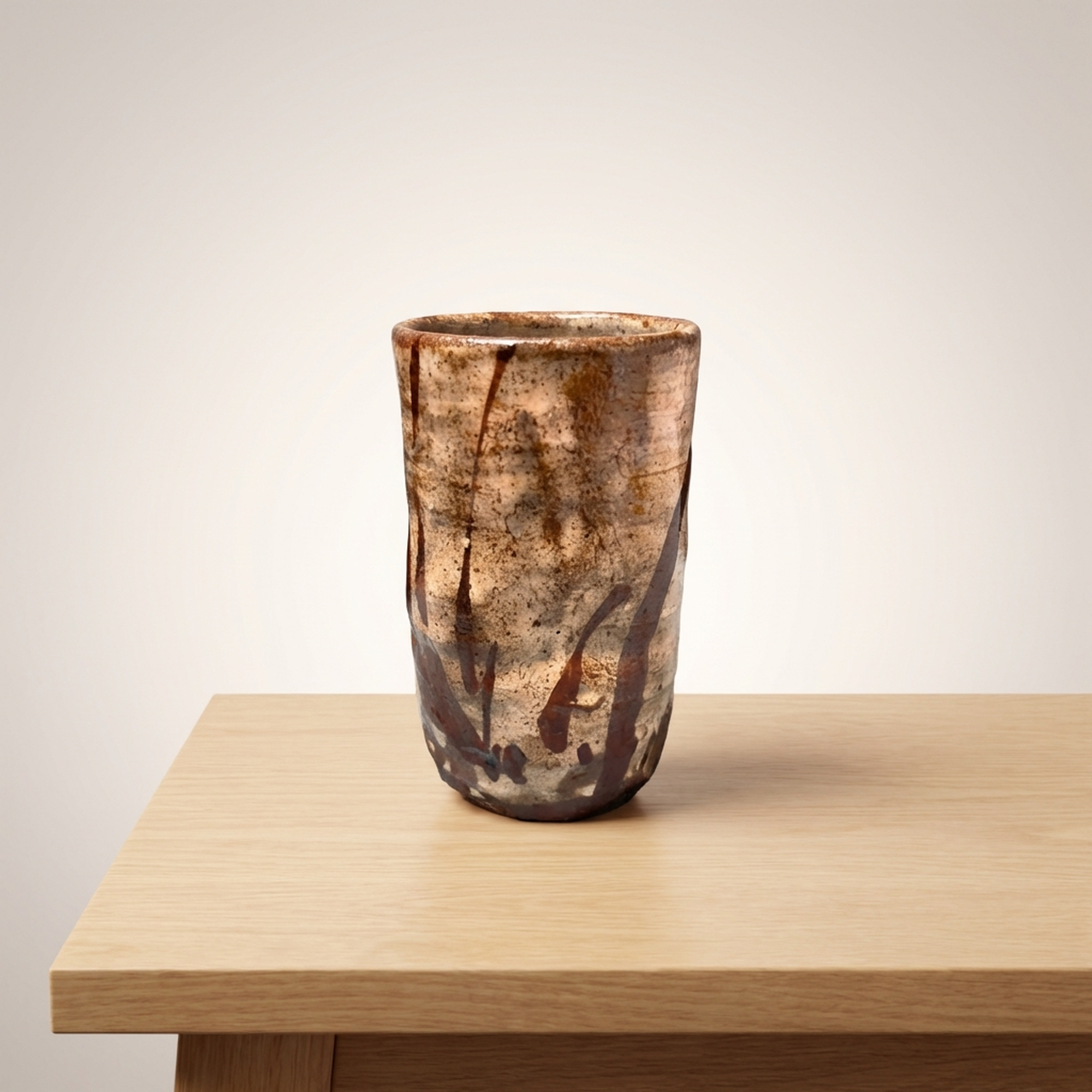 <p>STRUCTURE: Maker / Brand: Nishioka Kojyu Title of Work: Karatsu Ware Flower Vase from Kojiro Kiln, Kojyu Kiln</p> <p>This exquisite Karatsu ware flower vase, known as a hanaire, is a creation by the renowned potter Nishioka Kojyu. Standing approximately 20cm tall, this piece embodies the rustic charm and understated elegance characteristic of traditional Karatsu ceramics. It comes complete with its original wooden box and a descriptive brochure, highlighting its authenticity and provenance.</p> <p>Artistic & Cultural Background Karatsu ware (Karatsu-yaki) originates from the Karatsu region of Saga Prefecture, Kyushu, and boasts a history spanning over 400 years. Revered for its earthy textures and natural aesthetic, Karatsu ware is deeply connected to the Japanese tea ceremony (chanoyu), where its unpretentious beauty is highly prized. It embodies the wabi-sabi aesthetic, celebrating imperfection and the beauty of natural processes.</p> <p>Design & Technique This particular vase showcases the distinctive qualities of Karatsu ware, featuring a robust, hand-thrown form. The surface is adorned with a natural ash glaze, likely fired in a climbing kiln (noborigama), resulting in subtle variations in color and texture. Darker, iron-rich pigments are applied in broad, expressive strokes, creating an organic, almost calligraphic pattern that evokes natural elements like grasses or flowing water. The glaze often develops a fine crackle, adding depth and character.</p> <p>Form & Aesthetic Qualities * <strong>Rustic Form:</strong> A cylindrical body with a slightly irregular mouth, approximately 8cm in diameter, reflecting its handmade nature and adding to its unique character. * <strong>Earthy Texture:</strong> The unrefined clay body and natural ash glaze create a tactile surface with a warm, organic feel, inviting touch. * <strong>Natural Palette:</strong> A harmonious blend of earthy tones, from creamy off-white to rich browns and subtle grays, enhanced by the spontaneous flow of the glaze.</p> <p>Collector & Decorative Appeal * <strong>Master Potter's Work:</strong> A genuine piece by Nishioka Kojyu, a highly respected figure in the world of Karatsu ceramics, ensuring its artistic merit and collectible value. * <strong>Authentic Provenance:</strong> Accompanied by its original wooden box (tomobako) and brochure, which authenticates the piece and enhances its value for collectors. * <strong>Wabi-Sabi Elegance:</strong> Its understated beauty and natural imperfections, including a small original crack (as noted in photo 9), perfectly align with the wabi-sabi aesthetic, making it a serene addition to any interior.</p> <p>This Karatsu ware hanaire is an ideal acquisition for collectors and enthusiasts who appreciate the profound beauty and historical depth of traditional Japanese ceramics.</p> <h3>Details</h3> <table style="border-collapse:collapse;width:100%"><tr><td style="padding:4px 12px 4px 0;font-weight:bold;white-space:nowrap">Condition</td><td style="padding:4px 0">Fair</td></tr><tr><td style="padding:4px 12px 4px 0;font-weight:bold;white-space:nowrap">Origin</td><td style="padding:4px 0">Karatsu, Saga</td></tr><tr><td style="padding:4px 12px 4px 0;font-weight:bold;white-space:nowrap">Material</td><td style="padding:4px 0">Ceramic</td></tr><tr><td style="padding:4px 12px 4px 0;font-weight:bold;white-space:nowrap">Era</td><td style="padding:4px 0">Unknown</td></tr></table>