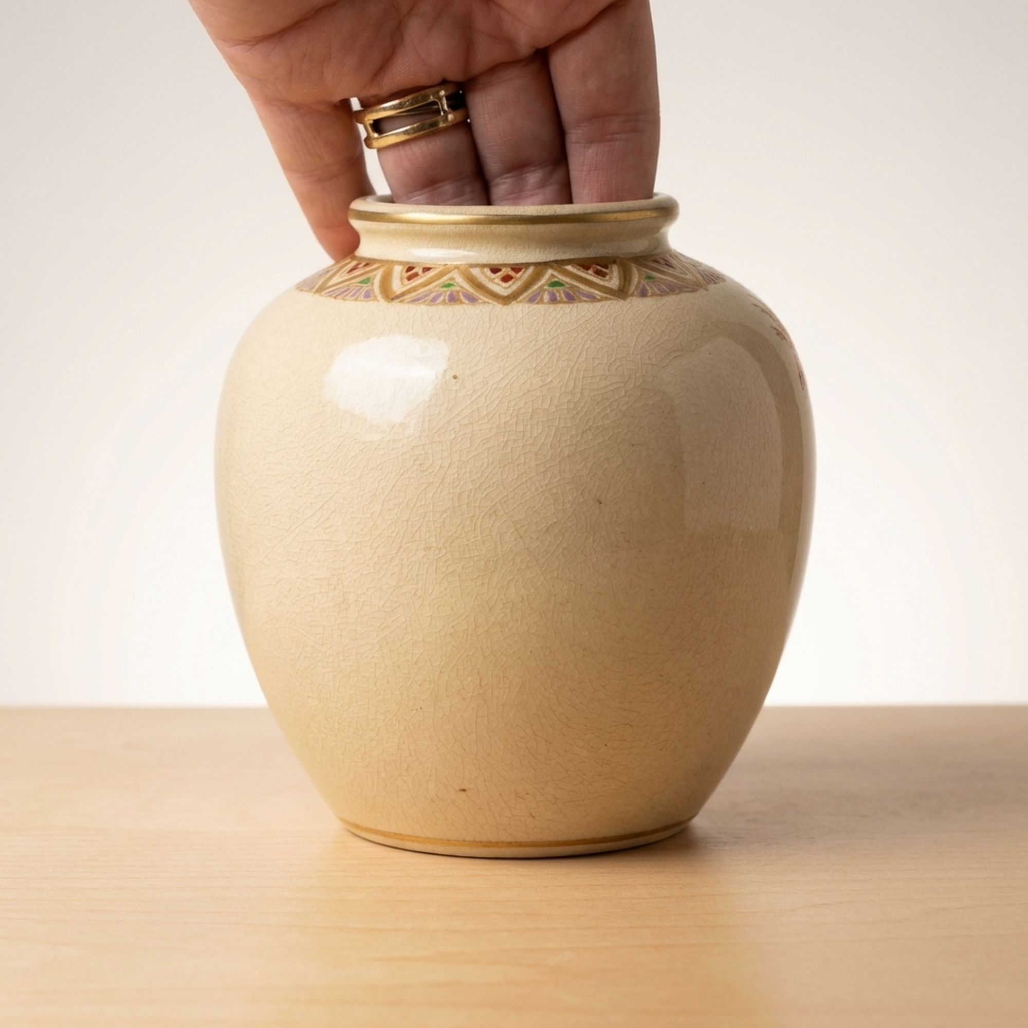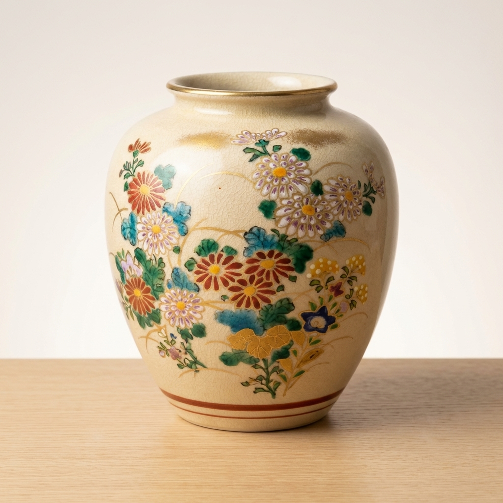 Keida Kiln Satsuma Ware Gold Enamel Floral Decorative Vase