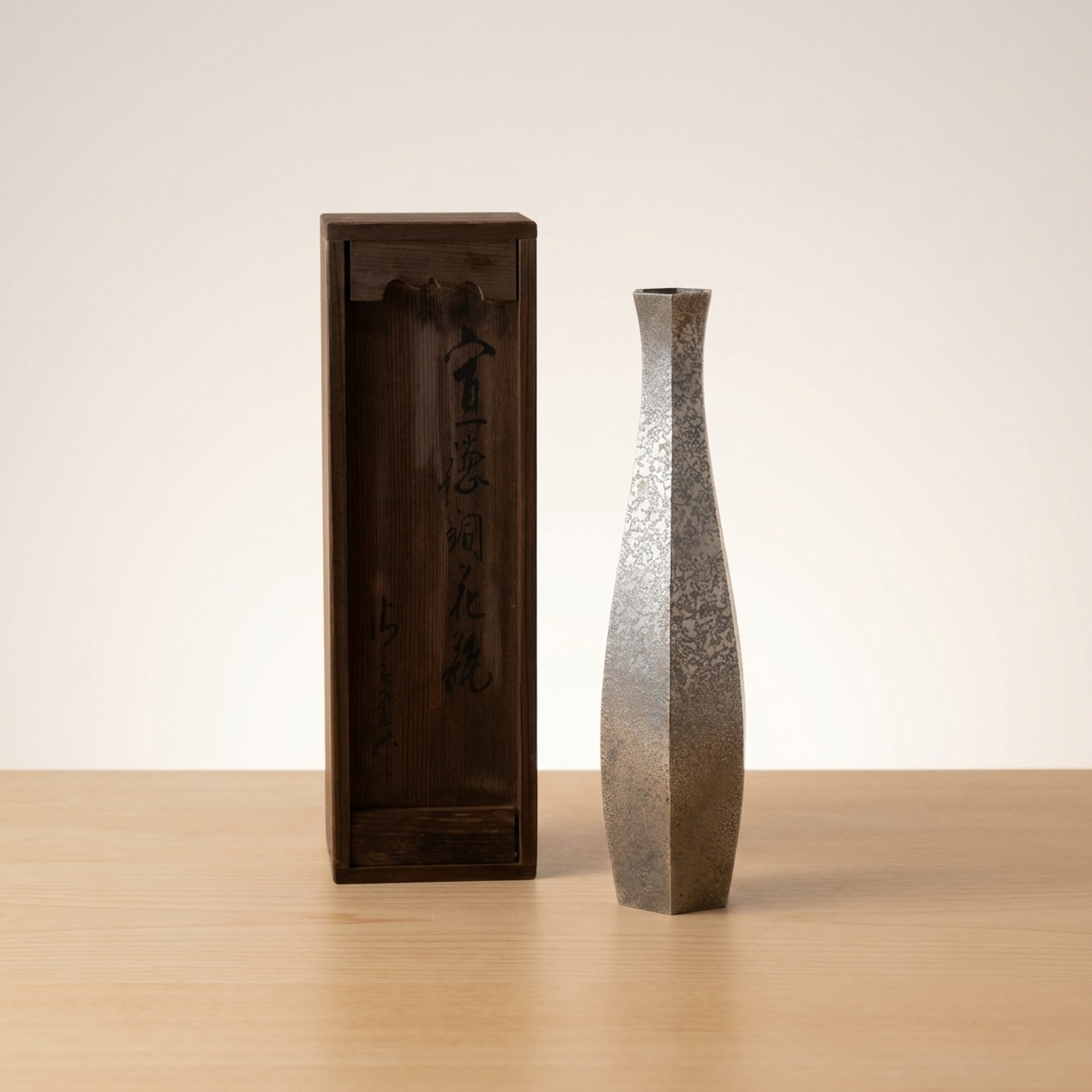 Shōwadō Cast Bronze Single-Stem Flower Vase with Original Wooden Box
