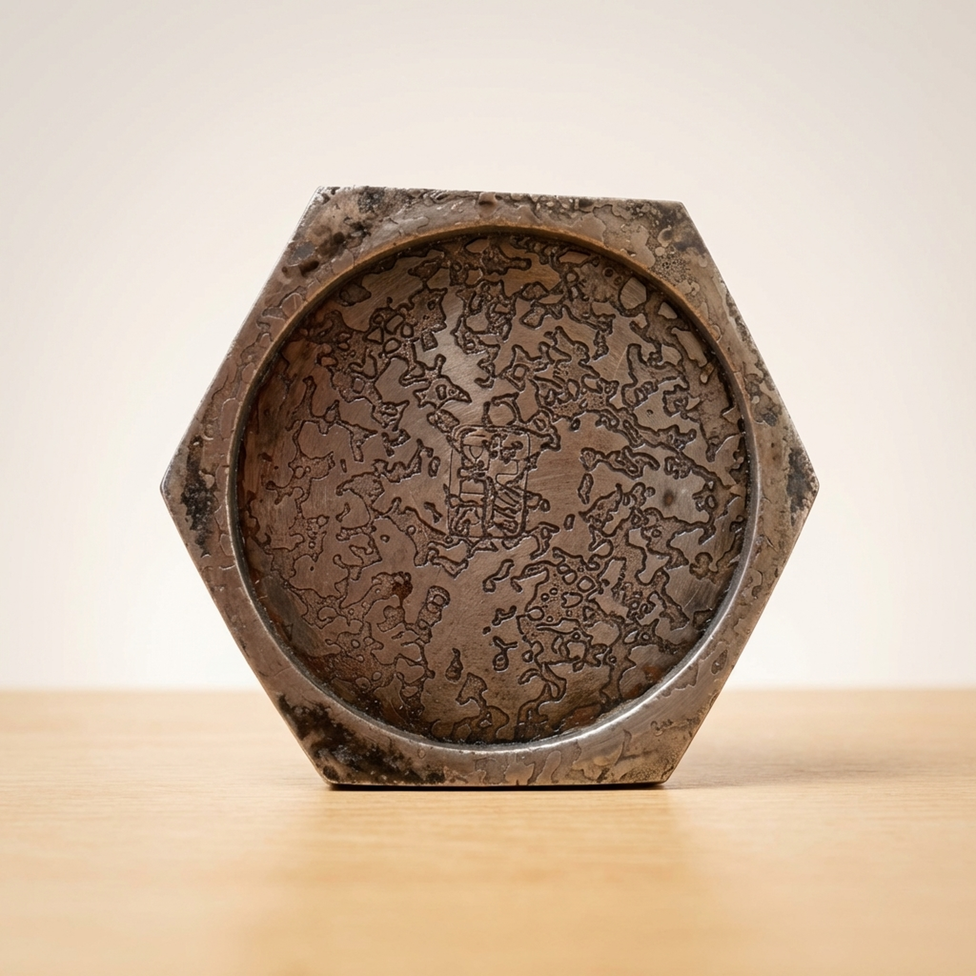 <p>Maker / Brand: Kimura Joun Title of Work: Sentoku Bronze Hexagonal Vase / Flower Vessel for Ikebana</p> <p>This exquisite hexagonal vase is a masterwork by Kimura Joun, a renowned chukin (metal casting) artist. Crafted from Sentoku-do, a prized bronze alloy, it embodies a serene aesthetic perfect for displaying flowers or as a standalone sculptural piece. Its elegant form and unique surface texture reflect centuries of Japanese metalworking tradition.</p> <p>Artistic & Cultural Background Sentoku-do, also known as Karagane, refers to a distinctive bronze alloy revered in Japan for its rich, subdued patinas and exceptional casting qualities. Historically, it has been favored for creating high-quality implements for the tea ceremony (chado) and flower arrangement (ikebana), prized for its ability to develop a profound "aji" (flavor or character) with age. Kimura Joun is celebrated as a master of these traditional metalworking techniques, particularly in the realm of tea and flower ceremony tools.</p> <p>Design & Technique The vase showcases the characteristic "Sentoku-iro," a calm and deeply subdued hue that defines this special bronze. Its surface is adorned with unique, organic patterns, a example to the detailed casting and coloring processes employed by the artist. These natural markings are not imperfections but rather integral to the piece's beauty, inviting closer appreciation. The artist's discreet signature is subtly engraved on the base.</p> <p>Form & Aesthetic Qualities * <strong>Elegant Form:</strong> A gracefully tapering hexagonal body culminates in a subtly flared mouth, creating a refined silhouette. * <strong>Rich Patina:</strong> The "Sentoku-iro" offers a deep, (calm, subdued texture), enhanced by the natural patina of age. * <strong>Textural Depth:</strong> The distinctive surface patterns, born from the casting and coloring, provide a striking visual and tactile experience.</p> <p>Collector & Decorative Appeal * <strong>Master Craftsmanship:</strong> An authentic piece by Kimura Joun, a respected master of traditional Japanese metalwork, ensuring exceptional quality and artistic merit. * <strong>Versatile Display:</strong> Ideal for ikebana arrangements, showcasing a single bloom, or as a sophisticated decorative object in any contemporary or traditional setting. * <strong>Timeless Beauty:</strong> The inherent character of Sentoku-do, with its evolving patina, offers enduring beauty and a connection to Japan's rich artistic heritage.</p> <p>This piece is an exceptional acquisition for collectors of Japanese metal arts and those who appreciate the subtle elegance of traditional craftsmanship.</p> <h3>Details</h3> <table style="border-collapse:collapse;width:100%"><tr><td style="padding:4px 12px 4px 0;font-weight:bold;white-space:nowrap">Condition</td><td style="padding:4px 0">Fair</td></tr><tr><td style="padding:4px 12px 4px 0;font-weight:bold;white-space:nowrap">Material</td><td style="padding:4px 0">Bronze</td></tr><tr><td style="padding:4px 12px 4px 0;font-weight:bold;white-space:nowrap">Era</td><td style="padding:4px 0">Unknown</td></tr><tr><td style="padding:4px 12px 4px 0;font-weight:bold;white-space:nowrap">Dimensions</td><td style="padding:4px 0">高さ27㎝ / 口径3㎝ / サイズ(約)</td></tr><tr><td style="padding:4px 12px 4px 0;font-weight:bold;white-space:nowrap">Weight</td><td style="padding:4px 0">重量585g</td></tr></table>