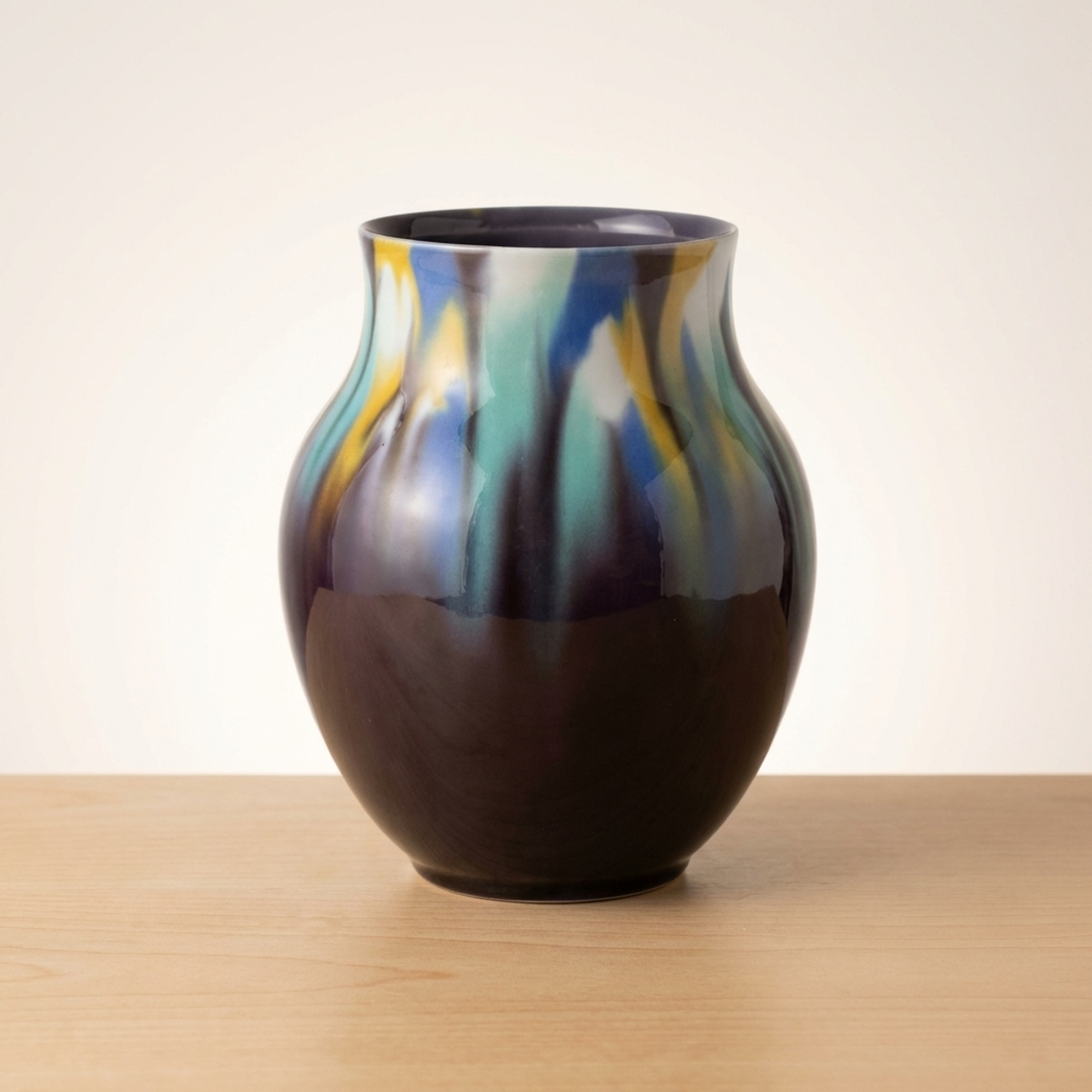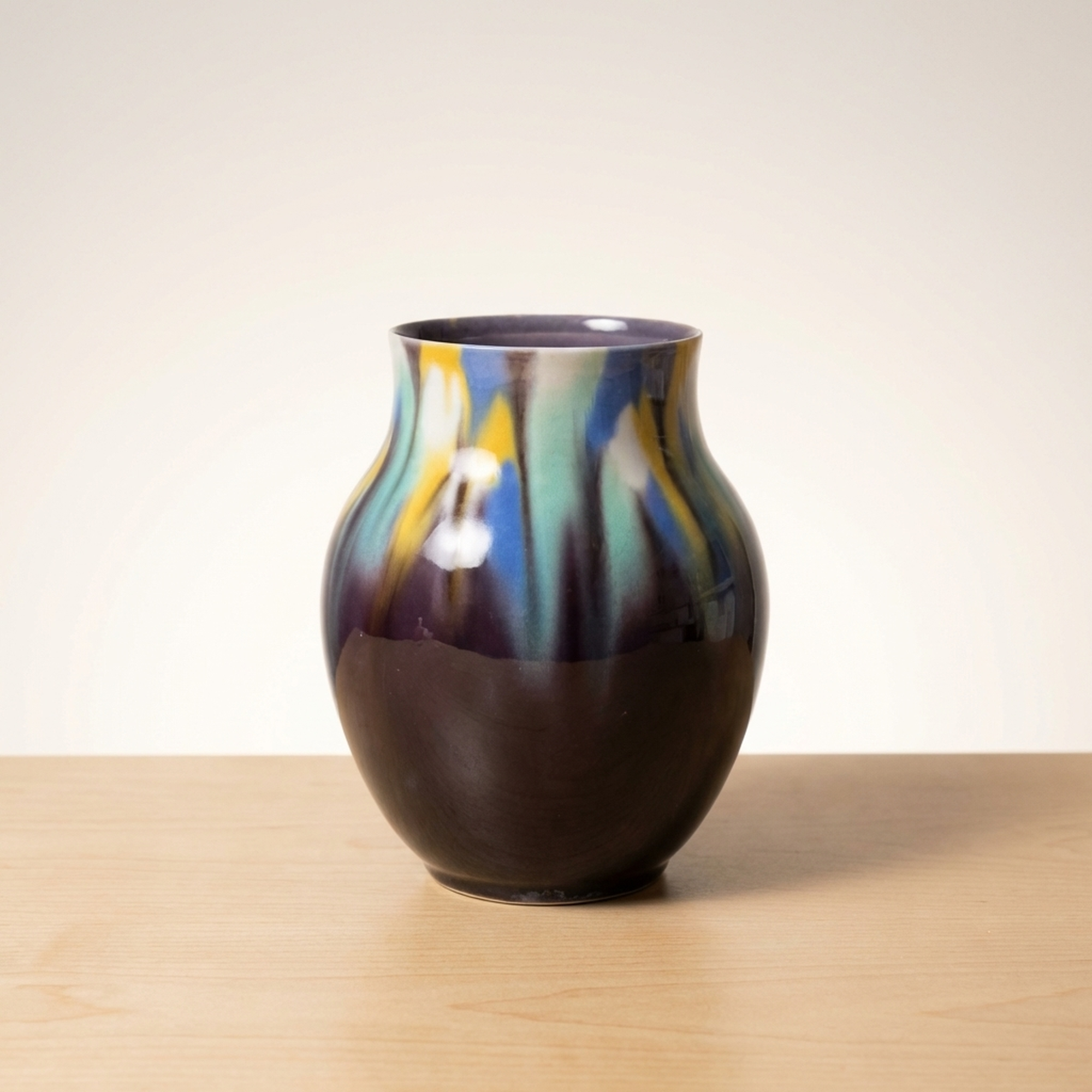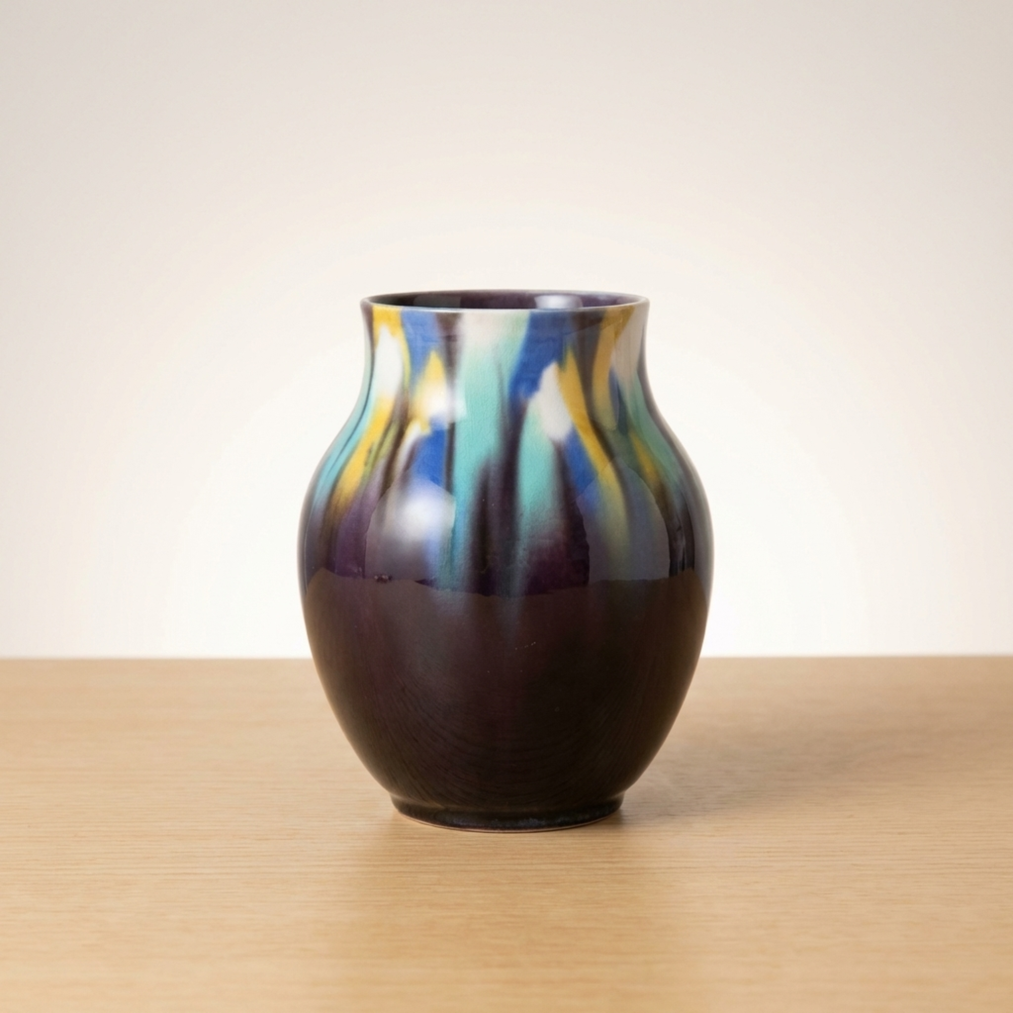 九谷焼 三代徳田八十吉 正彦銘 彩釉 壺 花瓶 16cm 共箱なし