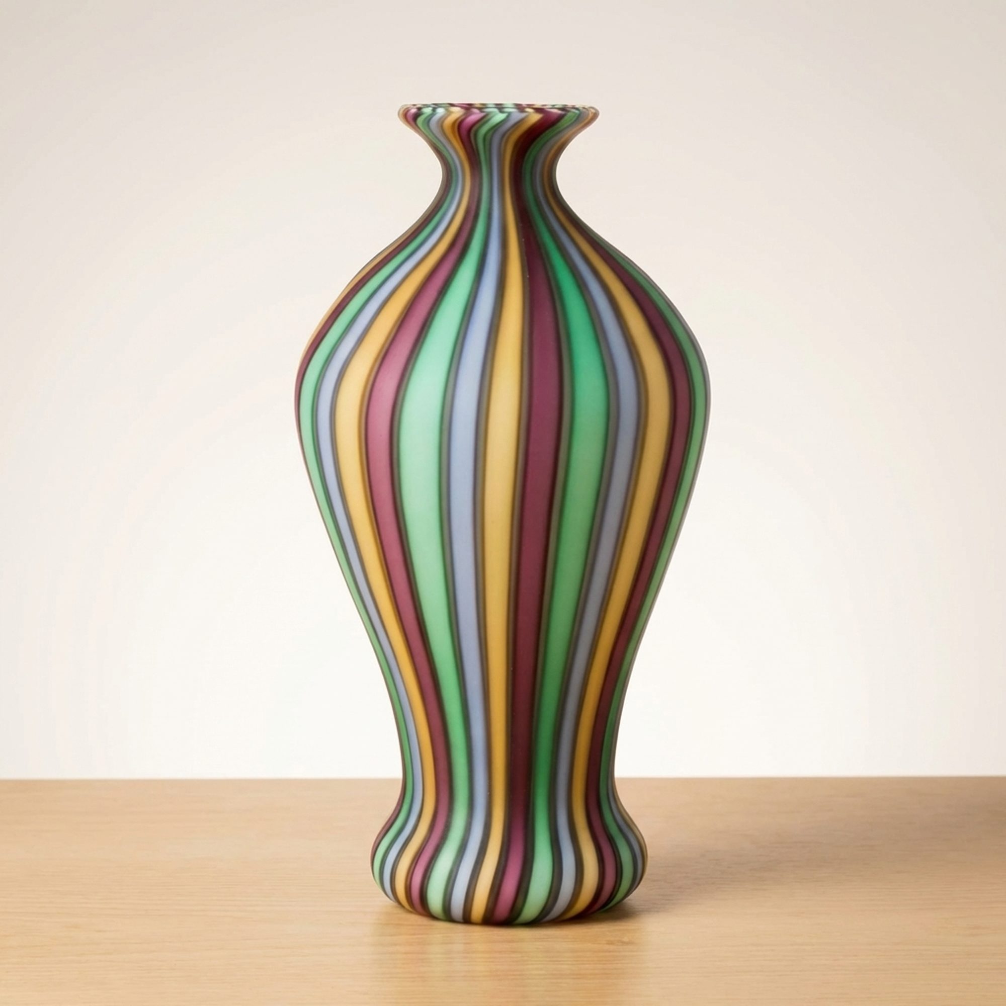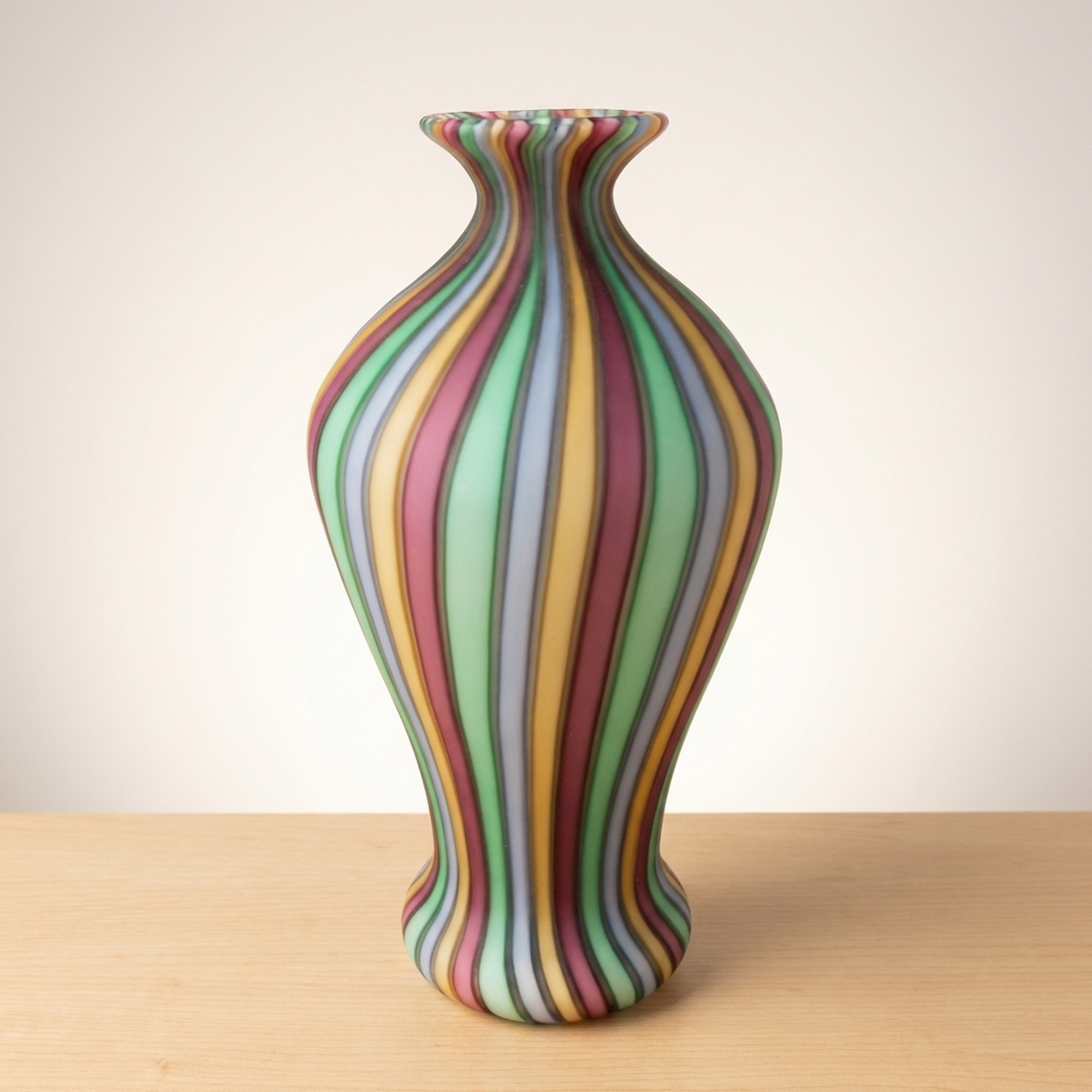 Kyohei Fujita Hand-Blown Venetian Glass Vase, Original Paulownia Box, 19cm Tall, Excellent