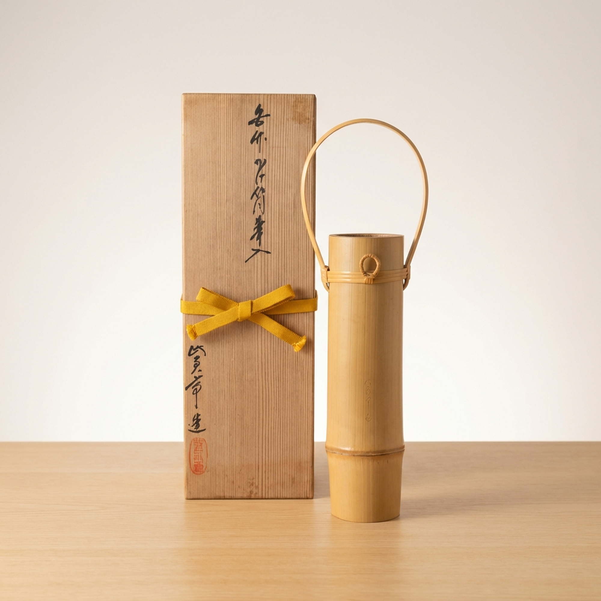 Old Bamboo Hanging Flower Vase by Untei for Tea Ceremony, Original Box
