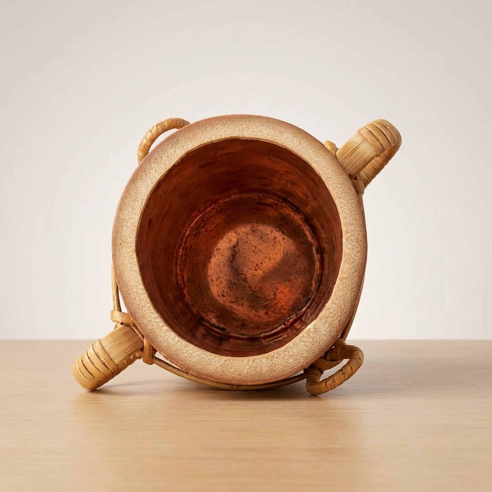 <p>Maker / Brand: Untei Seizo Title of Work: Old Bamboo Hanging Cylinder Flower Vase with Tomobako, Tea Ceremony Utensil</p> <p>This exquisite hanging flower vase, known as a kakehanaire, is a creation by Untei Seizo, crafted from aged bamboo. Designed for the refined practice of the Japanese tea ceremony, or chado, this piece embodies a serene aesthetic, perfect for displaying a single bloom or a minimalist floral arrangement. It comes complete with its original wooden storage box, or tomobako, which shows signs of age including scratches, dirt, and stains.</p> <p>Artistic & Cultural Background Bamboo has long been revered in Japan for its strength, flexibility, and symbolic purity, making it a favored material in traditional crafts, particularly those associated with the tea ceremony. A kakehanaire, or hanging flower vase, is a specific type of hanaire (flower vase) used in chabana, the art of flower arrangement for tea gatherings. These pieces are often chosen for their natural simplicity, reflecting the wabi-sabi aesthetic that values understated beauty and the passage of time.</p> <p>Design & Technique This kakehanaire showcases the natural beauty of aged bamboo, skillfully shaped into a cylindrical form. The inherent texture and subtle variations of the bamboo stalk are celebrated, requiring minimal intervention to highlight its organic charm. A simple bamboo handle is integrated for hanging, and a copper otoshi (insert) holds water for the flowers. Consistent with its age, the bamboo hanging handle shows some deterioration, and the copper otoshi exhibits minor scratches, dirt, and dullness, all contributing to its authentic vintage character.</p> <p>Form & Aesthetic Qualities <strong>Organic Simplicity:</strong> The vase's cylindrical form and natural bamboo material exude an understated elegance, celebrating the inherent beauty of the raw material. <strong>Aged Patina:</strong> The bamboo displays a rich, aged patina, with subtle marks and variations that tell a story of time and use, embodying the wabi-sabi aesthetic. <strong>Harmonious Presence:</strong> Designed to hold a single flower or a small, carefully chosen arrangement, it creates a focal point of quiet beauty and contemplation.</p> <p>Collector & Decorative Appeal <strong>Authentic Tea Ceremony Item:</strong> A genuine piece used in the traditional Japanese tea ceremony, offering a tangible connection to a rich cultural heritage. <strong>Versatile Display:</strong> Its elegant simplicity makes it suitable for display in a traditional tokonoma alcove, a modern minimalist interior, or as an accent in any space seeking a touch of Japanese tranquility. <strong>Timeless Japanese Craftsmanship:</strong> Represents the enduring artistry of bamboo craft, appealing to collectors who appreciate natural materials and traditional aesthetics.</p> <p>This Untei Seizo kakehanaire is an ideal acquisition for connoisseurs of Japanese tea ceremony utensils and those who appreciate the serene beauty of natural materials in art.</p> <h3>Details</h3> <table style="border-collapse:collapse;width:100%"><tr><td style="padding:4px 12px 4px 0;font-weight:bold;white-space:nowrap">Condition</td><td style="padding:4px 0">Good</td></tr><tr><td style="padding:4px 12px 4px 0;font-weight:bold;white-space:nowrap">Material</td><td style="padding:4px 0">Bronze</td></tr><tr><td style="padding:4px 12px 4px 0;font-weight:bold;white-space:nowrap">Era</td><td style="padding:4px 0">Unknown</td></tr><tr><td style="padding:4px 12px 4px 0;font-weight:bold;white-space:nowrap">Weight</td><td style="padding:4px 0">重さ305g</td></tr></table>